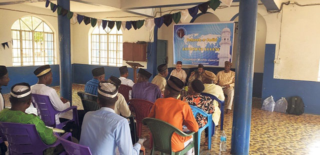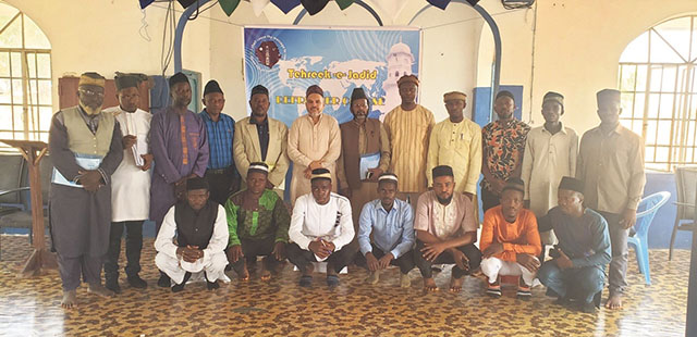 ریفریشر کورس ریجنل سیکرٹریانِ تحریک جدید مکرم طاہرا حمد بھٹی صاحب (ایڈیشنل سیکرٹری تحریک جدید سیرالیون و مبلغ سلسلہ میکنی ریجن) تحریر کرتے ہیں کہ محض اللہ تعالیٰ کے فضل سے نیشنل شعبہ تحریک جدید، سیرالیون کو مورخہ5 فروری 2022ء بروز ہفتہ احمدیہ بیت الذکر مشاکا، مشاکا ریجن میں سیکرٹریانِ تحریک جدید کے ریفریشر کورس کے انعقاد کی توفیق ملی۔ فالحمد للہ علی ذالک مولانا سعیدالرحمٰن صاحب امیر و مشنری انچارج سیرالیون کی زیرِ صدارت ریفریشر کورس کا آغاز صبح 10بجے تلاوت قرآن کریم اور دعا سے ہوا جس کے بعد محترم امیر صاحب نے افتتاحی کلمات سے پروگرام کا باقاعدہ آغاز کیا اور اپنے خطاب میں تحریک جدید کی اہمیت و افادیت پر روشنی ڈالتے ہوئے تحریک جدید کی برکات سے آگاہ کیا۔ امیر صاحب نے تمام سیکرٹریان کو ان کے تقرر کے خطوط تقسیم کیے۔ بعد ازاں ڈاکٹر شیخو کمارا صاحب نیشنل سیکرٹری تحریک جدید نے استقبالیہ خطاب میں شعبہ تحریک جدید کو فعال کرنے کے متعلق توجہ دلائی۔ اس کے بعد مکرم الحاجی اے بنگورا صاحب (سیکرٹری تحریک جدید و لوکل مشنری مکینی ریجن ) نے تحریک جدید کے تعارف پر تقریر پیش کی۔ پھر خاکسار نے شعبہ کا لائحہ عمل پیش کیا جس میں خصوصی طور پر معیاری وعدہ جات لینا اور فہرستیں مرتب کرنے کا طریقہ کار سمجھا ۔ اور مطالبات تحریک جدید پڑھ کر سنائے۔ نیز حضور انور ایدہ اللہ تعالیٰ کی سیرالیون جماعت سے توقعات سے متعلق ارشادات بھی سنائے۔ اس کے بعد سیکرٹری تحریک جدید پورٹ لوکو ریجن اور فری ٹاؤن ریجن نے اپنے کچھ تجربات اور تبصرے پیش کیے۔ پروگرام میں ہر تقریر کے بعد سوالات کا موقع دیا گیا۔ اور مقررین اور ہائی ٹیبل سے صدرِ مجلس اور مبلغین کرام نے سوالات کے جوابات دیے۔ پروگرام کے آخر پرتمام شرکاءسے حضور انور کی خدمت میں دعائیہ خطوط لکھوائے گئے۔ الحمد للہ پروگرام نہایت کامیاب رہا۔ دعا کے بعد نماز ظہر ادا کی گئی اور شرکاء کی خدمت میں ظہرانہ پیش کیا گیا۔ کل حاضری 25 رہی۔ ریفریشر کورس ریجنل سیکرٹریانِ وقفِ جدید مکرم حامد علی بنگورا صاحب مبلغ سلسلہ (ایڈیشنل سیکرٹری وقفِ جدید سیرالیون و استاد جامعہ احمدیہ ) تحریر کرتے ہیں کہ محض اللہ تعالیٰ کے فضل سے نیشنل شعبہ وقف جدید، سیرالیون کو مورخہ 5؍مارچ 2022ء بروز ہفتہ احمدیہ بیت الذکر مشاکا، مشاکا ریجن میں سیکرٹریانِ وقفِ جدید کے ریفریشر کورس کے انعقاد کی توفیق ملی۔ فالحمد للہ علی ذالک محترم ڈاکٹر شیخو تامو صاحب (قائم مقام امیر و نائب امیر اول، سیرالیون) کی زیرِ صدارت ریفریشر کورس کا آغاز صبح 10 بجے تلاوت قرآن کریم اور دعا سے ہوا جس کے بعد محترم صدرِ مجلس نے افتتاحی کلمات سے پروگرام کا باقاعدہ آغاز کیا اور آپ نے تمام سیکرٹریان کو ان کے تقرر کے خطوط تقسیم کیے۔ بعد ازاں مکرم طاہر احمد بھٹی صاحب( ایڈیشنل سیکرٹری تحریک جدید، سیرالیون و مبلغ سلسلہ مکینی ریجن) نے تمام شاملین کا شکریہ ادا کیا اور عہدیداران کی ذمہ داریوں اور فرائض کے موضوع پر اظہارِ خیال کیا۔ اس کے بعد مکرم ذیشان محمود صاحب (مربی سلسلہ) نے وقفِ جدید کا تعارف اور پسِ منظر پر تقریر پیش کی۔ جس کے بعد خاکسار نے شعبہ کا لائحہ عمل پیش کیا۔ جس میں خصوصی طور پر معیاری وعدہ جات لینا اور فہرستیں مرتب کرنے کا طریقہ کار سمجھا گیا۔ پروگرام کی آخر پر محترم عقیل احمد صاحب (قائم مقام مشنری انچارج سیرالیون و مبلغ سلسلہ بو ریجن) نے تحریک وقفِ جدید کی اہمیت اور برکات کے موضوع پر خطاب کیا۔ اس کے بعد سیکرٹری وقفِ جدید فری ٹاون ریجن نے اپنے کچھ تجربات اور تبصرے پیش کیے۔ پروگرام میں تقاریر کے دوران سوالات کا موقع دیا گیا اور مقررین اور ہائی ٹیبل سے صدرِ مجلس اور مبلغین کرام نے سوالات کے جوابات دیے۔ پروگرام کے آخرپرتمام شرکاءسے حضور انور کی خدمت میں دعائیہ خطوط لکھوائے گئے۔ الحمدللہ پروگرام نہایت کامیاب رہا۔دعا کے بعد نماز ظہر ادا کی گئی اور شرکاء کی خدمت میں ظہرانہ پیش کیا گیا۔ کل حاضری 25 رہی۔ (رپورٹ: ذیشان محمود۔ مربی سلسلہ سیرالیون) ٭…٭…٭