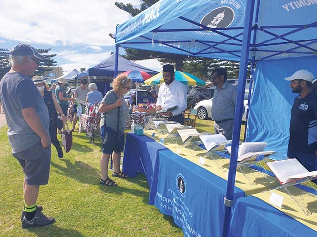 Listen to 20220422-Australia quran nmaesh ..book stall.. byAl Fazl International on hearthis.at محض اللہ تعالیٰ کے فضل سے مورخہ 13؍مارچ 2022ء کو جماعت احمدیہ ایڈیلیڈ ویسٹ کے چھ احباب پر مشتمل ایک گروپ کو موآنہ (Moana)مارکیٹ میں قرآن کریم کی نمائش اور بکسٹال لگانے کی توفیق ملی۔ الحمدللہ۔ موآنہ، ایڈیلیڈ شہر سے تقریباً36 کلومیٹر جنو ب میں واقع ہے اور ساؤتھ آسٹریلیا سٹیٹ کا ایک مشہور سیاحتی مقام ہے۔ موآنہ مارکیٹ کا انعقاد مہینے میں ایک بار موآنہ beachکے قریب واقع پایونئیر میموریل ہال اور اس سے ملحقہ گراؤنڈ ز میں کیا جاتا ہے۔ چنانچہ ہمارا گروپ نماز فجر کی ادائیگی کے بعد مسجد محمود سے موآنہ کے لیے روانہ ہوا اور تقریباً پچاس منٹ کی مسافت کے بعد وہاں پہنچا۔ وہاں پہنچ کرہم نے مارکیٹ کے مین ایریا میں قرآن کریم کی نمائش اور بک سٹال لگایا۔ جماعتی پیغام Love for all Hatred for None، Muslims for Peace، اور Muslims for Loyalty کے بینرز سے مزین مارکی نے خاص طور پر لوگوں کی توجہ کو اپنی جانب مرکوز کیا۔ یہ بات بھی قابل ذکر ہے کہ کسی بھی مسلم کمیونٹی کی جانب سے اس مارکیٹ میں پہلی بار سٹال لگایا گیا اور الحمدللہ یہ سعادت جماعت احمدیہ کے حصہ میں آئی۔ تبلیغی مساعی کا آغاز دعا کے ساتھ ہوا۔ سب سے پہلے دیگر سٹال لگانے والے احباب کوجماعت احمدیہ کا تعارف کروایا گیا۔ اس کے بعد صبح نو بجے مارکیٹ کو عوام کے لیے کھولا گیا۔ چنانچہ مقامی آبادی کی جانب سے بہت اچھا response ملا اور سینکڑوں کی تعداد میں لوگ قرآن کریم کی نمائش اور بکسٹال کو دیکھنےکے لیے تشریف لائے۔ ہم نے ان کو اسلام کی پرامن تعلیم سے آگاہ کیا۔ علاوہ ازیں کافی لوگوں کےساتھ مندرجہ ذیل موضوعات پر تفصیلی بحث بات چیت ہوئی: ٭…آنحضور ﷺ کی حیات مبارکہ ٭…اسلام میں عورتوں کے حقوق ٭…روس اوریوکرائن کے مابین جنگ ٭…اسلامی شریعت ٭…آسٹریلیا میں ملٹی کلچرازم الحمدللہ اس سٹال کے دوران ہمیں متعدد نئے تبلیغی روابط بنانے کی توفیق ملی۔ کل دس جماعتی کتب اور کثیر تعداد میں جماعتی لٹریچر بھی پڑھنے کے لیے تقسیم کیا گیا۔ نمائش کو دیکھنے کے لیے آنے والے لوگوں کے چند تاثرات درج ذیل ہیں: مسٹرRichard Shawنے ہمارے سٹال کو وزٹ کیا اور بتایا کہ انہوں نے آنحضورﷺ کی سیرت وسوانح پر ایک کتا ب پڑھی ہوئی ہے۔ انہوں نے آنحضورﷺ کے بارے میں اپنے تاثرات کا اظہار کرتے ہوئے کہا کہ آپﷺ کرۂ ارض پر سب سے عظیم شخص تھے۔ آپﷺ میری فہرست میں سرِفہرست ہیں۔ موصوف کو ہم نے آنحضورﷺ کی حیات مبارکہ کے متعلق مزید پڑھنے کے لیے کتاب Life of Muhammad saw دی۔ ایک مقامی عورت نے کہا کہ یہ سٹال بہت اچھا ہے۔ یہ بہت معلوماتی ہے۔ یہاں کھڑے ہو کر اچھا محسوس ہورہا ہے۔ یہاں صرف کھڑے ہونے سے ہی مثبت vibesآرہی ہیں۔ دعا ہے کہ اللہ تعالیٰ ہماری تبلیغی مساعی میں برکت ڈالے اور ہمیں احسن رنگ میں اسلام احمدیت کا پیغام پہنچانے کی توفیق عطافرمائے۔ آمین (رپورٹ: عاطف احمد زاہد۔ مربی سلسلہ ایڈیلیڈ،آسٹریلیا)