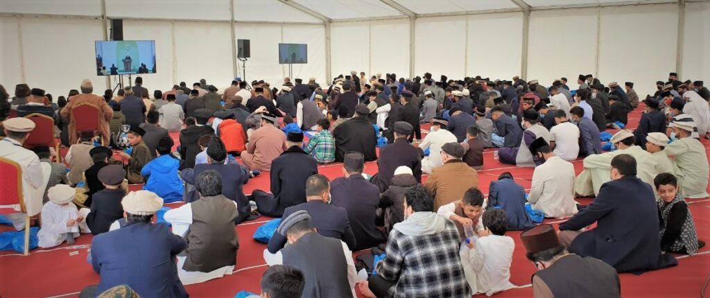 امیر المومنین ایدہ اللہ تعالیٰ بنصرہ العزیز کا بصیرت افروز خطبہ عیدالفطر اور دعا دنیا کے پریشان کن حالات میں احمدیوں کو اپنی ذمہ داریاں ادا کرتے ہوئے دنیا کو اپنے خدا کی طرف توجہ دلانے اور حقوق العباد ادا کرنے کی طرف توجہ دلانے کی تلقین احبابِ جماعت کے تاثرات Listen to 20220506-huzor e anwar ki aqtida mn nmaz e eid byAl Fazl International on hearthis.at (اسلام آباد، نمائندگان الفضل انٹرنیشنل، 02؍مئی 2022ء) امیرالمومنین حضرت مرزا مسرور احمد خلیفۃ المسیح الخامس ایّدہ اللہ تعالیٰ بنصرہ العزیز نے مسجد مبارک اسلام آباد، ٹلفورڈ سے خطبہ عید الفطر ارشاد فرمایا جو ایم ٹی اے کے مواصلاتي رابطوں نيز يوٹيوب اور ديگر ميڈيا پليٹ فارمز کے ذريعہ ساري دنيا ميں سنا اور ديکھا گيا۔ حضورِ انور مسجد مبارک میں خطبہ عید ارشاد فرما رہے ہیں اللہ تعالیٰ کے فضل و کرم سے آج تقریباً دو سال بعد حضور انور ایدہ اللہ تعالیٰ بنصرہ العزیز کی اقتدا میں احباب جماعت کی کثیر تعداد کو نماز ادا کرنے کا موقع ملا۔ یہ خوش نصیب احباب و خواتین اسلام آباد ریجن کی چار جماعتوں (اسلام آباد، آلڈرشاٹ، فارنہم اور گِلفورڈ) سے حاضر ہوئے تھے۔ حضورِ انور نے 11 بجے کے قریب مسجد مبارک میں تشریف لاکر نماز عید پڑھائی جس کے بعد 11 بج کر 13 منٹ پر خطبہ عید الفطر کے لیے منبر پر رونق افروز ہوئے اور احبابِ جماعت احمدیہ عالمگیر کو ایم ٹی اے کے توسط سے ’السلام علیکم ورحمۃ اللہ‘ کا تحفہ عطا فرمایا۔(خلاصہ خطبہ عیدالفطر کے لیےملاحظہ فرمائیے صفحہ 16) اسلام آباد میں عید الفطر کے انتظامات آج ممبرانِ جماعت کے لیے عید کا مزا اس لیے بھی دوبالا ہو رہا تھا کہ اسلام آباد میں یہ عید کا پہلا بڑا اجتماع تھا اس لیے ہزاروں کی تعداد میں مہمانوں کی آمد اور ان کی سہولت کے لیے بڑی محنت اور محبت سے انتظامات کیےگئے تھے۔ مکرم عطاء القدوس صاحب، ریجنل امیر اسلام آباد نے نمائندہ الفضل انٹرنیشنل کو بتایا کہ اللہ تعالیٰ کے فضل و رحم سے تقریباً دو سال کے بعد احبابِ جماعت کو کثیر تعداد میں سیدنا و امامنا حضرت خلیفة المسیح الخامس ایده اللہ تعالیٰ بنصرہ العزیز کے پیچھے نمازِ عید ادا کرنے کی سعادت ملی۔ الحمد للہ کورونا کی وبا کے بعد گزشتہ کچھ ایام سے اسلام آباد ریجن کے احبابِ جماعت کو محدود تعداد میں ایک روٹا سسٹم کے تحت مسجد مبارک اسلام آباد میں نماز پڑھنے کی توفیق ملنا شروع ہوئی ہے۔ اب چونکہ کورونا کے کیسز میں نمایاں کمی واقع ہوئی ہے، لہٰذا حضور انورکی ہدایت کے نتیجے میں امسال نماز عید کے لیے وسیع پیمانے پر اسلام آباد میں انتظامات کیے گئے اور اسلام آباد ریجن کی چار جماعتوں کے دو ہزار افراد (بشمول لجنہ و بچے) نے حضور انورکے پیچھے نمازِ عید ادا کرنے کی سعادت حاصل کی۔ اتنی بڑی تعداد کے لیے اسلام آباد میں دو مارکیاں نصب کی گئیں، ایک مسرور ہال کے عقب میں اور ایک اسلام آباد میں موجود کھلے میدان میں۔ عید کے موقع پراسلام آباد کو رنگ برنگی جھنڈیوں سے بہت خوبصورتی سے سجایا گیا اور داخلے کے مین گیٹ سے مُلحقہ سکیننگ پر خوش آمدید کا بہت ہی خوبصورت بینر بھی لگایا گیا۔ عید کی نماز کی ادائیگی کے بعد تمام احبابِ جماعت کے لیے packed lunch کا بھی انتظام کیا گیا۔ مکرم عثمان احمد صاحب ، نائب صدر مجلس خدام الاحمدیہ یوکے نے بتایا کہ امسال اسلام آباد میں عید کے لیے مسجد مبارک اور ایوان مسرور کے علاوہ دو مارکیاں لگائی گئی ہیں۔ ایک مارکی اسلام آباد کے بڑے گراؤنڈ میں لگائی گئی جس میں 1500 کے قریب احباب کے عید پڑھنے کا انتظام کیا گیا تھا۔ دوسری مارکی مسرور ہال کے عقب میں لگائی گئی جس میں صرف ممبرات لجنہ اماء اللہ نے عید کی نماز ادا کی۔ کار پارکنگ کا انتظام اسلام آباد سے ملحقہ گراؤنڈ اور اسلام آباد کی ہمسائیگی میں واقع سکول میں کیا گیا۔ اس حوالہ سے تمام شاملین کو جماعتی انتظام کے تحت پیشگی کار پاس بھی مہیا کیے گئے تھے۔ تمام احباب جو عید پڑھنے کے لیے تشریف لائے ان کے لیے کورونا ٹیسٹ کرنا اور ماسک پہن کر رکھنا لازمی تھا۔ نائب صدر صاحب نے بتایا کہ اسلام آباد میں تشریف لا