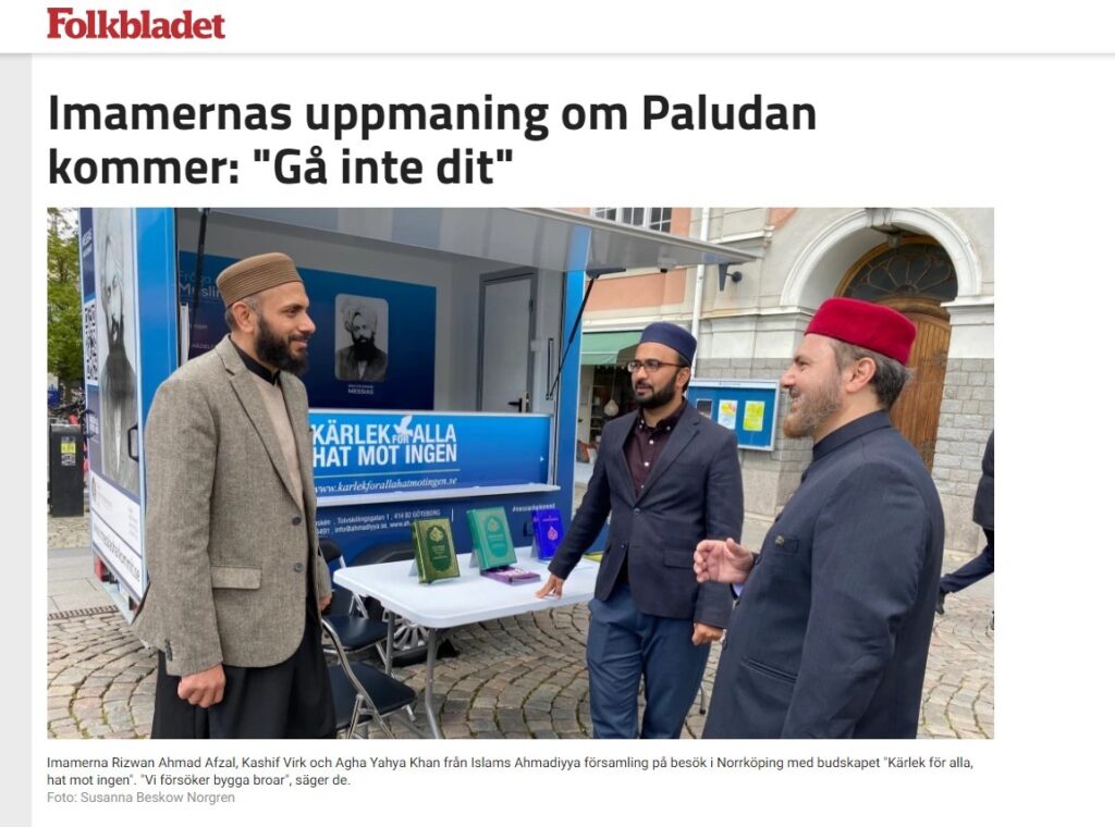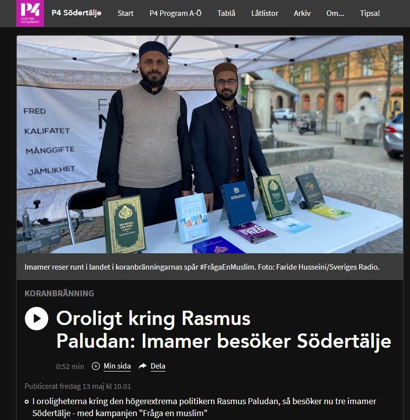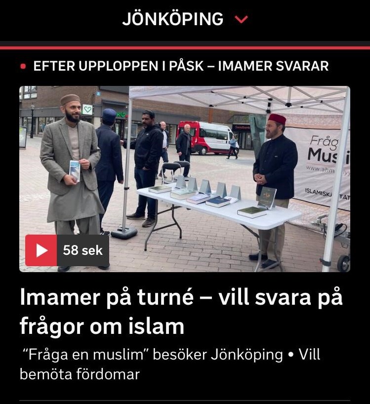 ایسٹر ویک اینڈ کے دوران انتہائی دائیں بازو کے سیاسی کارکنوں نے سویڈن کے کئی شہروں میں قرآن کریم کے نسخہ جات کو جلانے کا منصوبہ بنایا۔ جس کی وجہ سے سویڈن کے کئی شہروں میں پرتشدد فسادات کی وجہ سے بد نظمی پھیل گئی۔ اس قسم کے پرتشدد مظاہروں کی کوئی مثال سویڈن میں اس سے قبل نہیں ملتی۔ ان واقعات کی وجہ سے سویڈن میں آزادئ اظہار کے حوالے سے شدید بحث چھڑ گئی ہے۔ جماعت سویڈن نے بھی اس صورتحال میں اپنی بےچینی اور تشویش کا اظہار کیا جو کہ ہمیشہ کی طرح پرامن اورمنظم تھا۔ جماعت احمدیہ نے فوری طور پر سوشل میڈیا اور پرنٹ میڈیا کے ذریعہ لوگوں کو اس بات کی آگاہی دینے کا آغاز کیا کہ بے مہار آزادیٔ اظہار معاشرے میں امن کو فروغ دینے کی بجائے نفرت پھیلانے کا باعث بن رہا ہے۔ شعائر اللہ کی عزت تمام لوگوں کو کرنی چاہیے۔ اس کے ساتھ ہی ٹوئٹر پر KoranLär#مہم کا آغازکیا گیا۔ جس کے ذریعہ سویڈش عوام کو قرآن پاک کی خوبصورت تعلیمات سے آگاہ کرنے کی کوشش کی گئی۔ اسی طرح اخبار میں مضمون کے ذریعہ اس بات کی طرف توجہ دلائی گئی کہ آزادیٔ اظہار کو ذمہ داری کے ساتھ استعمال کیا جانا چاہیے۔ اس کے ساتھ ساتھ اسلام کی خوبصورت تعلیمات جن میں آزادیٔ اظہار کی اجازت، صبر و تحمل اور قوانین کی پابندی کے بارے میں بتایا گیا تھا پیش کی گئیں۔ اسی سیاسی گروپ نے اگست 2020ء میں بھی قرآن کریم جلانے کی جسارت کی تھی اور اس وقت حضور انور ایدہ اللہ تعالیٰ نے ازراہ شفقت جماعت سویڈن کو اس قسم کے حالات میں جماعت کے ردعمل کے حوالے سے تفصیل سے ہدایات سے نوازا تھا۔ حضور انور ایدہ اللہ تعالیٰ بنصرہ العزیز نے اس وقت ہونے والے واقعات کا ذکر فرمایا اور حضور انور نے یہ واضح فرمایا کہ اس طرح کی افسوسناک اشتعال انگیز کارروائیوں کے ردعمل میں مسلمانوں کا فسادات کرنا بھی درست نہیں بلکہ مسلمانوں پر یہ ذمہ داری عائد ہوتی ہے کہ وہ لوگوں کو قرآن کی حقیقی تعلیمات سے روشناس کروائیں۔ حضور انور نے مزید فرمایا کہ ہر احمدی مسلمان کا فرض ہے کہ وہ ہر شہر اور قصبے میں اسلام کی حقیقی اور پُرامن تعلیمات کو متعارف کروائے اوراس کا عملی نمونہ بھی پیش کریں تاکہ لوگ ہمارے مذہب کی حقیقت کو سمجھ سکیں۔ حضو ر انور ایدہ اللہ تعالیٰ بنصرہ العزیز کی انہی ہدایات کی روشنی میں اللہ تعالیٰ کے فضل سے جماعت احمدیہ سویڈن کو ایک پانچ روزہ تبلیغی دورے کی توفیق ملی۔ الحمد للہ ۔ مکرم آغا یحییٰ خان صاحب مبلغ انچارج سویڈن نےمکرم وسیم ظفر صاحب امیر جماعت سویڈن کی اجازت اور مشورے سے سویڈن کے انہی شہروں میں تبلیغی سٹال لگانے کا پروگرام ترتیب دیا جہاں قرآن کریم جلانے کی کوشش کی گئی تھی تاکہ اس دورے کے ذریعہ سے حضور انور ایدہ اللہ کی ہدایات کے مطابق قرآن کریم کی حقیقی تعلیم لوگوں تک پہنچائی جاسکے اور مسلمانوں کو بھی ایک عملی پیغام دیا جاسکے کہ اس قسم کی مذموم کوششوں کا قرآنی تعلیمات کی روشنی میں کیا جواب ہونا چاہیے۔ اس دورے کا موضوع Ask a Muslim رکھا گیا اور اس موضوع پر ایک ٹینٹ تیار کیا گیا جس پر جلی حروف میں Ask a Muslim لکھا ہوا تھا اور ساتھ ہی بعض عناوین بھی لکھے گئے جوکہ عموماً میڈیا میں آتے رہتے ہیں تاکہ لوگ ان موضوعات پر سوالات کر سکیں۔ اس تبلیغی دورے میں محترم مبلغ انچارج صاحب کے ہمراہ مکرم کاشف ورک صاحب مبلغ سلسلہ اور خاکسار (مبلغ سلسلہ) بھی تھے۔ یہ دورہ مورخہ 09 تا 13؍مئی 2022ء ہوا۔ سفر کا باقاعدہ آغاز 09؍مئی کی صبح گاتھن برگ سے دعا کے ساتھ ہوا۔ اس سفر کے دوران کُل 1200 کلومیٹر کا سفر طے کیا گیا۔ سفر میں گاڑی کے پیچھے جماعتی ٹریلر بھی نصب کیا گیا جس پر حضرت مسیح موعود علیہ الصلوٰۃ والسلام کی بڑی تصویر، ’مسیح آگیا‘ کی سویڈش میں تحریر نیز جماعتی ویب سائٹ اور ماٹو ’محبت سب کے لیے نفرت کسی سے نہیں‘ نمایاں طور پر لکھا گیا ہے۔ اسی طرح ٹریلر کی ایک طرف Ask a Muslim لکھا ہوا تھا اور ساتھ ہی بعض عناوین بھی لکھے گئے جو کہ عموماً میڈیا میں آتے رہتے ہیں اس سارے سفر کے دوران ہزاروں گاڑیاں اس کاروان کے پاس سے گزریں اور اس طرح ہزاروں لوگوں تک یہ پیغا
