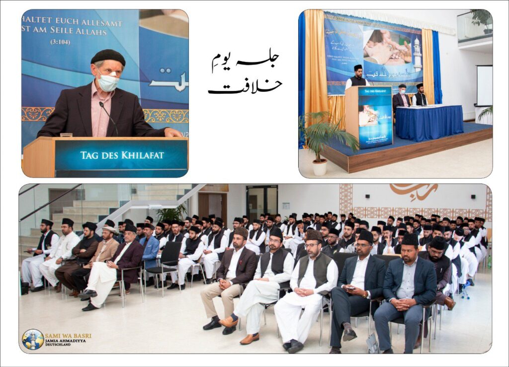 Listen to 20220624-jalsa youm e khilafat germany byAl Fazl International on hearthis.at مورخہ 27؍مئی 2022ء بروز جمعہ جامعہ احمدیہ جرمنی میں مجلس ارشاد کے تحت ‘‘جلسہ یوم خلافت’’ کا انعقاد کیا گیا۔ جلسہ یوم خلافت کے لیے محترم عبداللہ واگس ہاؤزر صاحب، نیشنل امیر جماعت احمدیہ جرمنی کو بطور مہمان خصوصی مدعو کیا گیا۔ جلسہ کا آغاز تلاوت قرآن کریم سے کیا گیا۔ عزیزم حافظ اویس قمر صاحب نے سورۃالنور کی آیات 55 تا 56 مع ترجمہ پیش کیں اور ان کا جرمن ترجمہ عزیزم حمزہ ناگی صاحب نے پیش کیا۔ بعد ازاں عزیزم رحیل احمد صاحب نے حضرت مصلح موعودؓ کا منظوم کلام عہد شکنی نہ کرو اہل و فا ہو جاؤ اہل شیطاں نہ بنو اہل خدا ہو جاؤ پیش کیا۔ جلسہ کی پہلی تقریر عزیزم سید بخاری رمیض طاہر صاحب، متعلم درجہ شاہد کی بعنوان خلیفۂ وفت کی جامعہ احمدیہ کے طلباء سے توقعات تھی۔ آپ نے حضور انور ایدہ اللہ تعالیٰ بنصرہ العزیز کے مختلف مواقع پر طلبہ جامعہ احمدیہ کو ارشاد فرمودہ نصائح پیش کیں۔ جلسہ کی دوسری تقریر مکرم انتصار احمد صاحب، استاد جامعہ احمدیہ جرمنی کی تھی جس کا عنوان خلافت پر اعتراضات کے جوابات تھا۔ اس تقریر کے بعد عزیزان محمد طلحہ کاہلوں اور نعمان احمد داؤد نے ایک ترانہ پیش کیا۔ خلیفہ دل ہمارا ہے خلافت زندگانی ہے خلافت فصل گل بھی ہے بہار جاویدانی ہے آج کے جلسہ کی آخری تقریر محترم امیر صاحب جماعت احمدیہ جرمنی کی تھی۔ آپ نے اپنی تقریر میں حضور انور ایدہ اللہ تعالیٰ بنصرہ العزیز کے اسی دن کے خطبہ جمعہ کا حوالہ دیتے ہوئے بیان کیا کہ حضرت مسیح موعودؑ کی خلافت ایک خاص خلافت ہے کیونکہ اس کے متعلق یہ وعدہ دیا گیا ہے کہ یہ تا قیامت تک چلے گی۔ پھر آپ نے بیان کیا کہ خلافت آج کے زمانہ میں خدا کا مظہر ہے پس ہمارا یہ کام ہے کہ ہم لوگوں کو اس حوالے سے آگاہ کریں۔ اور یہ بات اتنی آسان نہیں کیونکہ لوگ یہ سمجھ نہیں پاتے کہ ایک زندہ مذہب موجود ہے اور یہ کہ زندہ خدا خلافت کے ذریعہ سے ظاہر ہو رہا ہے۔ آج کے دور میں لوگوں کو ایک ایسے شخص کی ضرورت ہے جو ان کے ہم و غم کا علاج کرے۔ پس ہم نے ان کو یہ بتانا ہے کہ خلافت کے پاس علاج ہے۔ آخر پر آپ نے اس بات کا ذکر کیا کہ ہمیں چاہیے کہ ہم خلافت سے اپنے والدین سے بھی زیادہ پیار کریں۔ (رپورٹ: حامد اقبال۔ شعبہ تاریخ جامعہ احمدیہ جرمنی)
