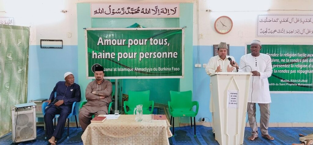 Listen to 20220712-taqreeb aamin burkinafaso byAl Fazl International on hearthis.at مکرم حافظ عطاء النعیم صاحب، مبلغ سلسلہ کایا ریجن، برکینافاسو تحریر کرتے ہیں کہ قرآن مجید کا دور مکمل کرنے پر آمین کی دعائیہ تقریب منعقد کرنا جماعت احمدیہ کی خوبصورت روایات میں سے ایک ہے۔ الحمد اللہ ایسی تقریبات اب دنیا کے ہر کونے میں منعقد ہوتی ہیں۔ برکینافاسو میں بھی اس دعائیہ تقریب کا انعقاد کیا جاتا ہے۔ مورخہ 25؍جون 2022ء بروز ہفتہ جماعت احمدیہ کایاKaya کے ریجنل ہیڈ کواٹرز کی ’’مسجد ھدیٰ‘‘ میں ایسی ہی ایک بابرکت تقریب کا انعقاد ہوا۔ اس مسجد کا افتتاح سیدنا حضرت امیرالمومنین خلیفۃ المسیح الخامس ایدہ اللہ تعالیٰ بنصرہ العزیز نے 31؍مارچ 2004ء کو فرمایا تھا۔ اس تقریب میں وہ خوش نصیب احباب شامل تھے جنہوں نے دوران سال قرآن کریم کی تکمیل کی سعادت حاصل کی۔ تقریب میں شمولیت کے لیے مکرم محمود ناصر ثاقب صاحب امیر جماعت احمدیہ برکینافاسو بطور خاص نیشنل ہیڈ کواٹرز سے تشریف لائے تھے اور آپ کے ہمراہ مکرم چوہدری نعیم احمد باجوہ صاحب پرنسپل جامعہ احمدیہ برکینافاسو بھی تھے۔ تقریب کا آغاز تلاوت قرآن کریم سے ہوا جو کہ سورے قاسم صاحب مربی سلسلہ نے کی اور مورے زبان میں ترجمہ سورگو عمر صاحب مربی سلسلہ نے پیش کیا۔ اس کے بعد ساواڈوگو نعیم صاحب سیکرٹری مال کایا ریجن نے استقبالیہ کلمات کہے۔ بعدازاں مکرم پرنسپل صاحب جامعہ احمدیہ برکینافاسو نے قرآن کریم پڑھنے کی فضیلت اور جامعہ احمدیہ میں دا خلہ کی اہمیت پر تقریر کی۔ اس کےبعد مہمان خصوصی مکرم امیر صاحب برکینافاسو نے قرآن مجید کا دور مکمل کرنے والے احباب سے قرآن کریم سنا اور اسناد تقسیم کیں۔ سال رواں میں کایا ریجن کے کل 36 احباب نے قرآن کریم ناظرہ مکمل کرنے کی توفیق پائی۔ الحمدللہ ۔ جن میں 6 اطفال، 71خدام 7لجنہ اماء اللہ اور 7 انصار شامل تھے۔ ان کے نام بغرض دعا پیش ہیں۔ حلقہتنظیمنامنمبر شمارKAYA VILLEناصرSawadogo khalid1KAYA VILLEناصرSawadogo Naeem2KAYA VILLEخادمBagayogo Moussa3KAYA VILLEطفلBagayogo Hamza4KAYA VILLEخادمOuedraogo Al Hassen5KAYA VILLEخادمOuedraogo Moussa6KAYA VILLEطفلOuedraogo Abdulaye7KAYA VILLEطفلBamogo Abdul Nourou8KAYA VILLEلجنہ اماء اللہSawadogo Habibou9KAYA VILLEلجنہ اماء اللہZouyinga Aminata10KALAMBAGHOUلجنہ اماء اللہKiama Saadia11ABKANGOUناصرBandé Idriss12KOULLOUخادمSawadogo Zakaria13KOULLOUخادمSawadogo Idriss14KOULLOUخادمSoré Souleymane15KOULLOUناصرSawadogo Abdoulaye16KOULLOUخادمNiampa Idriss17KOULLOUخادمSawadogo Daouda18KOULLOUخادمNiampa Louda19KOULLOUخادمSawadogo Muhammad20KOULLOUخادمSawadogo Ibrahim21KOULLOUناصرSawadogo Yacouba22WENANEخادمOuedraogo Abdul Qadir23WENANEلجنہ اماء اللہOuedraogo Rabiatou24WENANEطفلOuedraogo Abdul Rahim25WENANEلجنہ اماء اللہOuedraogo Maimounata26KASSIRINناصرOuedraogo Isshak.27KASSIRINناصرOuedraogo Ousmane.28KASSIRINخادمOuedraogo Séni.29KASSIRINخادمOuedraogo Mahmoud.30KASSIRINخادمOuedraogo Ibrahim.31KASSIRINطفلDiallo Leidi32KASSIRINلجنہ اماء اللہOuedraogo Balguissa33KASSIRINخادمOuedraogo sayouba34TAFGOلجنہ اماء اللہZoré Saadia35TAFGOخادمDiandé Koundya36 آخر میں مکرم امیر صاحب نے احباب جماعت کو قرآن مجید سیکھنے، اس کا علم حاصل کرنے اور ا س پر عمل کرنے کی طرف توجہ دلائی۔ تقریب کا اختتام دعا سے ہوا۔ بعد ازاں تقریب میں موجود تمام حاضرین کی خدمت میں طعام پیش کیا گیا۔ اللہ تعالیٰ ہماری اس حقیر سی کاوش کو قبول فرمائے۔ آمین