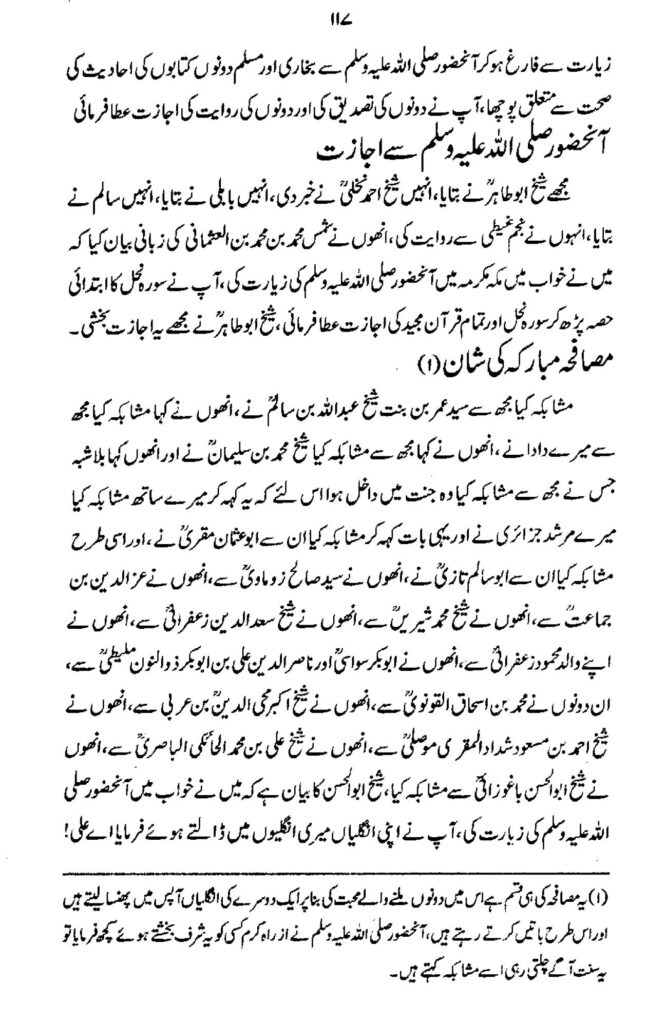 Listen to 20220705-kashf e elham k zareay.... byAl Fazl International on hearthis.at ایسی معروف احادیث و حوالہ جات جن کی تصحیح بذریعہ کشف بزرگان سلف نے تسلیم کی ہے کشف ولی سے تصحیح حدیث علامہ یوسف نبھانی اپنی کتاب ’’سعادة الدارین‘‘ میں مشہور صوفی عبداللہ بن اسعد یافعی(متوفی:768ھ) کی روایت جو انہوں نے روض الریاحین میں بیان کی ہے تحریر کرتے ہیں:’’قال اليافعي فی روض الریاحین:أخبرني بعضهم أنه يرى حول الكعبة الملائكة والأنبياء وأكثر ما يراهم ليلة الجمعة وليلة الاثنين وليلة الخميس وعد لي جماعة كثيرة من الأنبياء وذكر أنه يرى كل واحد منهم في موضع معين يجلس فيه حول الكعبة ويجلس معه أتباعه من أهله وقرابته وأصحابه وذكر أن نبينا صلى اللّٰه عليه وسلم يجتمع عليه من أولياء اللّٰه تعالى خلق لا يحصى عددهم إلا اللّٰه تعالیٰ ولم تجتمع على سائر الأنبياء وذكر أن إبراهيم وأولاده يجلسون بقرب باب الكعبة بحذاء مقامه المعروف وموسى وجماعة من الأنبياء بين الركنين اليمانيين وعيسى وجماعة منه في جهة الحجر ورأي نبينا صلى اللّٰه عليه وسلم جالسًا عند الركن اليماني مع أهل بيته وأصحابه وأولياء أمته وحكى عن بعض الأولياء أنه حضر مجلس فقيه فروى ذٰلك الفقيه حديثًا فقال له الولي: هذا باطل فقال: الفقيه من أين لك هذا؟ فقال: هذا النبي صلى اللّٰه تعالیٰ عليه وسلم واقف على رأسك يقول: إني لم اقل هذا الحديث۔‘‘(سعادة الدارين صفحہ432)کسی ولی نے مجھے بتایا کہ وہ کعبہ کے گرد فرشتے اور پیغمبرکو دیکھتاہے اور اکثر ایسا جمعہ،پیر کی رات اور جمعرات کو ہوتا ہے۔اس (ولی)نے مجھے انبیاء کی ایک کثیر جماعت گنوائی اوربتایاکہ وہ ان میں سے ہر ایک کو ایک مخصوص جگہ پر کعبہ کے گرد بیٹھاہوادیکھتاہےاوراس(نبی)کے متبعین میں سے اس کےاہل خانہ ، رشتہ دار اوراصحاب اس کے ساتھ بیٹھتے ہیں۔ ہمارے نبی ﷺکے پاس اتنےاولیاء جمع ہوتے ہیں جن کی تعداد خدا کے سوا کوئی شمار نہیں کرسکتا۔ اور اس قدر تعداد باقی تمام انبیاء کے پاس بھی جمع نہ ہوپاتی۔ اورحضرت ابراہیمؑ اوران کی اولاد باب کعبہ کے پاس اپنے معروف مقام پر بیٹھتے ہیں اورحضرت موسیٰؑ اورانبیاء کی ایک جماعت رکن یمانی کے درمیان اورحضرت عیسیٰؑ اوران کی ایک جماعت حجر اسود کی طرف بیٹھتی ہے۔اس نےہمارے نبیﷺ کواہل بیت رسولﷺ،اور صحابہ کرامؓ اور اولیائے امتؒ کے ساتھ رکن یمانی کے پاس بیٹھے دیکھا۔اس نے بعض اولیاء کے متعلق بیان کیا کہ وہ ایک فقیہ کی مجلس میں بیٹھے تھے کہ اس فقیہ نے ایک حدیث بیان کی تواس ولی نے کہا کہ یہ حدیث باطل ہے اس پر فقیہ نے کہا کہ آپ یہ کس بنا پر کہتے ہیں؟تو اس ولی نے کہا کہ یہ دیکھیں،نبی کریمﷺ آپ کے سر پر کھڑے یہ فرما رہے ہیں کہ ’’میں نے یہ حدیث بیان نہیں کی۔اس وقت اس فقیہ کو یہی کشف ہوگیا اور اس نے آنحضرتﷺ کو کھڑے ہوئے دیکھا‘‘۔ رسول اللہﷺ سے حالت کشف میں تحصیل علم اَب بھی جاری ہے علامہ ابن حجر ہیثمی (اللہ تعالیٰ آپ کےعلوم سےنفع دےاور آپ سے راضی ہو)سے سوال کیاگیا کہ’’کیا اب بھی نبی کریم ﷺ سے حالت بیداری میں شرف ملاقات پاکر علوم سیکھے جاسکتے ہیں؟‘‘توآپؒ نے جواباً فرمایا کہ ہاں بالکل یہ ممکن ہے اور پھر آپؒ نے کرامات اولیاء کا صراحتاً ذکر کیا جن میں شافعی مسلک کے امام غزالی،علامہ بارزی،علامہ تاج سبکی اورصوفی عفیف یافعی اور مالکی مسلک کے علامہ قرطبی اور ابن ابی جمرہ شامل ہیں اور انہوں نے بعض اولیاء کی حکایات بھی بیان کیں کہ ایک فقیہ کی مجلس میں وہ شریک تھے اور اس فقیہ نے ایک حدیث بیان کی تو ایک ولی نے اسے کہا کہ یہ حدیث باطل ہے تو اس فقیہ نے اس پر کہا کہ آپ یہ کس طرح کہہ سکتے ہیں تو ولی نے کہا کہ یہ بات میں نے اپنی طرف سے نہیں کہی بلکہ یہ رسول اللہﷺ نے فرمایا ہے جو تمہارے سر پر کھڑے ہیں۔اس پر اس فقیہ نے آپﷺ کی کشفاً زیارت کی۔ (وَسُئِلَ) نفع اللّٰه بِعُلُومِهِ ورضى عَنهُ: هَل يُمكن الْآن الِاجْتِمَاع بِالنَّبِيِّ صلى اللّٰه عليه وسلم فِي الْيَقَظَة والتلقي مِنْهُ؟ فَأجَاب بقوله: نعم يُمكن ذٰلِك، فقد صرح بِأَن ذٰلِك من كرامات الْأَوْلِيَا