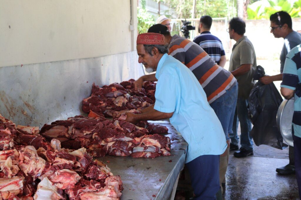 Listen to Suriname main Eid ul Adha byAl Fazl International on hearthis.at عید، ایسی خوشی جو بار بار لوٹ کر آئے۔ خدا تعالیٰ کے فضل اور احسان سے امسال ملک، ملک،شہر شہر عید الاضحی کی وہ خوشیاں لوٹ آئیں جو گذشتہ دو سال سے کسی حد تک ماند پڑی ہوئی تھیں۔ رب ذوالجلال کے کرم سے کورونا کی عالمی وباء کی شدت کافی حد تک کم ہو گئی ہے اور اس کے نتیجے میں جو پابندیاں عائد تھیں وہ بھی بہت حد تک دور ہو گئی ہیں۔ سُرینام جنوبی امریکہ کا وہ واحد ملک ہے جہاں مسلمان آبادی کا تناسب خطے کے باقی سب ملکوں سے زیادہ ہے۔ اور عیدین کے موقع پر ملک میں عام تعطیل ہوتی ہےاور مسلمان اس کا خاص اہتمام بھی کرتے ہیں۔ ہر جامع مسجد کے احاطہ میں عید الاضحی کے دن قربانی کے لیے جگہ مخصوص ہے اور یوم النحر کے موقع پر مساجد میں خصوصی اہتمام کے ساتھ چھوٹے بڑے جانور قربان کیے جاتے ہیں۔ اور مختلف رنگ و نسل کے لوگ گوشت کا پیکٹ لینے کے لیے لائن میں کھڑے نظر آتے ہیں۔ عید سے تین ہفتے قبل متعلقہ ڈسٹرکٹ کمشنر کو قربانی کی اجازت کی درخواست بجھوائی جاتی ہے اور اس کے نمائندے جگہ اور سہولتوں کا جائزہ لے قربانی کی اجازت دیتے ہیں اور اس کی کاپی محکمہ صحت اور قریبی ٹاؤن کمیٹی کو بجھوائی جاتی ہے۔ سُرینام میں اتوار 10جولائی کو عید الاضحی منائی گئی۔ عید سے ایک دن قبل اجتماعی وقار عمل کا پروگرام رکھا گیا۔ مسجد اور قرب و جوار کی صفائی کی گئی، گھاس کاٹا گیا،قربانی کے لیے مخصوص جگہ کو پریشر پمپ سے دھویا گیا۔ تمام ٹیبل اور قربانی کے اوزار صاف کیے گئے۔ بچوں کے کھیلنے کی جگہ کی صفائی کی گئی اور جھولے ٹھیک کیے گئے۔ عید کی صبح مردوں کے لیے باہر شیڈ کے نیچےنماز پڑھنے کا انتظام کیا گیا اور خواتین کے لیے مسجد کے اندر نماز ادا کرنے کا اہتمام کیا گیا۔ ساؤنڈ سسٹم بھی سیٹ کیا گیا۔ نماز عید کا وقت صبح نو بجے مقرر کیا گیا تھا۔ خدا تعالیٰ کے فضل کے ساتھ صبح آٹھ بجے سے افراد جماعت کی آمد شروع ہوگئی تھی۔ افراد جماعت کے لیے ناشتے اور چائے؍کافی کا انتظام کیا گیا تھا۔ احباب جماعت کی آمد کے بعد تکبیرات دھرانے کا سلسلہ شروع کر دیا گیا تھا۔ مسجد سے ملحقہ ہال کے اندر افراد جماعت نے عید فنڈ کی ادائیگی کے لیے لائن بنا لی اور سیکریٹر ی صاحب مال نے وصولی شروع کر دی۔ نماز عید ادا کرنے کے بعد خاکسار (مبلغ سلسلہ) نے موقع کی مناسبت سے خطبہ دیا۔ دعاکے بعد افراد جماعت ایک دوسرے سے گلے ملے اور عید کی مبارک باد دی۔ پھر خدام اور انصار نےجانور ذبح کرنے کے لیے تیاری شروع کی، اور لجنہ اماء اللہ نے کھانا پکانے کے لیے ابتدائی تیاری شروع کی۔ خدا تعالیٰ کے فضل سے مسجد سے ملحقہ مخصوص جگہ پر چار بڑے اور چار چھوٹے جانور باری باری قربان کیے گئے۔ پھر گوشت کی کٹائی کی گئی۔ ملکی قوانین کے مطابق محکمہ صحت کے ملازمین نے کام کا جائزہ لیا اور حیوانات کے ڈاکٹر نے گوشت کا معائنہ کیااور اس کے استعمال کی اجازت دی۔ جس کے فوراً بعد چھوٹا اور بڑا گوشت لجنہ اماء اللہ کو مہیا کیا گیا تاکہ حاضرین کے لیے ظہرانے کا انتظام ہو۔ پھر اسلامی تعلیم کے مطابق گوشت کے حصے کیے گئے۔خدا تعالیٰ کے فضل سے گذشتہ تقریباً چالیس سال سے جماعت کے ایک ممبر محترم عبد المطلب محمود صاحب یہ کام بہت خوبی سے انجام دیتے چلے آرہے ہیں۔ موصوف بڑی مہارت سے قربانی کی گوشت کو تین حصوں میں تقسیم کرتے ہیں۔ مسجد کے حصےوالے گوشت کے پیکٹ بنانے گئے اور لسٹ کے مطابق تمام فیملز میں تقسیم کیے گئے۔ دن دو بجے کے قریب کھانا تیار ہوا اور تمام حاضرین اس سے لطف اندوز ہوئے۔ امسال 70پیکٹ افراد جماعت میں اور 40 پیکٹ ضرورت مند افراد میں تقسیم کیے گئے۔نیز 5 پیکٹ یتیم خانوں اور معذور افراد کے مرکز میں پہنچائے گئے۔ عام طور پر ہم قربانی کے بعد الائشوں کوزمین میں دفن کردیتے ہیں، لیکن امسال مسلسل بارشوں کی وجہ سے ایسا کرنا ممکن نظر نہیں آرہا تھا، اس لیے ایک ویسٹ مینیجمنٹ کمپنی سے رابطہ کرکے بیرلز کا انتظام کیا گیا اور اس ذریعہ سے الائشوں کو ٹھکانے لگایا گیا۔ میڈیا کوریج خدا تعالیٰ کے فضل سے عید الاضحی کے موقع پر ہمیں بہترین میڈ