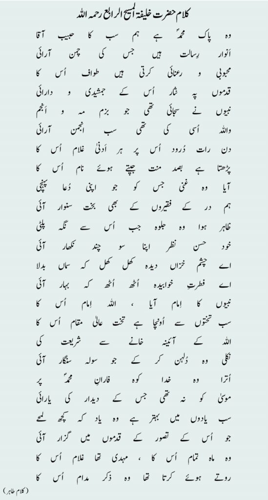 کلام حضرت مرزا طاہر احمد خلیفۃ المسیح الرابع ؒ