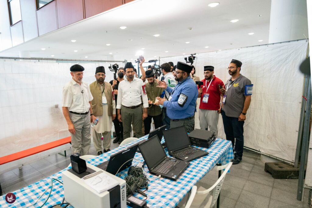 (جلسہ گاہ Karlsruhe، جرمنی، 18؍اگست 2022ء، نمائندہ الفضل انٹرنیشنل) 46ویں جلسہ سالانہ جرمنی کا معائنہ محترم نیشنل امیر صاحب جرمنی کی تشریف آوری کے ساتھ شام 6 بجکر 20 منٹ پر شروع ہوا۔ معائنے میں امیر صاحب کے ساتھ مکرم محمد الیاس مجوکہ صاحب افسرجلسہ سالانہ، مکرم صداقت احمد صاحب افسر جلسہ گاہ، مکرم کمال احمد صاحب صدرمجلس خدام الاحمدیہ و افسر خدمت خلق، مکرم فیضان اعجاز صاحب ناظم معائنہ و دیگر ناظمین شامل تھے۔ شعبہ سوشل میڈیا و سافٹ وئیر ناظم صاحب معائنہ نے معائنے کا آغاز شعبہ سوشل میڈیا و سافٹ وئیر سے کیا جس کے ناظم مکرم عطاءالوحید خان صاحب نے مکرم امیر صاحب کو اپنے شعبہ کا تعارف کروایا اور بتایا کہ کس طرح وہ سوشل میڈیا پر جلسہ سالانہ کی تشہیر کر رہے ہیں۔ ناظم صاحب کا کہنا تھا کہ مختلف شعبہ جات کے انٹرویوز کیے جارہے ہیں اور ساتھ ساتھ سوشل میڈیا پر ان کو اپلوڈ بھی کیا جا رہا ہے۔ ناظم صاحب نےمزید بتایا کہ جلسہ سالانہ کے حوالے سے ایک لنک تیار کیا گیا ہے جس کے ذریعہ احباب جماعت اپنے ویڈیو کلپ اَپ لوڈ کرسکتے ہیں جنہیں ہماری ٹیم چیک کرکے اپنے چینل پر نشر کرتی ہے۔ مکرم خان صاحب نے مزید بتایا کہ انسٹا گرام 215k، ٹیوٹر 78K، فیس بک 44k، اور یوٹیوب پر16 ہزار سے زائد احباب اب تک ہماری نشریات و ویڈیو کلپس سے استفادہ کر چکے ہیں۔ جلسہ ہاٹ لائن اس کے بعد جلسہ ہاٹ لائن، شعبہ تبلیغ و امور خارجیہ، خدمت خلق اور استقبالیہ کا معائنہ کرتے ہوئے شعبہ ٹرانسپورٹ میں پہنچے۔ ٹرانسپورٹ مکرم محمد سرور چیمہ صاحب ناظم ٹرانسپورٹ نے بتایا کہ جلسہ پر تشریف لائے ہوئے مہمانوں کو ٹرانسپورٹ کی سہولت مہیا کی جارہی ہے۔ اسی طرح ریلوے سٹیشن سے احباب جماعت کو لینے کی سروس بھی جاری ہے۔ یہ سروس 24 گھنٹے ہے اور اگلے 4 دن تک یہ سروس انشاءاللہ جاری رہے گی۔ اس کے بعد امیر صاحب نے شعبہ کورونا ٹیسٹ سینٹر، شعبہ رجسٹریشن اور ایم ٹی اے کا معائنہ کیا۔ دفتر جلسہ سالانہ و دفتر جلسہ گاہ ناظم صاحب دفتر جلسہ سالانہ نے امیر صاحب کو ہاٹ لائن کا تعارف کروایا جو 24 گھنٹے جاری ہے اور جس سے جلسہ پر آنے والے احباب فائدہ اٹھا رہے ہیں۔ ناظم صاحب نے بتایا کہ زیادہ تر سوالات ٹرانسپورٹ اور رہائش کے حوالہ سے کیے جارہے ہیں ۔ جلسہ کا پلان اور کمیٹی لسٹس تمام شعبہ جات کومہیا کر دی گئیں ہیں۔ ای میل بھی آرہی ہیں جس میں رجسٹریشن کے حوالہ سے سوالات ہوتے ہیں۔ اس طرح کورونا ٹیسٹ کے حوالہ سے بھی سوالات ہو رہے ہیں۔ اس کے بعد امیر صاحب نے ایک ہی جگہ پر قائم مختلف شعبہ جات کے اسٹینڈز کا معائنہ کیا جس میں شعبہ انفارمیشن اور جامعہ احمدیہ کا انفارمیشن اسٹینڈ بھی شامل تھے۔ اس کے بعد شعبہ وصیت کا دفتر، ہیومیونٹی فرسٹ کے سٹال، النصرت کے شعبہ کا معائنہ کرتے ہوئے شعبہ تاریخ، شعبہ سو مساجد، تعلیم القرآن و وقف عارضی، وقف نو، خدام کیفے کا معائنہ کرتے ہوئے شعبہ ضیافت پہنچے۔ ضیافت مکرم ملک سکندرحیات صاحب نائب افسر نے ریزرو خیمہ کا معائنہ کروایا اور بتایا کہ یہاں بیک وقت 200افراد کھانا تناول فرماسکتے ہیں۔ اس کے بعد شعبہ امانت، نظافت اور شعبہ تربیت کا معائنہ ہوا۔ شعبہ تیاری اس کے بعد امیر صاحب شعبہ تیاری تشریف لے گئے جہاں ناظم صاحب تیاری نے بتایا کہ تمام کنٹینر آگئے ہیں۔ کچھ سامان ایک دو دن لیٹ آیا ہے لیکن آچکا ہے۔ اسی طرح تمام خیمہ جات سوائے بڑے پنڈال کے جماعت نے خود لگائے ہیں۔ لجنہ اماء اللہ کی طرف بھی کام مکمل ہو چکا ہے۔ میز اور کارپٹ لگ گئے ہیں۔ ساؤنڈ سسٹم لگ گیا ہے۔ اسٹیج کی تیاری ہوچکی ہے۔ لجنہ اماء اللہ اور مردوں کی طرف تمام خیمے لگ گئے ہیں جن کی تعداد تقریباً 100 کے قریب ہے۔ باہر پارکنگ کی تیاری ہو گئی ہے۔ احباب جماعت اپنے اپنے پرائیوٹ خیمہ جات لگا رہے ہیں۔ لجنہ اماء اللہ کارکنات کی رہائش بھی تیار کر دی گئی ہے اور اس کی حد بندی بھی کر دی گئی ہے۔ مختلف شعبہ جات کے دفاتر تیار ہو رہے ہیں۔ جلسہ گاہ کے ارد گرد صفائی کا کام کیا جا رہا ہے۔ مردوں کی طرف رہائش اور ضیافت کا کام مکمل ہو گیا ہے۔ پرچم کشائی کی تیاری جاری ہے