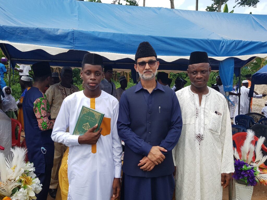 Listen to 20220902-taqreeb aameen ghana byAl Fazl International on hearthis.at اللہ تعالیٰ کے فضل اور حضرت خلیفۃ المسیح الخامس ایدہ اللہ تعالیٰ کی خاص شفقت سے گھانا میں مدرسۃ الحفظ کا قیام یکم مارچ 2005ءمیں ہوا۔ اب تک اس ادارے سے حفظ کرنے والوں کی تعداد 76 ہوچکی ہے۔ الحمدللہ۔ ان حفاظ کا تعلق گھانا، برکینا فاسو، آئیوری کوسٹ، یوگنڈا، لائبیریا، ٹوگو، بینن، پاکستان اور گیمبیا سے ہے۔ جس دن والدین اپنے بچے کو مکمل قرآن کریم کے حافظ کی صورت میں دیکھتے ہیں تو ان کی خوشی دیدنی ہوتی ہے۔ جماعتی روایا ت کے مطابق حسبِ استطاعت بعض والدین اس خوشی کے موقع کو تقریب آمین و شکرانہ کے طور پر مناتے بھی ہیں۔ ایسی ہی ایک تقریب آمین مورخہ 24جولائی 2022ء کو عزیزم حافظ حنیف ابوبکر ابن محترم ابوبکری اسحاق صاحب (معلم سلسلہ)کی ہوئی۔ یہ تقریبMankrong Junctionکی احمدیہ مسجد کے سامنے منعقد ہوئی جس میں مرد، خواتین اور بچوں سمیت قریباََ 200افراد نے شرکت کی۔ اس تقریب کے مہمان خصوصی Agona Zoneکے صدر جماعت محترم زکریابن سولے (Soleh)صاحب تھے۔ اس تقریب کے مہمانان کے لیے کینوپیز اور کرسیوں کا انتظام کیا گیا تھا جن میں مرد اور خواتین کے لیے بیٹھنے کا علیحدہ علیحدہ انتظام تھا۔ درمیان میں سٹیج تھا جس کو بڑی خوبصورتی سےسجایا گیا تھا۔ صبح ساڑھے گیارہ بجے تقریب کا آغاز تلاوتِ قرآن کریم سے ہوا۔ پروگرام کے مطابق تلاوت مع ترجمہ عزیزم عبد الباسط بوآبنگ (طالبعلم جامعہ احمدیہ انٹرنیشنل گھانا)نے کی۔ اس کے بعدحضرت مسیح موعودؑ کی اردو نظم ’’حمد و ثناء اسی کو‘‘ عزیزم محمد بن آدم (طالبعلم جامعہ احمدیہ انٹرنیشنل گھانا)نے پڑھی۔ گھانا کی روایات کے مطابق پروگرام میں شامل مہمانان کا تعارف بھی کروایا جاتا ہے۔ محترم عبد الرحمٰن ثانی صاحب نے پروگرام میں موجود بعض مہمانان کا تعارف کروایا۔ مہمانوں کے تعارف کے بعد Agona Zoneکے مبلغِ سلسلہ محترم اسماعیل کویکو فریمپنگ صاحب نے پروگرام کےآغاز پر دعا کروائی۔ بعد از دعا بچے کے والد محترم ابوبکری اسحاق(معلم سلسلہ)نے مختصراً اس تقریب کا تعارف کروایا اور بتایا کہ ہم سب یہاں خدا تعالیٰ کا شکر ادا کرنے کے لیے اکٹھے ہوئے ہیں۔ اس کے بعد معلمین سلسلہ کے ایک گروپ نے اس علاقہ کی لوکل زبان فانٹی (Fanti)میں قرآنِ کریم اور خلافت سے محبت کے ترانے پیش کیے۔ بعد ازاں عزیزم حافظ حنیف ابوبکر نے اپنا حفظ قرآن کا تعلیمی سفرپڑھ کر سنایا۔ جس میں عزیزم نے بتایا کہ مدرسہ میں ایک طالبعلم سارا دن کیسے گزارتا ہے۔ حفظ کا طریق کیا ہے نیز یہ کہ شروع میں ان کو قرآن کریم حفظ کرنا بہت مشکل لگا۔ روزانہ 3لائنیں حفظ کرنا بھی انتہائی دشوار تھا۔ پھر روزانہ نماز باجماعت میں دعا کی۔ باقاعدگی سے ہر ماہ حضور انور ایدہ اللہ تعالیٰ بنصرہ العزیز کی خدمت میں دعائیہ خط لکھا جس کے نتیجہ میں رفتہ رفتہ میری پڑھائی بہتر ہوئی اور مجھے حفظ مکمل کرنے کی توفیق ملی الحمد للہ۔ اس کے بعد محترم Musa Korantangصاحب نے حافظ حنیف ابوبکر کے تعلیمی سفر کا لوکل زبان میں ترجمہ پیش کیا۔ اس کے بعد پروگرام کے مطابق خاکسار نے مختصراََ والدین کو توجہ دلائی کہ وہ اپنے بچوں کو چھوٹی عمر سے ناظرہ قرآن کریم سکھانے کی کوشش کریں اور روزانہ قرآن کریم کی تلاوت کی عادت ڈالیں۔ بعدہ Agona Zoneکے مبلغ سلسلہ محترم اسماعیل کویکو فریمپنگ صاحب جو کہ مدرسۃ الحفظ کے پہلے بیچ میں شامل تھے نے اپنے جذبات کا اظہار کیا اور اس مشکل دور کا ذکر کیا جبکہ پانی کی شدید قلت تھی اور آج کل کی طرح اتنی سہولیات بھی نہ تھیں اس کے باوجود والدین نے اپنے بچوں کو قرآنِ کریم حفظ کروانے کے لیے مدرسۃ الحفظ بھجوایا۔ خدا تعالیٰ کے فضل سے اب تک صرف گھانا سے ہی 63حفاظ تیار ہوچکے ہیں، ان میں سے بہت سارے جامعہ انٹرنیشنل گھانا سے اپنی تعلیم مکمل کرکے میدانِ عمل میں کام کررہے ہیں جبکہ بہت سے ابھی جامعہ میں زیرِتعلیم ہیں۔ یہ سب خلافت کی برکات ہی ہیں جن سے ہم استفادہ حاصل کررہے ہیں۔ الحمدللہ علیٰ ذٰلک اس مختصر تقریر کے بعد محترم اسماعیل کویکو فریمپنگ صاحب مبلغ سلسلہ نے مہمانِ خصوصی کی درخواست پر اج