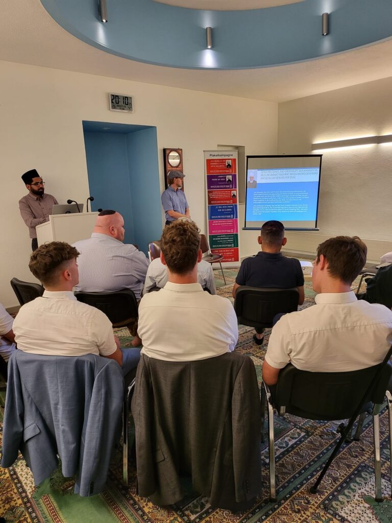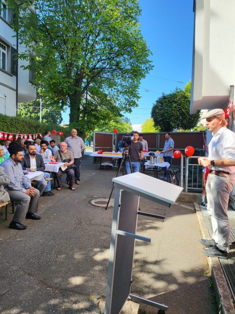 محمود مسجدزیورخ میں تبلیغی پروگرام اللہ تعالیٰ کے فضل سے مورخہ 14؍جولائی 2022ء کی شام محمود مسجد زیورخ میں ایک تبلیغی پروگرام منعقد کیا گیا جس میں ایک سوئس عیسائی بزرگ، دو روسی یہودی اور مختلف ممالک سے تعلق رکھنے والے چار عیسائی مبلغین پر مشتمل ایک گروپ سمیت کل سات افراد شامل ہوئے۔ مکرم فہیم احمد خاں صاحب، مربی سلسلہ نے اسلام کی پرامن تعلیمات کے بارے میں ایک پریزنٹیشن دی جس کے بعد مکرم ولید طارق تارنوتسر صاحب نیشنل امیر اور مکرم منیر احمد منور صاحب، مبلغ انچارج نے مہمانوں کے سوالات کے جوابات دیے۔ یہ پروگرام سات بجے سے نو بجے تک جاری رہا۔ اس کے بعدنو بجے مہمانوں کو ریفریشمنٹ پیش کی گئیں۔ اس تبلیغی پروگرام کا اہتمام جماعت زیورخ ناصر اور مشتاق نے کیا تھا۔ پروگرام سے پہلے اس کی کامیابی کے لیے دونوں جماعتوں نے 1500دعوت نامے فلائرز کی شکل میں تقسیم کیے، سوشل نیٹ ورک فیس بک پر 47282افراد نے اس فلائر کو دیکھا اور مقامی اخبار Züriberg/Zürich Nord میں اشتہار دیا گیا۔ پروگرام میں معاونت کی توفیق پانے والوں میں مکرم محمد بشیر صاحب (صدر جماعت زیورخ ناصر)، ملک جری اللہ صاحب (سیکرٹری تبلیغ جماعت زیورخ ناصر)، مکرم عطاالحق میکھو لیچش صاحب (سیکرٹری امورِ خارجہ زیورخ ناصر)، مکرم قدیر احمد خالد صاحب (صدر جماعت زیورخ مشتاق) اور مکرم قاسم احمد خاں صاحب (سیکرٹری تبلیغ و امورِ خارجہ زیورخ مشتاق) شامل ہیں۔ زیورخ میں تبلیغی بل بورڈز کے ذریعہ قریباً 4.5لاکھ افراد تک اسلام کا پُر امن پیغام پہنچا جماعت احمدیہ سوئٹزرلینڈ کو10عدد تبلیغی بل بورڈز کو جن پر قرآنی آیات، احادیثِ نبوی صلی اللہ علیہ وسلم اوراقتباسات مع تصویر حضرت اقدس مسیح موعود علیہ السلام پر مشتمل احمدیت یعنی حقیقی اسلام کی پُر امن تعلیمات درج تھیں، زیورخ شہر کے اہم مقامات اور شاہراہوں پر مورخہ 18تا 24؍جولائی 2022ء آویزاں کرنے کی توفیق ملی۔ ان مقامات میں شہر کا مین ریلوے سٹیشن، زیورخ کے بین الاقوامی ہوائی اڈے کو جانے والا رستہ اور Oerlikon کا علاقہ شامل ہیں۔ ایک اندازے کے مطابق ان تبلیغی بل بورڈز کے ذریعہ قریباً ساڑھے چارلاکھ افراد تک اسلام کا پُر امن پیغام پہنچا۔ الحمد للہ سوئٹزرلینڈ کا قومی تہوار جماعتی روایات کے مطابق منایا گیا مکرم محمود الرحمٰن انور صاحب نیشنل سیکرٹری امورِ خارجہ سوئٹزرلینڈ تحریر کرتے ہیں کہ مورخہ یکم اگست 2022ء ءکو شعبہ امورِ خارجہ کے زیرِ اہتمام سوئٹزرلینڈ کا قومی تہوار محمود مسجد زیورخ اور نور مسجد ویگولٹینگن میں جماعتی روایات کے مطابق منایا گیا۔ جس میں افراد جماعت، اور غیر از جماعت اور سوئس احباب کی کثیر تعداد نے شرکت کی۔ تقاریب میں شاملین کے لیے برنچ کا اہتمام بھی کیا گیا تھا۔ دونوں مساجد میں تقریب کا آغاز تلاوتِ قرآکریم سے ہوا، جس کے بعد قومی ترانہ گایا گیا۔مربیانِ سلسلہ نے جماعتی تعارف کروایا اور حب الوطنی پر جماعتِ احمدیہ یعنی حقیقی اسلام کا نظر یہ پیش کیا۔ جسے سراہتے ہوئے سوئس مہمانوں نے اطمینان اور مسرت کا اظہار کیا۔ مہمانوں کو مساجد کا دورہ بھی کروایا گیا۔