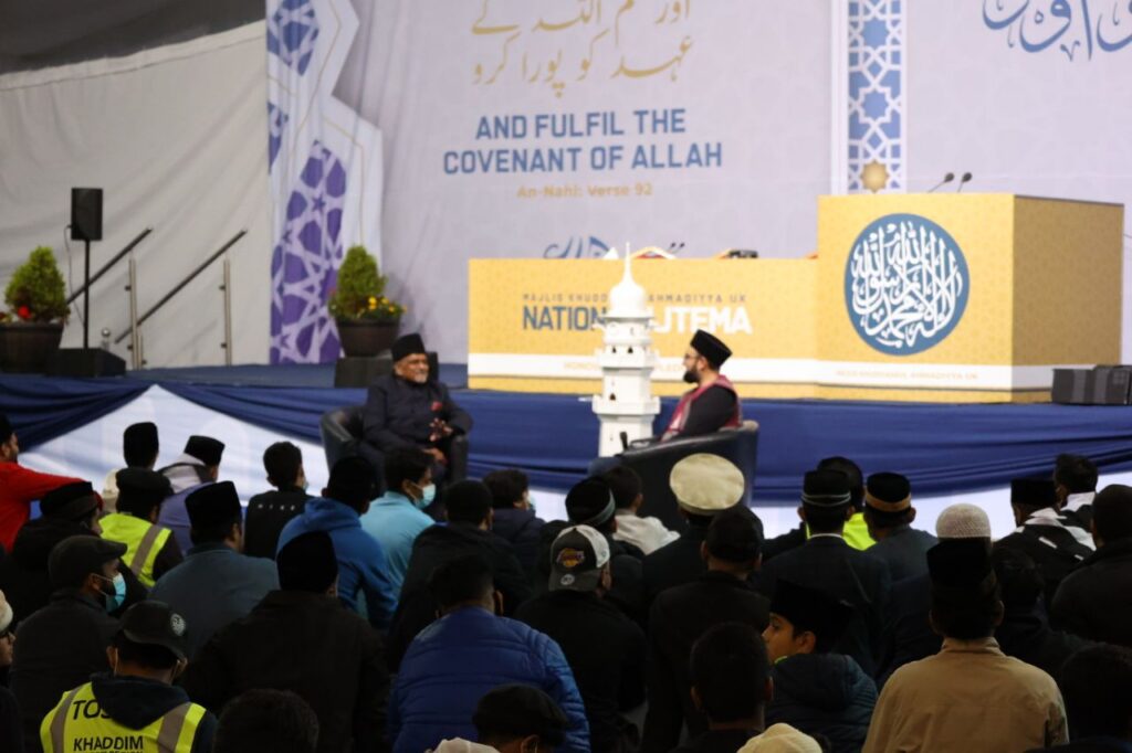 ٭…حضورِ انور ایّدہ اللہ تعالیٰ بنصرہ العزیز کی اختتامی اجلاس میں شمولیت اور بصیرت افروز خطاب، صلوٰۃ ایپ کا افتتاح ٭…برطانیہ بھر سے ساڑھے پانچ ہزار سے زائد خدام و اطفال کی شمولیت ٭…علمی و (محدود پیمانے پر) ورزشی مقابلہ جات نیز ایمان افروز مجالس کا انعقاد اللہ تعالیٰ کے فضل سے مجلس خدام الاحمدیہ برطانیہ کا سالانہ اجتماع مورخہ 09 تا 11؍ستمبر 2022ء حدیقۃالمہدی سے قریباً دو میل دور Old Park Farm، واقع Sickles Lane، Kingsley میں منعقد ہوا ۔ امسال اجتماع کا مرکزی موضوع حضورِ انور ایّدہ اللہ تعالیٰ بنصرہ العزیز کے ارشاد پر ’اپنے عہد کی پاسداری‘ رکھا گیا تھا۔ اجتماع کا پہلا روز اجتماع کا آغاز 9؍ستمبر بروز جمعۃ المبارک سوا چار بجے کے قریب پرچم کشائی کی تقریب سے ہوا جو مکرم و محترم خالد احمد شاہ صاحب ناظر اعلیٰ و امیر مقامی نے کی۔ اس کے بعد آپ نے دعا کروائی۔ بعد ازاں افتتاحی اجلاس کا آغاز مکرم ناظراعلیٰ صاحب کی زیر صدارت چاربج کر 24 منٹ پر ہوا۔ تلاوت قرآن کریم کی سعادت مکرم رضوان شہزاد بٹ صاحب کو ملی۔ آپ نے سورۃ الاحزاب کی آیات 22 تا 25 کی تلاوت کی۔ ان آیات کا انگریزی ترجمہ مکرم عدیل احمد بھٹی صاحب نے پیش کیا۔ بعد ازاں خدام نے مکرم عبد القدوس عارف صاحب صدر مجلس خدام الاحمدیہ برطانیہ کے ساتھ خدام الاحمدیہ کا عہد دہرایا۔ اس کے بعد مکرم دانش ہارون صاحب نے حضرت مصلح موعودؓ کے منظوم کلام؎ میں اپنے پیاروں کی نسبت ہرگز نہ کروں گا پسند کبھی وہ چھوٹے درجہ پہ راضی ہوں اور ان کی نگاہ رہے نیچی خوش الحانی سے پیش کی۔ نظم کے بعد صدر مجلس مکرم ناظر اعلیٰ صاحب نے چار بج کر 36 منٹ پر بزبان اردو خطاب کیا۔ آپ نے کہا کہ حضرت مسیح موعودؑ نے فرمایا ہے کہ دین کے دو حصے ہیں۔ اللہ تعالیٰ سے محبت کرنا اور دوسرا مخلوق خدا سے اس قدر محبت کرنا کہ ان کی مصیبت کو اپنی مصیبت سمجھ لینا اور ان کے bلیے دعا کرنا۔ اللہ تعالیٰ کی پاک ذات سے محبت کرنا اور اسے وحدہ ٗلا شریک سمجھنا، یہ بہت ضروری ہے۔ ہر چیز کا مالک خدا تعالیٰ ہے۔ اسی کے ہاتھ میں عزت ہے، زندگی ہے، موت ہے، رزق ہے۔ انسان دعویٰ تو بہت کرتا ہے کہ میں اللہ تعالیٰ سے محبت کرتا ہوں، اس پر توکل کرتا ہوں، لیکن جب کوئی مصیبت آتی ہے تو اس کے ہاتھ پاؤں پھول جاتے ہیں۔ وہ کبھی ادھر دیکھتا ہے کبھی ادھر دیکھتا ہے۔ اور اس کی فعلی شہادت اس کے دعوے کی نفی کر رہی ہوتی ہے۔ اصل محبت خدا تعالیٰ کے ساتھ انسان کو جو ہوتی ہے اس کا امتحان مصیبت کے وقت ہی ہوتا ہے کہ اس وقت انسان خدا تعالیٰ کی طرف رجوع کرتا ہے یا اِدھر اُدھر دیکھتا ہے۔ اگر مشکل کی گھڑی میں اس کی زبان سے انا للّٰہ وانا الیہ راجعون نکلتا ہے اور راضی ہیں ہم اسی میں جس میں تری رضا ہو، تو یہ اس بات کی نشانی ہے کہ وہ واقعی اللہ تعالیٰ سے محبت کرتا ہے۔ لیکن اگر وہ کسی اور سے یہ امید رکھتا ہے کہ فلاں شخص کی وجہ سے مجھے رزق مل جائے گا یا میرا کام ہوجائے گا تو جیساکہ میں نے عرض کیا کہ یہ ثابت ہورہا ہے کہ اس کا خدا تعالیٰ سے محبت کا دعویٰ درست نہیں ہے۔ حضرت خلیفۃ المسیح الخامس ایدہ اللہ تعالیٰ بنصرہ العزیز بار بار ہمیں اس طرف توجہ دلا رہے ہیں کہ خالص ہوکر خدا تعالیٰ کی عبادت کرو۔ خالص محبت تو یہی ہوتی ہے کہ ہر صورت میں اس کی ذات سے وابستہ رہیں اور دنیا کی کوئی طاقت ہمیں خدا تعالیٰ سے دور نہ کرسکے۔اسی صورت میں ہمارا دعویٰ سچا ہوسکتا ہے۔ آپ نے کہا کہ شیطان سے بچنے کے لیے زیادہ سے زیادہ استغفار کرنے اور درود شریف پڑھنے کی ضرورت ہے اور اللہ تعالیٰ سے ہی مدد مانگنی چاہیے۔ اپنے لیے بھی اور دوسروں کے لیے بھی بہت دعا کرنی چاہیے۔ اگر کوئی آپ کو نقصان پہنچا رہا ہے تو اس کے لیے بھی دعا کریں۔ یہ اللہ تعالیٰ کی نگاہ میں بہت پسندیدہ فعل ہوگا کہ ہم اپنے دشمن کے لیے بھی دعا کریں۔ مکرم ناظر اعلیٰ صاحب نے عہدہ داران کو بھی ان کی ذمہ داریوں کی طرف توجہ دلائی۔ نیز اگر کسی کو کسی عہدہ دار سے کوئی شکایت ہے تو انہیں علیحدگی میں بتائیں۔ لیکن اگر پھر بھی کوئی بہتری نہ ہو تو اعلیٰ افسران کو مطلع کردیں اور ان کے لیے