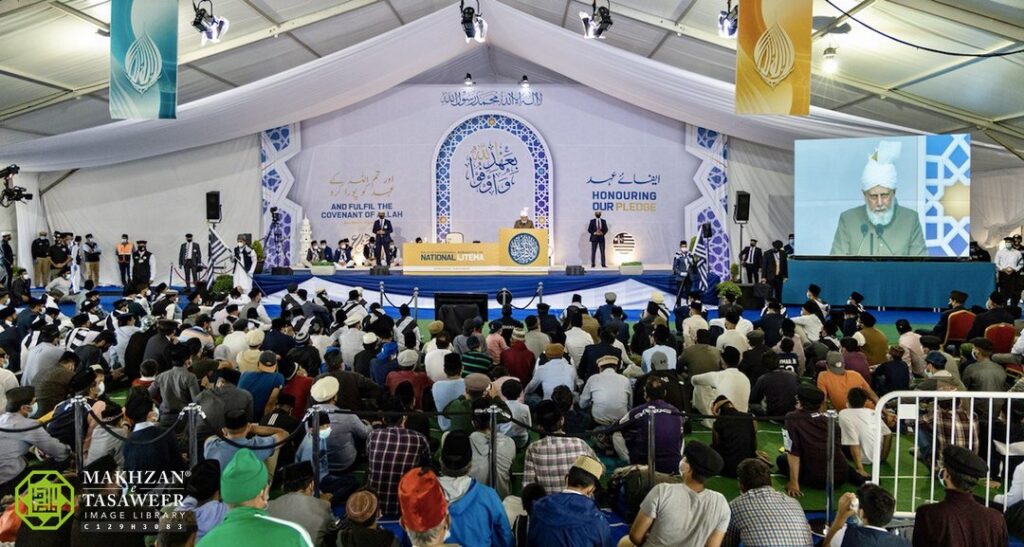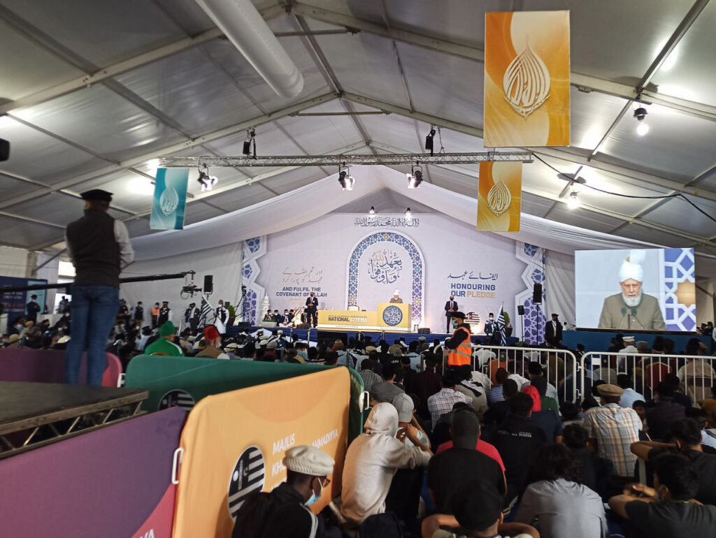 مجلس خدام الاحمدیہ برطانیہ کے سالانہ اجتماع سے حضور انور ایدہ اللہ تعالیٰ بنصرہ العزیزکا بصیرت افروز اختتامی خطاب Listen to 20220916-ijtema khuddam UK sy Huzoor e anwar ka Khitab... report byAl Fazl International on hearthis.at (اولڈ پارک فارم،کنگزلے،نمائندگان الفضل انٹرنیشنل)امیرالمومنین حضرت مرزا مسرور احمد خلیفۃ المسیح الخامس ایّدہ اللہ تعالیٰ الودود بنصرہ العزیز حدیقۃ المہدی سے قریباً دو میل دور Old Park Farm، واقع Sickles Lane, Kingsley میں منعقد ہونے والے مجلس خدام الاحمدیہ برطانیہ کے سالانہ اجتماع (منعقدہ 09 تا11؍ستمبر 2022ء) کے اختتامی اجلاس میں بنفسِ نفیس رونق افروز ہوئے اورانگریزی زبان میں بصیرت افروز اختتامی خطاب فرمایا۔ یہ خطاب ایم ٹی اے کے مواصلاتی رابطوں کے توسّط سے پوری دنیا میں سنا اور دیکھا گیا۔ یاد رہے کہ کورونا وائرس کی وبا کے باعث تین سال کے وقفہ کے بعد مجلس خدام الاحمدیہ برطانیہ کا سہ روزہ اجتماع باقاعدہ اور بھر پور طریق پر منعقد ہوا تاہم ملکہ معظمہ الزبتھ دوم کی وفات کی وجہ سے ورزشی مقابلہ جات امسال محدود پیمانے پر منعقد کیے گئے۔ حضور پُر نور چار بج کر 29 منٹ پر اجتماع گاہ میں تشریف لائے۔ نماز ظہر و عصر کے بعد پونے پانچ بجے والہانہ نعروں کی گونج میں حضورِ انور کرسیٔ صدارت پر رونق افروز ہوئے اور تمام حاضرین کو السلام علیکم ورحمۃ اللہ کا تحفہ عنایت فرمایا۔ اس کے بعد اختتامی اجلاس کی باقاعدہ کارروائی کا آغاز ہوا۔ تلاوت قرآن کریم کی سعادت مقابلہ تلاوت میں اوّل آنے والے مکرم راحیل احمد صاحب (مربی سلسلہ) کے حصے میں آئی جنہوں نے سورۃ النحل کی آیات 92 تا 93 کی تلاوت کی۔ ان آیات کا انگریزی ترجمہ مکرم تنزیل احمد صاحب نے پیش کیا۔ بعد ازاں تمام حاضرین نے اپنے امام حضرت امیرالمومنین ایّدہ اللہ تعالیٰ بنصرہ العزیز کی اقتدا میں خدام کا عہد دہرایا۔ عہد کے بعد مقابلہ نظم میں اوّل قرار پانے والے مکرم جاذب چیمہ صاحب نے حضرت اقدس مسیح موعود علیہ الصلوٰۃ و السلام کا منظوم کلام بعنوان ’’محاسن قرآن کریم‘‘ میں سے چند اشعارخوش الحانی سے پیش کیے جن کا آغاز حسب ذیل شعر سے ہوا جو خاک میں ملے اسے ملتا ہے آشنا اَے آزمانے والے! یہ نسخہ بھی آزما ان اشعار کا انگریزی ترجمہ مکرم عبد الغالب خان صاحب کو پیش کرنے کی سعادت حاصل ہوئی۔ بعد ازاں حضورِانور کی اجازت سے محترم عبدالقدوس عارف صاحب صدر مجلس خدام الاحمدیہ برطانیہ نے اجتماع کی رپورٹ پیش کی۔ رپورٹ اجتماع از صدر مجلس خدام الاحمدیہ برطانیہ مکرم صدر صاحب مجلس خدام الاحمدیہ برطانیہ نے اجتماع کی رپورٹ پیش کرتے ہوئے بتایا کہ امسال اجتماع کے لیے حضور انور کی طرف سے عطا کردہ مرکزی عنوان ’ایفائے عہد‘ تھا۔ امسال منعقد ہونے والے تمام مقامی اور ریجنل اجتماعات میں بھی اسی عنوان کو پیشِ نظر رکھا گیا۔ یہ محض اللہ تعالیٰ کا فضل اور حضورِانور کی دعاؤں اور راہنمائی کا نتیجہ ہے کہ ہمیں یہاں Kingsley میں نیشنل اجتماع منعقد کرنے کی توفیق ملی۔ امسال اجتماع کی تیاری کے لیے نوجوان پروفیشنلز کی ایک ٹیم بنائی گئی جنہوں نے اپنا بہت سا وقت دے کر اجتماع گاہ کی تیاری مکمل کی۔ خاکساراس موقع پر بطور خاص اس ٹیم کے علاوہ شعبہ ضیافت، یوکے جماعت، جلسہ سالانہ کی ٹیم اورایم ٹی اے کا شکریہ ادا کرنا چاہتا ہے جنہوں نے اجتماع کی تیاری کے سلسلے میں ہماری خصوصی معاونت کی۔ امسال کے اجتماع کی بعض جھلکیاں کچھ یوں ہیں: • مکہ مکرمہ اور مدینہ منورہ کا Virtual Reality Experience• اجتماع کے مرکزی عنوان ’ایفائے عہد‘ کے بارے میں نمائشیں• کتاب’مشعل راہ‘ کے متعلق نمائش• عزت مآب ملکہ معظّمہ الزبتھ دوم کی زندگی کے متعلق ایک نمائشاسی طرح علمی مقابلہ جات کے علاوہ شاملین کے لیے ایک تربیتی مارکی (HUB) لگائی گئی تھی جہاں مختلف ذہنی اور ورزشی سرگرمیاں کی جاسکتی تھیں۔ اسی طرح نو مبائعین خدام کے لیے الگ سے علمی مقابلہ جات کا انعقاد کیا گیا۔ نیز حضورِانور کے ارشاد کے مطابق 143 خدام کے لیے Academic excellence ایوارڈز کا انعقاد کیا گیا جو مکرم امیر صاحب نے تقسیم کیے۔ اسی طرح اطفال الاحمدیہ کے 