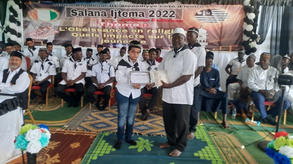 Listen to 20221028-national tarbiyati class wa ijtemah .... byAl Fazl International on hearthis.at محض اللہ تعالیٰ کے فضل و کرم سے مجلس خدام الاحمدیہ آئیوری کوسٹ کو کورونا وائرس وباء کے بعد پہلی مرتبہ نیشنل تربیتی کلاس نیز اجتماع خدام الاحمدیہ و اطفال الاحمدیہ 2022ء کے انعقاد کی توفیق ملی۔ سالانہ نیشنل تربیتی کلاس خدام الاحمدیہ امسال تربیتی کلاس کے لیے کم از کم معیار سیکنڈری امتحان رکھا گیا جس کے تحت ہر ریجن سے تین تین خدام و اطفال کی شرکت کے لیے اضلاع کو ٹارگٹ دیے گئے۔ مورخہ 20؍اگست تا یکم ستمبر 2022ء نیشنل تربیتی کلاس خدام الاحمدیہ کا باقاعدہ انعقاد کیا گیا۔ اس کلاس کے نگران کے طور پر مکرم صادق احمد صاحب مبلغ سلسلہ ابنگرو جبکہ اساتذہ میں مکرم عبدالسلام طورے صاحب مبلغ سلسلہ دلوا،مکرم وترا عبدالرحمان صاحب معلم سلسلہ نیز مکرم سماکے محمدصاحب معلم سلسلہ نے خدمات سر انجام دیں۔ اس تربیتی کلاس میں درج ذیل عناوین کے تحت شاملین کو لیکچرز دیے گئے: یسرنا القرآن، نماز، دجال، صداقت حضرت مسیح موعودؑ، نظام جماعت احمدیہ، فقہ حصہ نماز، حضرت محمدﷺبائبل سے، موازنہ مذاہب، وفات مسیح اور ختم نبوت۔ روزانہ کی بنیاد پر نماز تہجد و فجر کے بعد دروس کا اہتمام کیا جاتا رہا۔ جبکہ نماز عصر کے بعد کھیلوں کا انتظام بھی تھا۔ نماز مغرب و عشاء کے درمیان بھی دروس کا اہتمام کیا گیا۔ رات کھانے کے بعدسوال و جواب کے پروگرامز بھی تربیتی کلاس کا حصہ رہے۔ جبکہ مختلف عناوین کے تحت ویڈیوز بھی شامل نصاب رہیں مثلاً four days without shepherd، اختتامی خطاب جلسہ سالانہ جرمنی نیز دوران تربیتی کلاس آنے والے خطبات جمعہ۔ اسی طرح تربیتی کلاس کے نصاب سے شاملین سے امتحان بھی لیا گیا جس میں تمام عناوین کے تحت سوالات شامل کیے گئے نیز دکھائی گئی ویڈیوز کے سوالات بھی شامل امتحان تھے جبکہ تمام شاملین کا oral exam لینے کے ساتھ ساتھ انفرادی کارکردگی کے نمبرز بھی شامل امتحان کیے گئے۔ نیشنل اجتماع خدام الاحمدیہ پہلادن تربیتی کلاس کے انعقاد کے معاً بعد مورخہ 2 تا 4؍ستمبر 2022ء بروز جمعۃ المبارک تا اتوار سالانہ اجتماع خدام الاحمدیہ و اطفال الاحمدیہ کا انعقاد کیا گیا۔ جس کے لیے شاملین کی آمد کا سلسلہ ایک روز قبل مورخہ یکم ستمبر بروز جمعرات ہی شروع ہو گیا تھا۔ مختلف ریجنز کے قافلے مہدی آباد میں پہنچ گئے تھے۔ مکرم عبدالقیوم پاشا صاحب امیر ومشنری انچارج آئیور ی کوسٹ نے نیشنل صدر صاحب خدام الاحمدیہ مکرم کونے داؤد صاحب و دیگر ممالک کے وفود کے ہمراہ اجتماع کی تیاریوں کا جائزہ لیا۔ اجتماع کے دن کا باقاعدہ آغاز بروز جمعۃ المبارک صبح باجماعت نماز تہجد، فجر اور درس سے کیا گیا۔ ناشتہ کے فوراً بعد کھیلوں کے مقابلہ جات کا آغاز ہوا۔ مقامی وقت کے مطابق 12 بجے حضور انورایدہ اللہ تعالیٰ بنصرہ العزیز کا براہ راست خطبہ جمعہ تمام شاملین نے سنا جس کے بعد مقامی طور پر خطبہ جمعہ مکرم طورے عبدالسلام صاحب نے دیا اور نماز جمعہ وعصر کی ادائیگی ہوئی۔ نماز جمعہ کے بعد شاملین کو طعام پیش کیا گیا اور شام 4 بجے کے قریب اجتماع کے افتتاحی پروگرام کی باقاعدہ کارروائی کا آغاز ہوا۔ تلاوت قرآن کریم مع فرنچ ترجمہ اور نظم کے بعد مکرم صدر صاحب خدام الاحمدیہ کی صدارت میں تمام شاملین نے خدام الاحمدیہ کا عہد دہرایا جس کے بعد مکرم و امیر ومشنری انچارج صاحب آئیوری کوسٹ نے اجتماع کی افتتاحی تقریر کی۔ بعد ازاں دعا کے ساتھ اس بابرکت تقریب کا اختتام ہوا اور باقی مقابلہ جات کا سلسلہ رات طعام کے بعد تک جاری رہا۔ اجتماع کا دوسرا دن امن مارچ و نیشنل شوریٰ خدام الاحمدیہ دوسرے دن کا آغاز بھی باجماعت نماز تہجد و درس کے ساتھ ہوا۔ اس دن کی سب سے اہم بات خدام الاحمدیہ کی جانب سے منعقدہ مارچ تھا۔ جس کا آغاز صبح 10 بجے ہوا۔ یہ امن ریلی تقریباً آٹھ کلومیٹر پر محیط تھی جوکہ yopougou سے شروع ہو کر مہدی آباد پر اختتام پذیر ہوئی۔ اس کی سیکیوریٹی کے لیے مقامی پولیس بھی ہمراہ تھی جبکہ اجتماع میں شامل تمام خدام اس کا حصہ تھے۔ خدام نے لوائے خدام الاحمدیہ، قومی پرچم نیز مختلف بینرز اٹھ