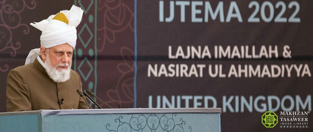 Listen to 20220927-ikhtatami khitab lajna immaillah uk byAl Fazl International on hearthis.at لجنہ اماء اللہ برطانیہ کے سالانہ اجتماع سےحضور انور ایدہ اللہ تعالیٰ بنصرہ العزیزکا بصیرت افروز اختتامی خطاب (اولڈ پارک فارم،کنگزلے،نمائندگان الفضل انٹرنیشنل)امیرالمومنین حضرت مرزا مسرور احمد خلیفۃ المسیح الخامس ایّدہ اللہ تعالیٰ الودود بنصرہ العزیز حدیقۃ المہدی سے قریباً دو میل دور Old Park Farm، واقع Sickles Lane, Kingsley میں منعقد ہونے والے لجنہ اماء اللہ برطانیہ کے سالانہ اجتماع (منعقدہ 16 تا18؍ستمبر 2022ء) کے اختتامی اجلاس میں بنفسِ نفیس رونق افروز ہوئے اورانگریزی زبان میں بصیرت افروز اختتامی خطاب فرمایا۔ یہ خطاب ایم ٹی اے کے مواصلاتی رابطوں کے توسّط سے پوری دنیا میں سنا اور دیکھا گیا۔ یاد رہے کہ لجنہ اماءاللہ کے اجتماع کے ساتھ ساتھ اسی جگہ پرمجلس انصار اللہ برطانیہ کا بھی سالانہ اجماع منعقد ہو رہا ہے جس کے اختتامی اجلاس سے حضور انور ایدہ اللہ تعالیٰ انشاء اللہ العزیزبعد دوپہر خطاب فرمائیں گے۔ حضور پُر نور بارہ بجکر 21 منٹ پر اجتماع گاہ میں تشریف لائے۔کرسیٔ صدارت پر رونق افروز ہونے کے بعد کارروائی کا باقاعدہ آغاز تلاوت قرآن کریم سے ہوا۔ محترمہ نورعودہ صاحبہ نے سورۃ الجمعۃ کی پہلی پانچ آیاتِ کریمہ کی تلاوت اوران کا انگریزی زبان میں ترجمہ پیش کیا۔ بعد ازاں تمام حاضرات نے اپنے امام حضرت امیرالمومنین ایّدہ اللہ تعالیٰ بنصرہ العزیز کی اقتدا میں لجنہ اماءاللہ کا عہد دہرایا۔ عہد کے بعد محترمہ شازیہ تنویر صاحبہ نےحضرت اقدس مسیح موعود علیہ الصلوٰۃ و السلام کے منظوم کلام بعنوان ’’محاسنِ قرآن کریم‘‘ میں سے بعض اشعار خوش الحانی سے پیش کیے۔ بعد ازاں ڈاکٹر فریحہ خان صاحبہ صدر لجنہ اماء اللہ برطانیہ نے اجتماع کی رپورٹ پیش کی۔ رپورٹ اجتماع از صدرلجنہ اماء اللہ یوکے مکرمہ صدر صاحبہ لجنہ اماء اللہ یوکے نے سب سے پہلے حضورِانور کا تہِ دل سے شکریہ ادا کیا کہ حضور نے لجنہ اماء اللہ برطانیہ پر خاص شفقت فرماکر ان کے اجتماع کو رونق بخشی۔ اس کے بعد بتایا کہ 2019ء کے بعد ہمیں پہلی مرتبہ مکمل انتظامات کے ساتھ اجتماع منعقد کرنے کی توفیق مل رہی ہے جس کے لیے ہم خدا تعالیٰ کا شکر ادا کرتے ہیں۔ امسال کے اجتماع کا مرکزی تھیم ’مسیح آگیا ہے‘ تھا اور یہی موضوع اجتماع کے تمام پروگرامز میں مدِنظر رکھا گیا۔ اس تھیم سے متعلقہ عناوین پرمتعدد تقاریراور پریزنٹیشنز رکھی گئیں جن میں درج ذیل شامل ہیں: صداقت حضرت مسیح موعودؑ، سیرت و سوانح حضرت مسیح موعودؑ، حضرت مسیح موعود علیہ السلام کا عشق رسولﷺ اور بنی نوع انسان سے محبت اور آپؑ کے ذریعہ مسلم امہ میں وحدت اور دنیا میں امن کا قیام۔ ہماری نمائشوں کے موضوعات اس مرتبہ اس زمانے میں ظاہر ہونے والے نشانات: زلزلے، سورج اور چاند گرہن، اور طاعون کے مطابق رکھے گئے۔ اسی طرح شعبہ تبلیغ نےعزت مآب ملکہ الزبتھ دوم مرحومہ کی زندگی کے بارے میں نمائش لگائی۔ علمی مقابلہ جات کا انعقاد لجنہ اماء اللہ اور ناصرات الاحمدیہ دونوں کے لیے بیک وقت ہوا۔ اسی طرح ناصرات کے لیے متعدد علمی و دیگر indoor سرگرمیوں کا انتظام کیا گیا تھا۔ جبکہ outdoor ورزشی مقابلہ جات کو ملکہ کی وفات کی وجہ سے منسوخ کردیا گیا۔ حضورِانور کے ارشاد کے مطابق امسال اجتماع پر تعلیمی میدان میں اعلیٰ کامیابی حاصل کرنے والی ممبرات کوایوارڈز تقسیم کیے گئے جن کے ناموں کا اعلان اس سے قبل جلسہ سالانہ یوکے 2022ء پر ہوگیا تھا۔ اسی طرح ان مجالس کو بھی انعامات دیے گئے جنہوں نے سال بھر اعلیٰ کارکردگی پیش کی۔ امسال سرفہرست رہنے والی مجالس ومبلڈن ساؤتھ، فارنہم، والسال اور کنگسٹن تھیں۔ اللہ تعالیٰ کے فضل سے امسال اجتماع پر کل حاضری 5725 رہی۔ خاکسار اس موقع پر اجتماع کی ناظمہ اعلیٰ مکرمہ نادیہ سہیل صاحبہ اور ڈیوٹی پر موجود تمام ممبرات لجنہ اماء اللہ کا شکریہ ادا کرنا چاہتی ہے۔ نیز مجلس خدام الاحمدیہ، مجلس انصار اللہ اور جماعت احمدیہ یوکے کی ٹیموں کے تعاون اور مدد پر بھی ان کی شکر گزار ہے۔ آخر میں ایک مرتبہ پ