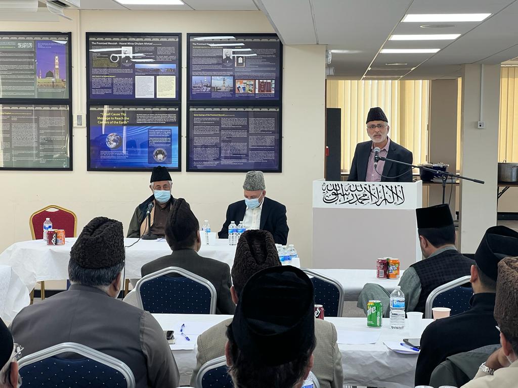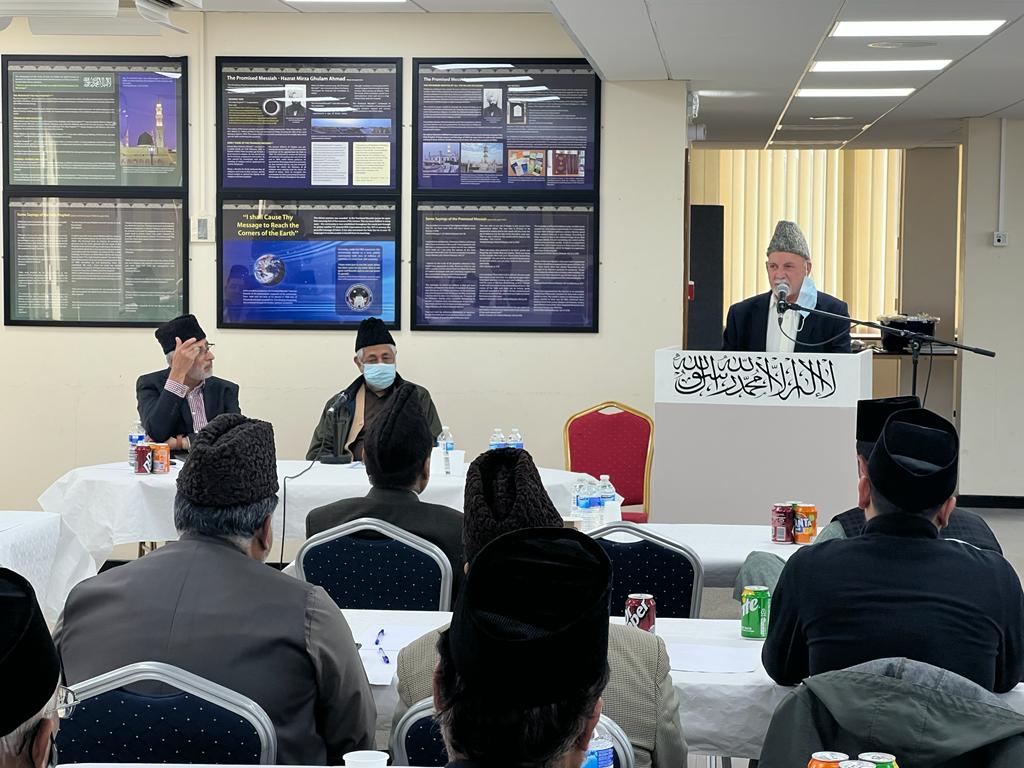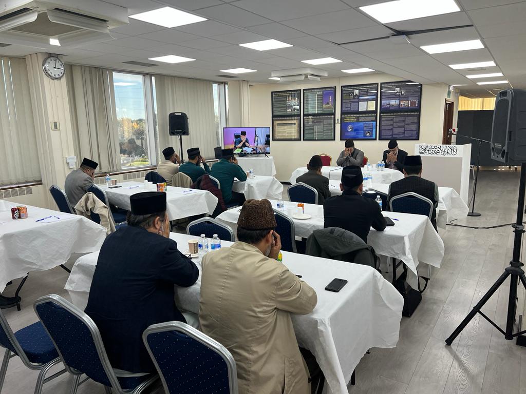 مورخہ 9؍اکتوبر 2022ء بروز اتوار کو بیت الاحسان (مچم) لندن میں دارالقضاء یوکے کے زیرِاہتمام قاضیانِ سلسلہ نیز نمائندگان دارالقضاء کا ریفریشر کورس منعقد کیا گیا۔ ریفریشر کورس کا باقاعدہ آغاز محترم ڈاکٹر حامد اللہ خان صاحب کی زیرِ صدارت ساڑھے دس بجے کے کچھ بعد تلاوتِ قرآنِ کریم سے ہوا جو حافظ محمد ظفراللہ صاحب (قاضی سلسلہ) نے کی۔ آپ نے سورة ص کی آیات ۳۲ تا ۳۵ کی تلاوت اور ان کا اردو ترجمہ از تفسیرِ صغیر پیش کیا۔ بعد ازاں محترم صدر صاحب مجلس نے منبر پر تشریف لا کر سب شاملینِ ریفریشر کورس کا شکریہ ادا کیا اور پھر محترم ڈاکٹر زاہد خان صاحب (صدر قضا بورڈ یوکے)کو زیرِ عنوان ’’قضائی کارروائی اور قاضیان کی ذمہ داریاں‘‘ ہدایات دینے کی دعوت دی۔ آپ نے قاضی سلسلہ کی ذمہ داریاں اور معاملات سننے کا طریق کے عنوان پر سیر حاصل گفتگو کی۔ قریباً پونے گھنٹے تک جاری رہنے والے اس سیشن میں آپ نے سب سے پہلے شرکائے ریفریشر کورس کا شکریہ ادا کیا۔ پاورپوائنٹ پر تیار کردہ ایک پریزینٹیشن پیش کرتے ہوئے محترم موصوف نے دارالقضاء یوکے کا تعارف پیش کیا۔ پھر حضورِ انور کے ارشادات کی روشنی میں دارالقضاء کی ذمہ داریوں کی طرف توجہ دلائی۔ آپ نے واضح کیا کہ یہ معمولی ذمہ داری نہیں ہے۔ عائلی معاملات میں فریقین نفسیاتی طور پر جس تناؤ سے گزر رہے ہوتے ہیں قاضی کو اسے بھی مدِنظر رکھنا چاہیے۔آپ نے حضرت مصلح موعودؓ کا ارشاد پیش کیا کہ قاضی کو فریقین کے ساتھ اپنے بچوں کی طرح پیش آنا چاہیے۔آپ نے دارالقضاء میں معاملے کو سننے کی تیاری کے مراحل کی بابت بھی راہنمائی فرمائی۔ بعد ازاں سلمان قمر صاحب ناظم دارالقضاء نے ’’فائل کی تکمیل اور عمومی راہنمائی‘‘ کے عنوان کے تابع ہدایات پیش کیں نیز شرکائے ریفریشر کورس کی جانب سے اٹھائے جانے والے بعض سوالات کے جوابات دیے۔ اس کے بعد محترم ہبۃ الرحمٰن صاحب (قاضی سلسلہ) نے سماعت کے طریقہ کار کو عملی طور پر پیش کیا۔ اس منفرد پریزینٹیشن میں ایک فرضی سماعت کا انعقاد کیا گیا تھا جس میں فرضی مدعی اور مدعا علیہ بھی موجود تھے۔ ساڑھے بارہ بجے کے قریب مختصر دورانیے کا وقفہ کیا گیا۔ وقفہ کے بعد محترم رشید احمد زاہد صاحب (سابق ناظم دارالقضاء) کے اعزاز میں الوداعی تقریب کا انعقاد ہوا۔ نمازِ ظہر سے قبل شرکائے ریفریشر کورس نیز مہمانانِ گرامی کی خدمت میں پُرتکلف ظہرانہ پیش کیا گیا۔ بعد ازاں نمازِ ظہر کا وقفہ ہوا۔ اختتامی سیشن نمازِ ظہر کے کچھ دیر بعد ریفریشر کورس کا اختتامی سیشن منعقد ہوا۔ اس سیشن میں محترم حافظ راشد جاوید صاحب ناظم دارالقضاء ربوہ نے ’’خلع کے معاملات میں حق مہر دلوانے کے بارہ میں خلفائے سلسلہ کی راہنمائی‘‘ کے عنوان پر آن لائن خطاب فرمایا۔ آپ نے انتہائی خوبصورت انداز میں خلفائے سلسلہ کی جانب سے پیش کردہ ارشادات کی روشنی میں شاملانِ ریفریشر کورس کے سامنے اس مسئلے کی وضاحت فرمائی۔ خطاب سےقبل محترم عبدالحفیظ شاہد صاحب (قاضی سلسلہ و ایڈیشنل وکیل الاشاعت برائے ترسیل) نے بطور صدرِ مجلس محترم ناظم صاحب دارالقضاء ربوہ کا تعارف کرواکے انہیں دعوتِ خطاب دیا۔جبکہ تقریب کے اختتام پر محترم صدر صاحب قضا بورڈ یوکے نے محترم حافظ صاحب کا شکریہ ادا کیا۔ دعا کے ساتھ تقریب باقاعدہ اختتام پذیر ہوئی جو محترم ناظم صاحب دارالقضاء ربوہ نے کروائی۔ الوداعی تقریب محترم رشید احمد زاہد صاحب سابق ناظم دارالقضاء یوکے دوپہر ایک بجے کے قریب دارالقضاء یوکے میں مختلف حیثیتوں سے خدمات بجا لانے والے محترم رشید احمد زاہد صاحب (سابق ناظم دارالقضاء یوکے) کی الوداعی تقریب کا انعقاد ہوا۔ محترم سید منصور شاہ صاحب (نائب امیر جماعت احمدیہ برطانیہ) کی صدارت منعقد ہونے والی اس تقریب کا آغاز تلاوتِ کلامِ پاک سے ہوا جو محترم راحیل احمد صاحب مربی سلسلہ شعبہ تاریخ (یوکے) نے کی۔ بعد ازاں محترم ڈاکٹر زاہد خان صاحب نے اسٹیج پر تشریف لا کر دارالقضاء یوکے میں محترم رشید احمد زاہد صاحب کی خدمات کو خراجِ تحسین پیش کیا۔ آپ نے کہا کہ رشید زاہد صاحب گذ
