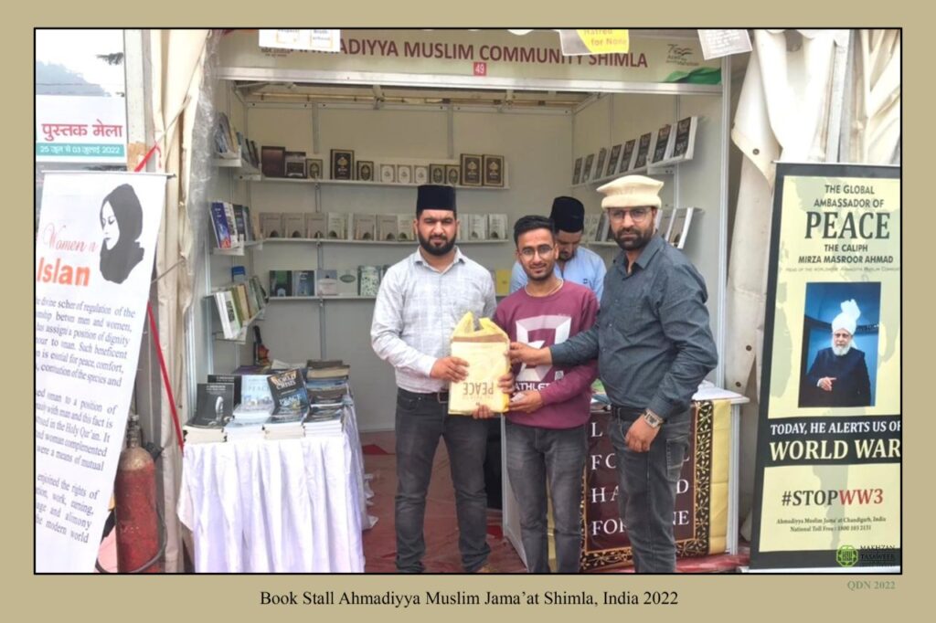 Listen to 20221021-book fair shimla bharat mn ...ahmadiya ki shirkat byAl Fazl International on hearthis.at مورخہ 24؍جون تا 3؍جولائی 2022ء بھارت کے صوبہ ہماچل پردیش کے معروف شہر شملہؔ میں نیشنل بُک ٹرسٹ کی جانب سے بُک فیئر کا انعقاد کیا گیا جس میں جماعت احمدیہ شملہ کو بھی اپنا سٹال لگا کر شرکت کرنے کا موقع ملا۔ جماعتی بُک سٹال میں قرآن مجید کے مختلف تراجم کے نسخے اور جماعتی لٹریچر دستیاب تھے۔ اسی طرح قیام امن کے حوالہ سے حضور انور ایدہ اللہ تعالیٰ بنصرہ العزیز کے مختلف ارشادات پر مشتمل خوبصورت بینرز آویزاں کیے گئے تھے جو زائرین کی توجہ کا مرکز بنے رہے۔ جناب گورنر صاحب ہماچل پردیش نے بھی جماعتی بُک سٹال کا وزٹ کیا اور جماعتی بُک سٹال کو دیکھ کر خوشی کا اظہار کیا۔ موصوف کو کتاب ’عالمی بحران اور امن کی راہ‘ تحفۃً دی گئی۔ موصوف نے شملہ میں جماعتی خدمات کو سراہا۔ جماعتی بُک سٹال میں مختلف طبقوں سے تعلق رکھنے والے لوگ تشریف لائے جن میں مذہبی، سماجی، سیاسی و سرکاری اہم شخصیات، سکول و کالجز کے طلباء بھی شامل ہیں۔ جماعتی سٹال میں آنے والے زائرین جو اسلامی تعلیمات سے خصوصی دلچسپی رکھتے تھے ان کو ان کے مزاج کے مطابق فری جماعتی لٹریچر بھی تحفۃً دیے گئے جن میں قرآن مجید، لائف آف محمدﷺ، عالمی بحران اور امن کی راہ، اسلام کا اقتصادی نظام وغیرہ کتب شامل تھیں۔ اس بُک فیئر کے موقع پر اسلام کی امن بخش تعلیمات اور قیام امن عالم کے حوالہ سے حضور انور ایدہ اللہ تعالیٰ بنصرہ العزیز کے مختلف روح پرور خطابات اور ارشادات پر مشتمل سات ہزار سے زائد لیف لیٹس تقسیم کیے گئے۔ کتاب ’عالمی بحران اور امن کی راہ‘ تین صد سے زائد تعداد میں معزز زائرین کے درمیان تقسیم کی گئی۔ جماعتی بُک سٹال کا بیس ہزار سے زائد لوگوں نے وزٹ کیا اور اسلام و احمدیت کے متعلق تعارف حاصل کیا اور اسلام کے متعلق مختلف غلط فہمیوں کے متعلق سوالات کیے اور جماعتی نمائندگان نے ان کے استفسارات کے تسلی بخش جوابات پیش کیے۔ اللہ تعالیٰ سے دعا ہے کہ اس بُک سٹال کے ذریعہ سے کی گئی تبلیغی مساعی میں بے انتہاء برکت عطا کرے اور اس کے نیک و دور رس نتائج ظاہر فرمائے۔ آمین (رپورٹ: شعبہ پریس اینڈ میڈیا۔ بھارت)
