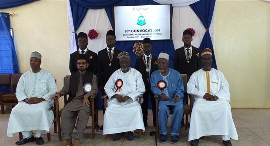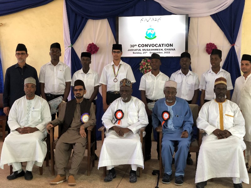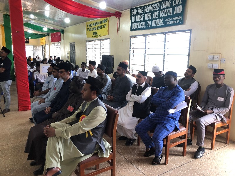 Listen to 20221028-ghana jamiatul mubashirin taqsim asnad.mp3 byAl Fazl International on hearthis.at جامعتہ المبشرین گھانا کا آغاز 1966ء میں ہوا تھا۔ اس کا مقصد لوکل مبلغین تیار کرنا تھا۔ خد تعالیٰ کے فضل سے آج تک 687 طلباء یہاں سے فارغ ہو کر میدان عمل میں خدمت کی توفیق پا رہے ہیں۔ الحمد للہ محض اللہ تعالیٰ کے فضل و کرم سے جامعۃ المبشرین گھانا کو مورخہ 25؍ستمبر 2022ء بروز اتوار اپنے تیسویں سالانہ تقریب تقسیم اسناد کے انعقاد کی توفیق ملی۔ الحمد للہ علیٰ ذالک امسال یہ تقریب محدود پیمانے پر منعقد کی گئی۔ جامعہ کے اساتذہ، طلباء اور کارکنان، پاس ہونے والے طلباء کےوالدین کے علاوہ کچھ چنیدہ مہمان اس پروگرام میں شامل ہوئے۔ اس پروگرام کے لیے سترہ ممالک کے جھنڈے مع لوائے احمدیت لہرائے گئے تھے۔ یہ پروگرام جامعہ کے ہال میں منعقد کیا گیاجس کے لیے ہا ل کو بینرز سے خاص طور پر سجایا گیا تھا۔ اس تقریب کے مہمان خصوصی مکرم نور محمد بن صالح صاحب امیر و مشنری انچارج گھانا تھے۔ تقریب کے آغاز سے قبل مکرم امیر صاحب نے لوائے احمدیت جبکہ مکرم الحاج محمد یوسف یاؤسن صاحب نائب امیر اول نے گھانا کا جھنڈا لہرایا۔ پرچم کشائی کے بعد امیر صاحب نے جامعۃ المبشرین کے نئے دو منزلہ کچن کا افتتاح کیا۔ نو تعمیر شدہ دو منزلہ کچن کا افتتاح اس دو منزلہ کچن کی تعمیر کا آغاز لجنہ اماءاللہ گریڑ اکرا ریجن نے اپنے خرچ پر 2010ء میں کیا تھا۔ جیسے جیسے لجنہ اماء اللہ کے پا س رقم جمع ہوتی جاتی تعمیر کا کام بھی جاری ہو جاتا۔ جب تعمیر چھتوں تک پہنچی تو لجنہ اماءاللہ نے اپنا یہ پروجیکٹ وسیع کرتے ہوئے پہلی منزل پر طلباء کے لیے ڈائننگ ہال کو سرونگ روم اور واش رومز کی سہولت کے ساتھ تعمیر کرنے کا عہد کیا۔ جب پہلی منزل چھت تک پہنچی تو کام کافی لمبا عرصہ کے لیے رک گیا۔ بعد ازاں ضرورت کے پیش نظر حضور اقدس ایدہ اللہ کی خاص شفقت سے 2020ء میں اس کی تعمیر کا کام مرکزی فنڈز سے شروع ہو ا اور جون 2022ء میں مکمل ہوا۔ اس طرح کچن کے گرد بارش کے پانی کے لیے گٹرز کی تعمیر کا آغاز کر کے ماہ ستمبر 2022ء میں مکمل کرکے باقاعدہ 25؍ستمبر2022ء کو مکرم امیر و مشنری انچارج جماعت احمدیہ گھانا کے ہاتھ سےاس کا باقاعدہ افتتاح کروایا گیا۔ اس موقع پر الحاج محمد یوسف یاؤسن صاحب نائب امیر اول جو کہ چئیر مین بورڈ آف گورنرز بھی ہیں، مکرم الحاج احمدسلیمان اینڈرسن صاحب نائب امیر سوم، جنرل مینیجر احمدیہ سکولز جو کہ بورڈ آف گورنرز کے سیکریٹری بھی ہیں، گھانا جماعت کے جنرل سیکریڑی، سینٹرل ریجنل مشنری، ذونل مشنری، صدر لجنہ اماء اللہ گریڑ اکرا و دیگر مہمانان نے بھی موجود تھے۔ فجزاہم اللہ خیرا اس کچن کی تعمیر کی نگرانی Mr. Koffi Abbas آرٹیٹیکٹ گھانا نے کی۔ جامعہ کی طرف سے مکرم طاہر احمد ظفر صاحب استاذ جامعہ نے ان سارے مراحل میں ان کی بےحد مدد کی۔ افتتاح کے موقع پر مکرم کوفی عباس صاحب موجود نہ تھے۔ مکرم طاہر احمد ظفر صاحب نے مکرم امیر صاحب اور دیگر مہمانان کرام کو کچن کا تعارف کروایا۔ کچن کے نچلے حصہ میں کھانا پکانے اور برتن دھونے کے لیے الگ الگ جگہیں ہیں۔ یہاں چند کمرے ہیں جن کو سٹورز کے طور پر استعما ل کیا جا رہا ہے۔ ہفتہ وار شاپنگ اور ماہانہ شاپنگ کی تمام اشیاء ان سٹورز میں رکھی جاتی ہیں۔ ایک سٹور میں دو ماہ کےلئے لیے خورد ونوش کا سٹاک رکھا جاتا ہے۔ کچن کی اوپر والی منزل پر Serving room اور وسیع و عریض ڈائننگ ہا ل موجود ہے۔ مکرم امیر صاحب اور جملہ مہمانوں کو کچن کی ان سب جگہوں پر لے جاکر تعارف کروایا گیا۔ اس موقع پر کچن کی میٹرن نے ایک کیک تیار کیا جو مکرم امیرصاحب اور شاملین افتتاح میں تقسیم کیا گیا۔ نو تعمیر شدہ کچن کے افتتاح کے بعد تقریب تقسیم اسناد کی تقریب کا آغاز ہوا۔ تقریب تقسیم اسناد کی تقریب تقریب تقسیم اسناد کی تقریب کا باقاعدہ آغاز تلاوت قرآن کریم سے ہوا جو کہ عزیزم حمید تقی نے کی ان کا تعلق مڈگاسکر سے ہے۔ اور پھر گھاناسے تعلق رکھنے والے طالب علم عزیزم یوسف اوسئی نورالدین نے ترنم کے ساتھ حضرت مسیح موعود علیہ السلام کا اردو کلام ہے شکر رب عز و جل خارج از بیا