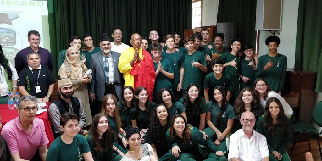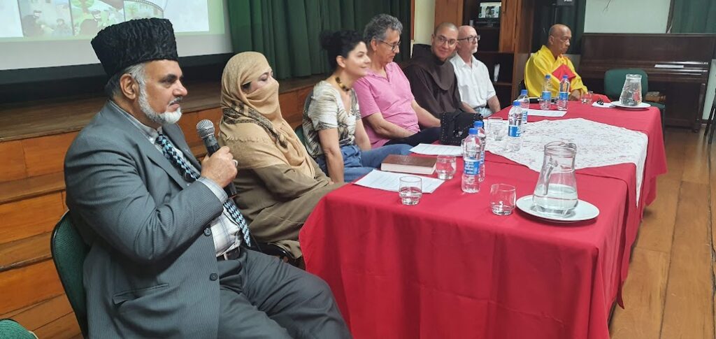 اللہ تعالیٰ کے فضل سے جماعت احمدیہ برازیل اپنے ماٹو ’’محبت سب کے لیے نفرت کسی سے نہیں‘‘ پر عمل پیرا ہوتے ہوئے دیگر مذاہب کے ساتھ دوستانہ روابط اور مذہبی رواداری میں پیش پیش ہے۔ مشن ہائوس میں بھی ایسے جلسے منعقد کیے جاتے ہیں جن میں بلا تفریق سب مذاہب کو دعوت دی جاتی ہے اور جب کہیں بھی بین المذاہب تقاریب میں بلایا جاتا ہے تو جماعت احمدیہ اسلام کی نمائندگی میں ان میں بھی شرکت کرتی ہے اور اسلام کی خوبصورت تعلیم بیان کرنے کے علاوہ حضرت اقدس مسیح موعود علیہ السلام کی آمد کا بھی اعلان کرتی ہے۔ اس کے نتیجہ میں جہاں باہمی تعلقات وسیع ہورہے ہیں وہاں لوگوں کو اسلام سے متعلق جو تحفظات ہیں ان کا ازالہ بھی ہو رہا ہے۔ ایسی ہی ایک تقریب مورخہ 21؍اکتوبر بروز جمعہ شہر پیٹروپولس (برازیل) کے ایک معروف کالج (Bom Jesus Ipiranga) میں منعقد ہوئی۔ چنانچہ اسلام کی نمائندگی میں جماعت احمدیہ کو شمولیت کی دعوت دی گئی۔ خاکسار (مبلغ انچارج) سفر کی وجہ سے کچھ تاخیر سے پہنچا اس سے قبل مکرمہ انیلہ ظفر صاحبہ صدر لجنہ اماء اللہ برازیل اور مکرم اعجاز احمد ظفر صاحب نے جماعت کی نمائندگی کی۔ انتظامیہ نے ہم سب کوباقی نمائندگان کے ساتھ سٹیج پر بٹھایا اور بہت شاندار الفاظ میں ہمارا ذکر کرتے ہوئے تعارف کروایا۔ دیگر مذاہب میں یہودیت، عیسائیت، روحانیت، بدھ مت اور بعض اور فرقوں کے نمائندگان نے شرکت کی۔ ہماری باری آنے پر پہلے مکرمہ صدر صاحبہ لجنہ اماء اللہ نے سورۃ الفاتحہ کی تلاوت کی اور اس کا پرتگیزی میں ترجمہ بھی پیش کیا۔ نیز بتایا کہ ہمارے نزدیک جس مسیح موعود کا سب انتظار کر رہے ہیں وہ آچکے ہیں جو جماعت احمدیہ کے بانی حضرت مرزا غلام احمد علیہ السلام ہیں۔ اس موقع پر حضرت اقدس مسیح موعود علیہ السلام کی تصویرا یک بڑے بینر پر بھی دکھائی گئی۔ مکرم اعجاز احمد ظفر صاحب نے طلباء کو بتایا کہ اسلام سائنسی حقائق کو ساتھ لے کر چلتا ہے اور دلائل سے اپنی سچائی ثابت کرتا ہے۔ خاکسار نے اس تقریب میں شمولیت کے بعد اسلام کے متعلق بتایا کہ یہ امن اور محبت کا مذہب ہے جس کا جنگوں اور دہشت گردی سے دور کا بھی تعلق نہیں۔ اساتذہ اور طلباء نے بعض سوالات بھی کیے جن کے انہیں جوابات دیے گئے۔ پروگرام کے آخر میں انتظامیہ کی خواہش پر مکرم اعجاز احمد ظفر صاحب نے دوبارہ قرآن کریم کی سورۃ الحشر کی بعض آیات کی تلاوت کی جن میں خدا تعالیٰ کی صفات کا ذکر ہے اور اس کا ترجمہ بھی پڑھ کر سنایا جسے سب نے بہت پسند کیا۔ اللہ تعالیٰ کے فضل سے پروگرام بہت اچھا ہوا اور اس کے نتیجہ میں کئی نئے روابط بھی قائم ہوئے۔ خاکسار نے انتظامیہ اور سب شرکاء کو مسجد کا وزٹ کرنے کی بھی دعوت دی اور بتایا کہ ہماری مسجدکے دروازے ہر ایک کے لیے کھلے ہیں جس پر کالج کے ڈائیریکٹر۔ اساتذہ اور طلباء نے خوشی کا اظہار کیا اور جلد پروگرام بنا کر مسجد کا وزٹ کرنے کا عندیہ دیا۔ یاد رہے کہ جماعت احمدیہ کی مسجد بیت الاول آفیشل طور پرشہر پیٹروپولس کے ٹورزم میں شامل ہے جس کی وجہ سے بھی گاہے بگاہے ویزٹرز آتے رہتے ہیں۔ دعا ہے کہ اللہ تعالیٰ ہمارے پروگراموں میں برکت ڈالے جماعت کا پیغام احسن طور پر پہنچانے کی تو فیق دے اور لوگوں کے دل ا سلام کی طرف مائل ہونا شروع ہوں۔ آمین