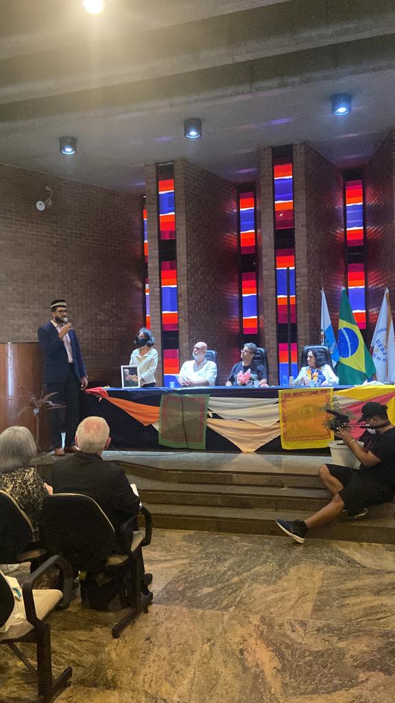 Listen to 20221115-brazil university conference byAl Fazl International on hearthis.at اللہ تعالیٰ کے فضل سے جماعت احمدیہ برازیل کو پہلی مرتبہ مورخہ 18؍اکتوبر بروز منگل URI یعنی United Religions Initiative کی طرف سے Rio de Janeiro میں قائم کردہ ایک کانفرنس میں شرکت کرنے کی توفیق ملی۔ یہ ایک عالمی سطح پر بین المذاہب تنظیم ہے جو کہ مذہبی اور ثقافتی اختلافات کو ختم کرنے اور امن اور انصاف کو فروغ دینے کے لیے دنیا کے مختلف ممالک میں کام کرتی ہے۔ اس کانفرنس میں شامل ہونے کے لیے مختلف ممالک کے مذہبی لیڈران تشریف لائے تھے۔ اس کا انعقاد Rio de Janeiro سٹیٹ کی ایک بڑی یونیورسٹی UERJمیں کیا گیاتھا۔ اس میں مختلف مذاہب کے لیڈران کو اظہار خیال کرنے کا موقع دیا گیا۔ اس ضمن میں خاکسار (مبلغ سلسلہ) کو بھی اسلام کی نمائندگی میں مدعو کیا گیا تھا۔ چنانچہ خاکسار نے اسلام کی خوبصورت تعلیمات بیان کیں۔ نیز علم حاصل کرنے اور تعلیم کے ذریعے جہالت کو ختم کرنے کے متعلق بعض اسلامی تعلیمات پیش کیں۔ نیز بتایا کہ کس طرح اسلام نے آج سے چودہ سو سال قبل معاشرہ میں اور امن اور رواداری قائم کرنے کے لیے کامل تعلیم دنیا کو دی۔ جس پر عمل کر کے ہم دنیا کو تباہی اور بد امنی کے گھڑے سے بچا سکتے ہیں۔ اس موقع پر دوسرے مذاہب کے لیڈران سے بھی ملنے کا موقع ملا اور ان کے سامنے بھی اسلام اور حضرت مسیح موعود علیہ السلام کی تعلیمات پیش کرنے کی توفیق ملی۔ اللہ تعالیٰ ان مساعی کے بہترین نتائج ظاہر فرمائے۔آمین