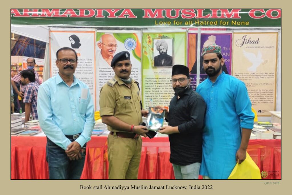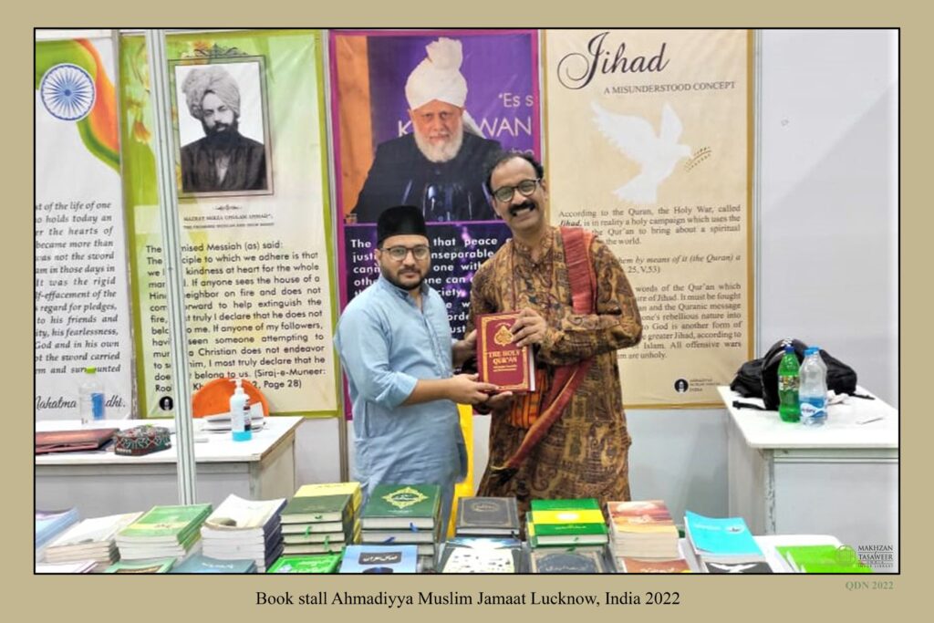 Listen to 20221118-book fair lakhnao india byAl Fazl International on hearthis.at مورخہ 23؍ستمبر تا 2؍اکتوبر 2022ء بھارت کے صوبہ اُتّر پردیش کے دارالحکومت لکھنؤ شہر میں نیشنل بُک ٹرسٹ آف انڈیا کی جانب سے بُک فیئر کا انعقاد کیا گیا جس میں جماعت احمدیہ لکھنؤ کو بھی اپنا سٹال لگا کر شرکت کرنے کا موقع ملا۔ جماعتی بُک سٹال میں قرآن مجید کے مختلف تراجم کے نسخے اور جماعتی لٹریچر Display میں رکھے گئے۔ اسی طرح قیام امن کے حوالہ سے حضور انور ایدہ اللہ تعالیٰ بنصرہ العزیز کے مختلف ارشادات پر مشتمل خوبصورت بینرز بھی آویزاں کیے گئے جو زائرین کی توجہ کا مرکز بنے رہے۔ جناب نائب وزیر اعلیٰ صاحب یوپی نے بھی جماعتی بُک سٹال کا وزٹ کیا اور جماعتی بُک سٹال کو دیکھ کر خوشی کا اظہار کیا۔ موصوف کو کتاب ’’عالمی بحران اور امن کی راہ‘‘ تحفۃً دی گئی۔ موصوف نے لکھنؤ میں جماعتی خدمات کو سراہا۔ جماعتی بُک سٹال میں مختلف طبقوں سے تعلق رکھنے والے لوگ تشریف لائے جن میں مذہبی، سماجی، سیاسی و سرکاری اہم شخصیات، سکول و کالجز کے طلباء بھی شامل ہیں۔ جماعتی سٹال میں آنے والے زائرین جو اسلامی تعلیمات سے خصوصی دلچسپی رکھتے ہیں ان کو ان کے مزاج کے مطابق جماعتی لٹریچر بھی تحفۃً دیا گیا جس میں قرآن مجید، لائف آف محمدﷺ، عالمی بحران اور امن کی راہ، اسلام کا اقتصادی نظام وغیرہ کتب شامل تھیں۔ اس بُک فیئر کے موقع پر اسلام کی امن بخش تعلیمات اور قیام امن عالم کے حوالہ سے حضور انور ایدہ اللہ تعالیٰ بنصرہ العزیز کے مختلف روح پرور خطابات اور ارشادات پر مشتمل ساڑھے تین ہزار سے زائد لیف لیٹس تقسیم کیے گئے۔ کتاب ’’عالمی بحران اور امن کی راہ‘‘ بھی وسیع پیمانے میں معزز زائرین کے درمیان تقسیم کی گئی۔ جماعتی بُک سٹال کا ساڑھے سات سو سے زائد لوگوں نے وزٹ کیا اور اسلام و احمدیت کے متعلق تعارف حاصل کیا اور اسلام کے متعلق مختلف سوالات کیے اور جماعتی نمائندگان نے ان کے استفسارات کےتسلی بخش جوابات پیش کیے اور ان کی غلط فہمیوں کا ازالہ کیا۔ اللہ تعالیٰ سے دعا ہے کہ اس بُک سٹال کے ذریعہ سے کی گئی تبلیغی مساعی میں بے انتہاء برکت عطا کرے اور اس کے نیک و دور رس نتائج ظاہر فرمائے۔ آمین (رپورٹ: شعبہ پریس اینڈ میڈیا بھارت)