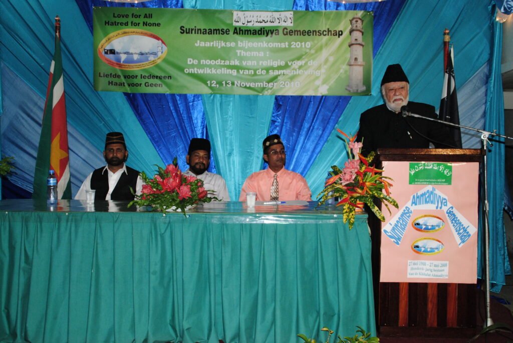 https://youtu.be/XN-dtcCNoWU محترم مولانا مبارک احمد نذیرایک عالم باعمل، مرد مجاہد،قلندر صفت انسان، بہترین مقرر، بے نفس بے ریا، حمد اور شکر گذاری سے مغلوب وجود جہان فانی سے کوچ کر گئے۔ دنیا بھی اِک سرا ہے بچھڑے گا جو ملا ہے گر سو برس رہا ہے، آخر کو پھر جدا ہے خاکسار ان خوش نصیبوں میں سے ہے جنہیں کچھ وقت محترم مولانا مبارک احمد نذیر صاحب کے ساتھ گذارنے کا موقعہ ملااور سرینام ان خوش نصیب ممالک میں شامل ہے جہاں آپ نے خلفاء کی ہدایت کے تحت دورے کیے۔ مکرم و محترم مولانا مبارک احمد نذیرصاحب پہلی مرتبہ دسمبر 1990ء میں چند دن کے لیے سرینام تشریف لائے۔اُس وقت محترم مولانا حسن بصری صاحب یہاں مرکزی مبلغ کے طور پر خدمات میں مصروف تھے۔ اس سفر کےدوران آپ نے کچھ جماعتی پرو گرامز میں بھی شرکت کی۔ جماعتی وفد کے ہمراہ وزیرداخلہ مسڑ ولم شیخ کریم (Mr. Wilam Sheikh Karem) صاحب سے ملاقات کی، انہیں جماعت کا تفصیلی تعارف کروایا اور قرآن مجید اور دیگر جماعتی کتب پیش کیں۔ ملک کے معروف صحافی مسٹر نیکو واخ میسٹر(Mr. Nico Waagmeester) نے مشن ہاؤس آکر محترم مولانا صاحب سے طویل نشست میں مختلف سوالات کیے جن کے آپ نے تفصیلی جواب دیے۔آپ کایہ انٹر ویو مقامی روزنا مہ ’’داوارٹیڈ‘‘(De Ware Tijd)میں شائع ہوا۔ دوسرے دورے کی سبیل نومبر2010ء میں پیدا ہوئی جب ہم نےحضور انور ایدہ اللہ تعالیٰ بنصر ہ العزیز کی خدمت اقدس میں اپنے جلسہ سالانہ میں قریبی ممالک کے مبلغین کی شمولیت کی اجازت کا خط لکھا۔ اس خط کے جواب میں ایڈیشنل وکیل التبشیرکی طرف سے درج ذیل فیکس موصول ہوئی: ’’آ پ نے اپنے جلسہ سالانہ میں شرکت کے لیے ہمسایہ ممالک کے مبلغین کو بھجوانے کی درخواست کی ہے۔اطلاعاً تحریر ہے کہ حضور انور ایدہ اللہ تعالیٰ نے از راہ شفقت مکرم احسان اللہ مانگٹ صاحب مبلغ انچارج گیانااور ٹرینیڈاڈ سے مکرم طالب یعقوب صاحب کی منظوری عطا فرمائی ہے۔اسی طرح کینیڈا سے مکرم مبارک نذیر صاحب کو بھجوانے کا ارشاد فرمایا ہے،جن کو علیحدہ خط لکھا جا رہا ہے۔ اللہ تعالیٰ آپ کےجلسہ کو ہر لحاظ سے کامیاب کرے اور برکتوں کا موجب بنائے۔‘‘(فیکس محررہ T.5449-10-9-29) محترم مولانا مبارک احمد نذیر صاحب Insel Air کی فلائٹ سے مورخہ 12،11؍نومبر کی درمیانی رات سرینام پہنچے۔ جامعہ احمدیہ کینیڈاکی پہلی فارغ التحصیل کلاس کے ایک مبلغ محترم عطا ء المنان صاحب بھی اس سفر میں ان کےہمراہ تھے۔جمعہ کی صبح محترم مولانا مبارک احمد نذیر صاحب نے ریڈیو ’’رادیکا‘‘پر 30منٹ کا انٹرویو دیا جو براہ راست نشر ہوا،جس میں آپ نے جماعت کے تعارف کے ساتھ ساتھ افریقہ اور دنیا کے دوسرے ممالک میں جماعت کی انسانیت کے لیے کی جانے والی خدمات کا مختصر جائز ہ پیش کیا۔جب آپ کا لائیو انٹر ویو ختم ہوا جو چینل کی مالک مس روشنی رادھا کشن نامی ہندوخاتون خود لے رہی تھی، تو اس خاتون نے خاکسار سے کہا کہ ’’یہ آدمی بہترین باتیں کرتا ہے۔‘‘اس کے بعد محترم مولانا صاحب نے سرینام کے مرکزی میرج رجسٹرار سے ملاقات کی اور اسلامی شادی اور طرز معاشرت کے بارے میں سیر حاصل گفتگو کی۔ نماز جمعہ کے بعد محترم مولانا مبارک احمد نذیر صاحب کی خواہش پر تمام مبلغین سرینام کے پہلے واقف زندگی محترم عبد العزیز جمن بخش صاحب کی قبر پر دعا کے لیے گئے۔ دو اخباری نمائندوں نے محترم مولانا مبارک احمد نذیر صاحب کا انٹر ویو لیا، محترم مولانا مبارک احمد نذیر صاحب نے اپنا تعارف کروایا، اور کینیڈا میں جماعت کی سرگرمیوں کی مختصر تفصیل بتائی۔جماعت کے نصب العین اور کام کے حوالے سے سوال کے جواب میں مولانا صاحب نے بتایا کہ جماعت احمدیہ اسلام کی سچی تعلیم کو دنیا میں زندہ کرنے کے لیے سرگرم عمل ہے۔ اسلام کے مخالف مذاہب اور کچھ مسلمانوں کے طرزِعمل نے اسلام کے پاک چہرے کو مسخ کر دیا ہے۔ ہم اس کی پاکیزہ اور حقیقی تعلیم کو دنیا کے سامنے پیش کرنے کی کوشش میں مصروف ہیں۔سرینام کے بارے میں اپنے تأثرات کا اظہار کرتے ہوئے مولانا صاحب نے فرمایا کہ یہاں کے لوگ بہت ملنسار ہیں اور ان کا اخلاص مجھے بہت پسند آیا ہے۔عام معاشرے کے 