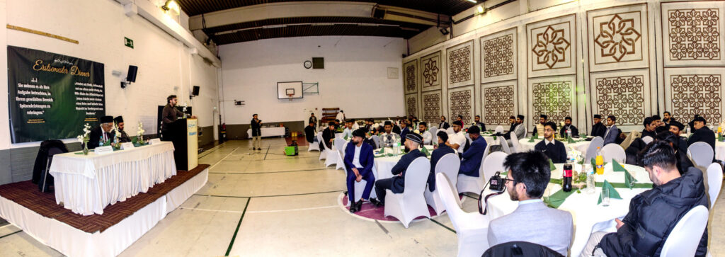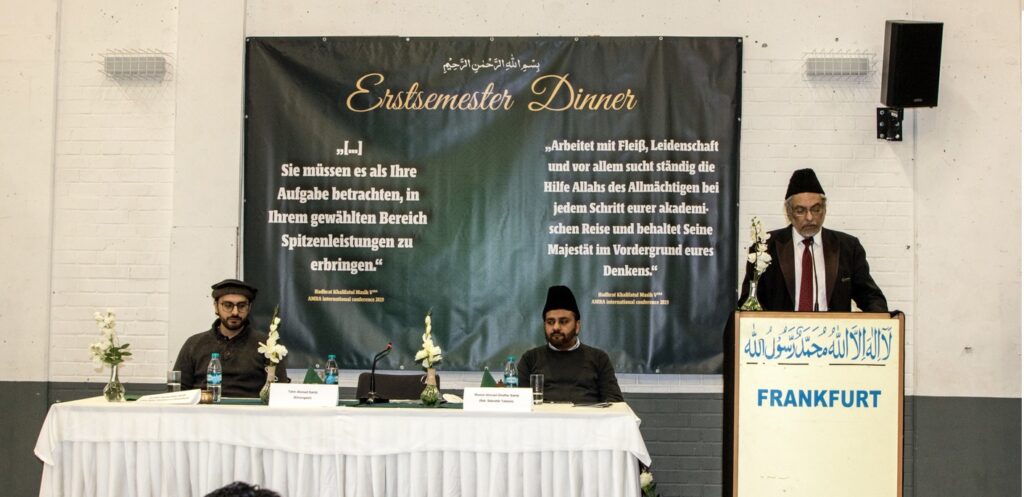 Listen to 20221129-germany university students programe byAl Fazl International on hearthis.at جماعتہائے احمدیہ عالمگیر میں یہ روایت تو موجود ہے کہ سالانہ امتحانات امتیازی پوزیشن سے پاس کرنے والے طلبہ کو ان کی اپنی مقامی جماعت کی طرف سے سند امتیاز اور انعام سے نوازا جاتا ہے۔ ایسے خوش قسمت طلبہ یہ انعامات خلفائے سلسلہ کے بابرکت ہاتھوں سے وصول کرتے رہے ہیں۔ جرمنی میں بھی کووڈ سے پہلے تک حضرت خلیفۃ المسیح الخامس ایدہ اللہ بنصرہ العزیز جلسہ سالانہ کے موقع پر ان طلبہ کو انعامات سے نواز کر ان کی حوصلہ افزائی فرماتے رہے ہیں۔ شعبہ تعلیم جماعت احمدیہ جرمنی 2021ء سے ان تمام طلبہ کو جو کالج (Abitur) پاس کرنے کے بعد یونیورسٹی شروع کرتے ہیں ان کو ایک استقبالیہ پر جمع ہونے کا نادر موقع مہیا کرتا ہے۔ اس سے ایک تو طلبہ کو علم ہو جاتا ہے کہ ان کی یونیورسٹی میں کون کون سا احمدی ان کے ساتھ پڑھ رہا ہے تا ضرورت کے وقت اس سے مدد لی جاسکے۔ دوسرے شعبہ تعلیم کے علم میں آ جاتا ہے کہ امسال کتنی یونیورسٹیوں میں احمدی طلبہ کی کتنی تعداد موجود ہے۔ احمدی بچیوں کے لیے بھی انہی خطوط پر لجنہ اماء اللہ کے تعاون سے استقبالیہ ترتیب دیا جاتا ہے۔ 2021ء کی استقبالیہ تقریب ہمبرگ میں منعقد ہوئی تھی۔ امسال یہ استقبالیہ بیت السبوح، فرانکفرٹ میں مورخہ 12؍نومبر بروز ہفتہ بعد نماز مغرب مردانہ سپورٹس ہال میں منعقد ہوا۔ اس کے لیے ہال کو خوبصورتی سے سجایا گیا تھا۔ ہال سے باہر استقبالیہ ڈیسک پر خلفائے سلسلہ کے ارشادات کے پرنٹ مختلف سٹینڈز پر لگائے گئے تھے۔ کیونکہ آنے والے مہمانوں کا تعلق پورے جرمنی سے تھا اس لیے شعبہ تعلیم کی ٹیم نے ہر آنے والے مہمان کا استقبال کیا اور وقت کی مناسبت سے مشروبات و دیگر لوازمات پیش کیے۔ آج کی تقریب میں شرکت کے لیے درج ذیل جماعتوں سے 55طلبہ بیت السبوح تشریف لائے: Altenstadt, Bait-ul-Wahid East, Bait-ul-Wahid West, Bornheim, Buedingen, Eidelstedt, Frankfurt, Griesheim, Gießen, Ginsheim, Graefenhausen, Groß Gerau South, Herborn, Hoechst, Kassel, Koblenz, Lurup, Mainz, Marburg, Moerfelden North, Russelsheim East, Wabern, Walldorf North, Walldorf South, Wandsbek. احمدی طلبہ نے جن یونیورسٹیوں میں تعلیم شروع کی ہے ان کے نام یہ ہیں : Fachhochschule Koblenz, Frankfurt University of Applied Sciences, Goethe University Frankfurt, Hamburg University of Applied Sciences, Hochschule Darmstadt, Hochschule Karthause, Hochschule Rhein-Main, Justus-Liebig University Marburg, Technical University Darmstadt, Technical Hochschule Mittelhessen, Thom Gießen, University of Marburg, University of Kassel. تقریب نئے یونیورسٹی طلبہ کے استقبالیہ کے لیے شام سات بجے کا وقت مقرر تھا۔ طلبہ کے کرسیوں پر بیٹھ جانے کے بعد تقریب کا آغاز مکرم طاہر محمود صاحب سابق نیشنل سیکرٹری تعلیم کی صدارت میں ہوا۔ تقریب کی کارروائی جرمن زبان میں تھی۔ آغاز میں مکرم محمد عمران بشارت نے تلاوت قرآن کریم مع جرمن ترجمہ پیش کی جس کا اردو ترجمہ مکرم حصور طاہر صاحب نے پیش کیا۔ نیشنل سیکرٹری تعلیم مکرم وسیم عبدالغفار صاحب نے تقریب کی غرض اور صدر مجلس کا تعارف پیش کرتے ہوئے بتایا کہ وہ 18 سال سیکرٹری تعلیم رہے ہیں اور اس میدان میں وسیع تجربہ رکھتے ہیں۔ اجلاس کے پہلے مقرر جناب مدبر آسان خان صاحب نائب صدر مجلس خدام الاحمدیہ جرمنی تھے۔ آپ نے نوجوانوں کو یاد دلایا کہ ہمارے والدین کو جن مشکل حالات میں ہجرت کرنا پڑی ان تکالیف کو خدا تعالیٰ نے اس طور سےآسانیوں میں بدل دیا کہ ہمیں یہاں اچھی یونیورسٹیوں میں تعلیم حاصل کرنے کے مواقع حاصل ہو رہے ہیں۔ اس لیے جماعت کے ساتھ اپنے تعلق کو مضبوط بنائیں۔ اللہ تعالیٰ نے قرآن کریم میں فرمایا ہے کہ اللہ سے وہی لوگ خشیت رکھتے ہیں جو علم والے ہیں۔ حضور انوربھی ہر احمدی طالب علم سے یہ توقع رکھتے ہیں کہ وہ تعلیمی میدان میں نمایاں کارکردگی دکھائے۔ احمدی طلبہ کو دنیاوی علم کے ساتھ ساتھ اپنا دینی علم بھی بڑھانا چاہیے۔ اپنے وقت کو ضائع نہ ہونے دیں۔ اس کے بعد صدر مجلس مکرم طاہر محمود صاحب نے نوجوانوں سے مخاطب ہوتے ہوئے کہا کہ علم حاصل کرنا ہر مسلمان عورت اور مرد پر فرض ہے اور اس کو مسلمان کی میراث قرار دیا ہے۔ اس کے لیے اس قدر تاکید ہے کہ تمہیں علم حاصل کرنے کے لیے چین بھی جانا پڑے تو جاؤ