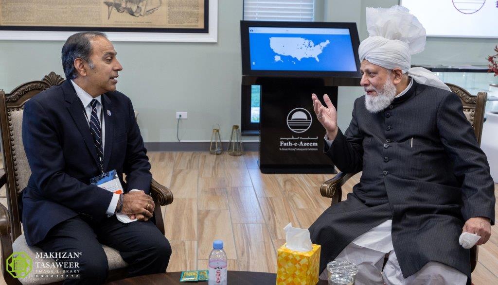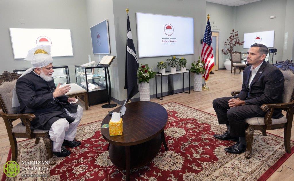 https://youtu.be/5g193B8ViHU ٭… اخبار لیک کاؤنٹی نیوز سَن کی نمائندہ کا حضورِانور سے انٹرویو ٭…بعض غیر از جماعت معززین کی حضور انور سے ملاقات حضور انور ایدہ اللہ تعالیٰ بنصرہ العزیز نے صبح پانچ بج کر پچاس منٹ پر مسجد فتح عظیم تشریف لاکر نماز فجر پڑھائی۔ نماز کی ادائیگی کے بعد حضور انور ایدہ اللہ تعالیٰ بنصرہ العزیز اپنی رہائش گاہ پر تشریف لے گئے۔ صبح حضور انور ایدہ اللہ تعالیٰ بنصرہ العزیز نے دفتری ڈاک ملاحظہ فرمائی۔ یہاں امریکہ کے اس سفر کے دوران دنیا کے مختلف ممالک سے روزانہ فیکس اور ای میل کے ذریعہ سے خطوط اور رپورٹس موصول ہوتی ہیں۔ یہاں امریکہ کے احباب کی طرف سے خطوط اور مختلف شعبوں کی رپورٹس بھی حضور انور کی خدمت میں پیش ہوتی ہیں۔ حضور انور ان خطوط اور رپورٹس کو ملاحظہ فرماتے ہیں۔ اور ہدایات سے نوازتے ہیں۔ حضور انور ایدہ اللہ تعالیٰ بنصرہ العزیز نے ایک بج کر تیس منٹ پر مسجد فتح عظیم میں تشریف لاکرنماز ظہر و عصر جمع کر کے پڑھائیں۔ نمازوں کی ادائیگی کے بعد حضور انور اپنی رہائش گاہ پر تشریف لے گئے۔ پروگرام کے مطابق پانچ بجے حضورا نور ایدہ اللہ تعالیٰ نمائش ہال تشریف لائے جہاں“LAKE COUNTY NEWS SUN”اخبار کی ایک صحافی خاتونYADIRA SANCHEZ OLSONصاحبہ حضور انور سے انٹرویوکے لیے آئی ہوئی تھیں۔ اس صحافی نے پہلا سوال کیا کہ اس دور میں جب ہر طرف بہت زیادہ خوف، جرائم، بے گھر ہونا اور خوراک کی کمی اور عدم تحفظ ہے تو آپ کا کیا پیغام ہے تاکہ خوف کم ہو؟ Lake County News Sun کی صحافی کا حضور انور سے انٹرویو اس کے جواب میں حضور انور ایدہ اللہ تعالیٰ نےفرمایا: بانی سلسلہ احمدیہ نے فرمایا ہے کہ میرے آنے کا مقصد لوگوں کو ان کے خالق کے قریب کرنا ہےان کے پیدا کرنے والے تک پہنچانا ہے اور دوسرا یہ کہ لوگوں کو سمجھانا ہے کہ وہ آپس میں ایک دوسرے کے حقوق ادا کریں۔ اگر آپ لوگوں کو اُن کے حقوق دیتے ہیں تو پھر کوئی جرم یا بے گھر ہونا یا خوراک کا عدم تحفظ نہیں ہونا چاہیے۔ صحافی نے سوال کیا کہ آپ نوجوانوں کو اپنے ایمان پر قائم رہنے کے لیے کیا پیغام دینا چاہتے ہیں؟ اس پر حضورانور نے فرمایا: نوجوانوں کو اپنے بزرگوں کی دین اور ایمان کی باتیں سننی چاہیں۔ اور ان سے دین اور ایمان کی باریکیاں سیکھنی چاہئیں۔ بچے کے لیے اپنے والدین سے سب کچھ سیکھنا ایک فطری عمل ہے، والدین سے دین بھی سیکھنا چاہیے۔ صحافی کے اس سوال کے جواب میں کہ کیا آپ کے خیال میں تمام مذاہب اور لوگوں کے لیے امن کے حصول کا کوئی فارمولا ہے؟کیا تمام مذاہب مل کر امن کے لیے کام کر سکتے ہیں؟ حضور انور نے فرمایا: اگر دنیا یہ سمجھ لے کہ تمام لوگوں کو اللہ تعالیٰ ہی نے پیدا کیا ہےاور ہماری پیدائش کا مقصد ایک دوسرے کو مارنا یا تباہ کرنا نہیں ہے اور یہ کہ تمام مذاہب اللہ تعالیٰ کی طرف سے آئے ہیں تو پھر آپ یہ بھی سمجھ لیں گی کہ تمام انبیاء اور تمام مذاہب کے بانی نے پیشگوئی کی تھی کہ آخری زمانہ میں ایک نبی آئے گا جو تمام مذاہب کو متحد کردے گا۔ ہمارا یقین ہے کہ وہ شخص جس کے بارہ میں تمام مذاہب کے بانیوں نے پیشگوئی کی ہے وہ آنحضرت ﷺ ہیں۔ اور پھر آنحضرتﷺ نے یہ پیشگوئی کی کہ میرے پیروکار اسلام کی حقیقی تعلیم کو بھول جائیں گے پھر اُس وقت ایک مصلح آئےگا جو میری امت میں سے ہوگا اور ہمارا یقین ہے کہ یہ مصلح بانئ سلسلہ احمدیہ ہیں۔ بعد ازاں ڈاکٹرCRAIG CONSIDINEنے حضور انور ایدہ اللہ تعالیٰ سے ملاقات کی۔ موصوف ہیوسٹن میں رائس یونیورسٹی میں پروفیسر ہیں۔حضور انور نے موجودہ جنگی حالات کا ذکر کرتے ہوئے فرمایا کہ یہ انسانیت کی تباہی کی طرف جا رہے ہیں۔ بعض مغربی لیڈرز اپنے اقدام میں اس حد تک آگے جا چکے ہیں کہ پیچھے ہٹنے کے لیے تیار نہیں۔ اب شاید ایشیائی لیڈرز انہیں نرم کرنے اور تنازعہ کو کم کرنے کی کوشش کر رہےہیں۔ ڈاکٹر کریگ کانسڈائن کی حضورِ انور سے ملاقات ڈاکٹرCRAIGنے کہا کہ میں نے ایک کتاب لکھی ہے جس میں احمدیہ جماعت اور حضور کے بارہ میں لکھا ہے۔ میری کتاب کا پیغام محبت ہے۔ اگرچہ میں عیسائی ہوں لیکن مجھے احمدیہ جماعت سے لگاؤ ہے اور لگاؤ کی 