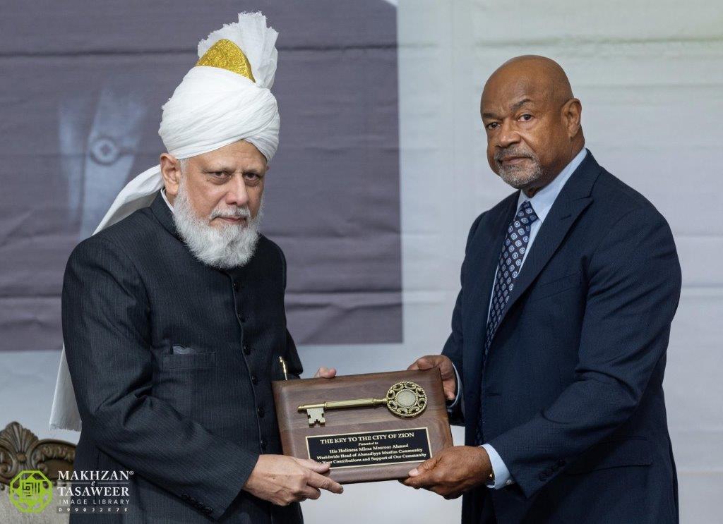 ٭…مختلف جماعتوں اور ممالک سے آنے والے جماعتی عہدیداران اور نمائندوں کے علاوہ 161 غیر مسلم اور غیر از جماعت مہمانوں کی شرکت ٭…تعمیر مساجد کی اغراض، اسلام کی پُر امن تعلیم اور حضرت اقدس مسیح موعودعلیہ السلام کا ڈووی سے مباہلہ کاکچھ اجمالی بیان ٭…’’آج کا دن ہماری جماعت کے لیے بڑا اہم اور بہت خوشی کا باعث ہے‘‘ ٭… ’’ہمارا واحد مقصد اور تمنا یہی ہے کہ پیار کے ذریعہ بنی نوع انسان کے دلوں کو جیتا جائے اور ان کو خدا تعالیٰ کے قریب کیا جائے‘‘ ٭…’’بانی سلسلہ احمدیہ نے ساری زندگی اپنے پیروکاروں کو پیار، ہمدردی اور احسان پر مشتمل اسلامی تعلیم پر عمل پیرا رہتے ہوئے تبلیغ اسلام کرنے اسلام کا پیغام پہنچانے اور لوگوں کے دل و دماغ جیتنے کی تلقین فرمائی‘‘ ٭…’’میری دلی خواہش ہے اور میں دعا کر تا ہوں کہ یہ مسجد انشاء اللہ ہمیشہ امن، تحمل اور تمام بنی نوع انسان سے محبت کا منبع ہو گی۔ میری دعا ہے کہ یہاں عبادت کرنے والے تمام تر عاجزی کے ساتھ اپنے خالق کو پہچانیں، اس کے آگے جھکیں اور بنی نوع انسان کے حقوق ادا کریں‘‘ ٭…مسجد کی افتتای تقریب میں شامل ہونے والے معززین کے تاثرات دورہ امریکہ کے دوران مورخہ یکم اکتوبر2022ء کو ’’مسجد فتح عظیم‘‘ کے افتتاح کے حوالہ سے مسجد کے بیرونی احاطہ میں نصب مارکی میں ایک تقریب کا اہتمام کیا گیا تھا۔ اس تقریب میں مختلف جماعتوں اور ممالک سے آنے والے جماعتی عہدیداران اور نمائندوں کے علاوہ 161 غیر مسلم اور غیر از جماعت مہمانوں نے شرکت کی۔ ان مہمانوں میں وہ تمام مہمان بھی شامل تھے جنہوں نے اس تقریب سے قبل حضور انور کے ساتھ انفرادی طور پر اور گروپ کی صورت میں ملاقات کی تھی۔ اس کے علاوہ Glen Ellynکے میئر مارک Senak صاحب، Glen Ellyn کے سابق میئر مائیک Formento صاحب، زائن کمشنر chris Fischer صاحب، لیک کاؤنٹی بورڈ ممبر جینا رابرٹس، سپرنٹنڈنٹ ڈاکٹر Jesse Rodrigues زائن ہائی سکول پرنسپل Zakhary Livingston بھی اس تقریب میں شامل تھے۔ علاوہ ازیں اس تقریب میں ڈاکٹرز، پروفیسرز، ٹیچرز، وکلاء، جرنلسٹ، میڈیا کے نمائندے، سیکیورٹی کے اداروں کے نمائندے اور زندگی کے مختلف شعبوں سے تعلق رکھنے والے مہمان شامل تھے۔ پروگرام کے مطابق چھ بج کر دس منٹ پر حضور انور ایدہ اللہ تعالیٰ مارکی میں تشریف لائے۔ حضور انور کی آمد سے قبل تمام مہمان اپنی اپنی نشستوں پر بیٹھ چکے تھے۔ پروگرام کا آغاز تلاوت قرآن کریم سے ہوا جو مکرم مبارک Kukoy صاحب نے کی۔ بعد ازاں اس کا انگریزی ترجمہ مکرم نصیر اللہ صاحب نے پیش کیا۔ اس کے بعد مکرم امجد محمود خان صاحب (نیشنل سیکرٹری امور خارجیہ، یوایس اے) نے اپنا تعارفی ایڈریس پیش کیا۔ ٭… بعد ازاں زائن شہر کے میئر آنریبل Billy McKinney نے استقبالیہ ایڈریس پیش کرتے ہوئے کہا آپ سب کا شکر یہ ! آپ سب پر سلامتی ہو اور زائن، الینوائے کے خوبصورت شہر میں خوش آمدید! میرے لیے جماعت احمدیہ مسلمہ کے عالمی راہنما حضرت مرزا مسرور احمد صاحب کو مسجد فتح عظیم کے افتتاح کے موقع پر زائن شہر میں خوش آمدید کہنا انتہائی اعزاز کی بات ہے۔ خلیفۃ المسیح کا آج شام اس تقریب میں شرکت کے لیے ہزاروں میل کا سفر طے کر کے آنایقیناً ہمارے لیے بہت ہی فخر کا باعث ہے۔ یہاں زائن میں، ہمارا ماٹوHistoric past and dynamic future ہے۔ زائن شہر کے میئر آنریبل Billy McKinney حضور انور کی خدمت میں زائن شہر کی چابی پیش کرتے ہوئے ہمارے شہر کے قلب میں یہ خوبصورت مسجد اس ماٹو کی ایک اعلیٰ مثال ہے۔ میری خواہش اور دعا ہے کہ یہ عبادت گاہ ہمارے ماضی اور مستقبل کے درمیان ایک پل کا کام کرے۔ یہ جانتے ہوئےکہ یہ مسجد ایسی شاندار ایمان سے بھر پور کمیونٹی کے نمازیوں سے بھری ہوئی ہے، مجھے زائن شہر کے مستقبل کے لیے بھی امید دلاتی ہے۔ اگر ہمیں ایک بہتر زائن، ایک بہتر شہر، ایک بہتر ریاست، ایک بہتر ملک اور ایک بہتر دنیا بنانی ہے، تو ہمیں تمام نسلوں اور عقیدوں کے ساتھ مل کر کام کرنا ہو گا۔ جب میں اس پیغام کو دیکھتا ہوں جو احمد یہ مسلم کمیونٹی ہمارے شہر میں لے کر آئی ہے تو مجھے بہت خوشی ہوتی ہے۔ یہ مسلمانوں کی وہ جماعت ہ