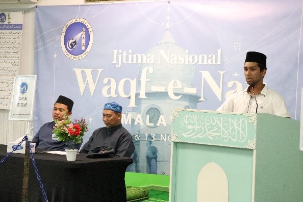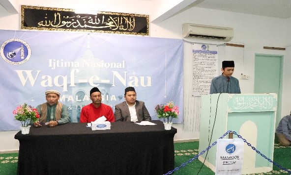 اللہ تعالیٰ کے خاص فضل اور پیارے حضورِ انور ایدہ اللہ بنصرہِ العزیز کی دُعائوں سے جماعت احمدیہ ملائیشیا کو اپنا پہلا سالانہ نیشنل اجتماع واقفینِ نو 12 و 13؍نومبر 2022ء بروز ہفتہ و اتوار احمدیہ مشن ہائوس بیت السلام میں نہایت کامیابی سے منعقد کرنے کی توفیق ملی۔ الحمد للہ اجتما ع کی تیاریوں سے قبل حضورِ انور ایدہ اللہ تعالیٰ بنصرہِ العزیز کی خدمت اقدس میں دُعائیہ خط بھجوایا گیا اور مکرم امیر صا حب ملائیشیا سے اجتما ع کی منظوری لی گئی۔ ایک ماہ قبل ہی نگران اعلیٰ اور تمام ناظمین کی ٹیم مقرر کرنے کے بعد اجتماع کی تیاریوں کا آغاز کر دیا گیا اور تمام ناظمین کی وقتاً فوقتاًکل تین میٹنگز میں اجتماع کی تیاریوں سے متعلقہ لائحہ عمل کے ذریعہ تمام پروگرامز کو حتمی شکل دی گئی ۔ اجتماع میں شامل ہونے والے واقفین نو بچوں کی رجسٹریشن کے لیے سیکرٹریان حلقہ جات سے آن لائن ڈیٹامنگوایا گیا جس میں شاملین واقفین نو کی عُمر کی حد 7 تا 25 سال رکھی گئی۔ تمام سیکرٹریان کے ذریعے واقفین نو بچوں تک پروگرام اور نصاب پہنچایا گیا اور گا ہے بگا ہے یا د ہانی بھی کروائی گئی۔ الحمد للہ تمام سیکرٹریان نے اپنے بھر پور تعاون سے تمام واقفین نو بچوں کو اس اجتماع میں شامل کروایا۔ اس اجتماع میں شامل ہونے والے واقفین نو کو چار گروپس میں تقسیم کیا گیا جن میں محمود، ناصر، طاہر اور مسرور گروپس شامل ہیں۔ ان گروپس کے مابین مقابلہ جات کروائے گئے۔ ہر گروپ میں 7 تا 25 سال کی عُمر کے واقفین نو شامل تھے۔ مورخہ 11؍نومبر 2022ء اجتماع کے لیے مہمانوں کی آمدکا سلسلہ شروع ہو گیا۔ شام سات بجے نماز مغرب و عشاء کی ادائیگی کے بعد کھانا پیش کیا گیا۔ پھر نو بجے تمام واقفین نو بچوں اور دیگر مہمانوں نے حضور انورِ ایدہ اللہ تعالیٰ بنصرہِ العزیز کا لائیو خطبہ جمعہ اجتماعی صُورت میں سنا۔ خطبہ جمعہ کے بعد تمام واقفین نو سے مقابلہ سوال و جواب کی صورت میں جائزہ بھی لیا گیا۔ اجتماع کا پہلا روز اجتماع کے پہلے روز 12؍نومبر بروز ہفتہ دن کا آغاز صبح پانچ بجے نماز تہجد سے کیا گیا جس کے بعد مکرم عین الیقین صاحب مشنری انچارج ملائیشیا نے نماز فجر پڑھائی اور درس دیا جس میں آپ نے تمام واقفین نو بچوں کو اللہ تعالیٰ سے اپنا تعلق مضبوط کرنے، نمازوں کی ادائیگی کرنے اور وقف نو کی دیگر ذمہ داریوں کی طرف توجہ دلا ئی۔ بعد ازاں ناشتہ پیش کیا گیا۔ افتتاحی اجلاس اجتماع کے افتتاحی اجلاس کا آغاز صبح نو بجے ہوا جس کی صدارت مکرم مشنری انچارج صا حب ملا ئیشیا نے کی۔ تقریب میں تلاوت، نظم اور حضرت خلیفۃ المسیح الرابع رحمہ اللہ تعالیٰ کا بیا ن فرمودہ پیغام برائے واقفینِ نو پڑھ کر سُنایا گیا جس کے بعد مکرم مشنری انچارج صاحب نے دُعائیہ کلمات کے بعد دُعا کروائی۔ علمی مقابلہ جات اجتماع کے پہلے روز تمام علمی مقابلہ جات کروائے گئے جن میں مقابلہ تلاوت، نظم، تقریر، کوئز، پیغام رسانی اور امتحان نصاب وقف نو شامل تھے۔ علمی مقابلہ جات دو حصوں میں کروائے گئے۔ مقابلہ تلاوت، نظم اور تقریر دوپہر کے کھانے کے وقفہ سے پہلے منعقد ہوئے۔ دوپہر بارہ بجے کھانا پیش کیا گیا جس کے بعد نماز ظہر و عصر کی ادائیگی ہوئی۔ بعد ازاں پیغام رسانی، امتحان اور کوئز کے مقابلہ جا ت کروائے گئے۔ تمام علمی مقابلہ جات عُمر کے مطابق کروائے گئے۔شام سات بجے نماز مغرب وعشاء کی ادائیگی ہوئی جس کے بعد شام کا کھانا پیش کیا گیا۔ رات نو بجے تمام واقفین نو بچوں کا مستقبل میں تعلیم کے حوالہ سےایک دلچسپ پروگرام رکھا گیا جس کو بذریعہ سلائیڈ شو دکھایا گیا۔ اس کے بعد تمام واقفین نو بچوں نے پیارے حضورِ انور ایدہ اللہ تعالیٰ بنصرہ العزیز کی خدمت اقدس میں دُعائیہ خطوط لکھے۔ اسی طرح 15سال سے اُوپر عمر کے واقفین نو بچوں سے تجدید فارم پُر کروائے گئے۔ اس دن کے پروگرامز کا اختتام رات دس بجے ہوا۔ اجتماع کا دوسرا روز اجتماع کے دوسرے روز 13؍نومبر بروز اتوار کا آغاز صبح پانچ بجے نماز تہجد سے ہوا جس کے بعد نماز فجر ادا کی گئی اور درس مکرم نیشنل سیکر ٹری وقفِ نو نے دیا جس میں آ