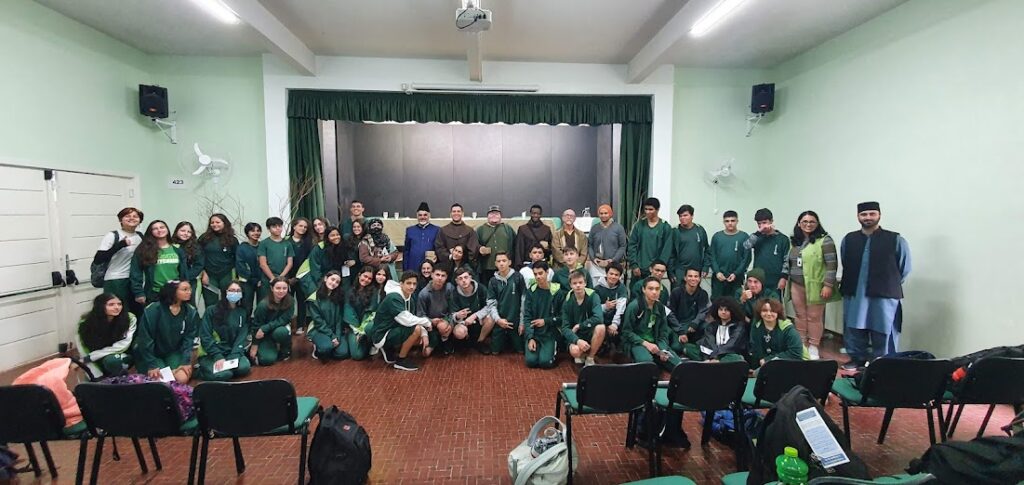 https://www.youtube.com/watch?v=b5GkmzJ8XOc پیٹروپولس (Petropolis) برازیل کے صوبہ ریوڈی جانئیرو کا ایک خوبصورت شہر ہے جہاں جماعت احمدیہ کا ہیڈ کورٹر اور مسجد بھی ہے۔ باقی سرگرمیوں کے علاوہ دیگر مذاہب کے نمائندوں کے ساتھ ہمیشہ اچھے روابط رکھنے کی کوشش کی جاتی ہے اور اب بین المذاہب پروگراموں میں اسلام کی نمائندگی میں جماعت احمدیہ کو بلایا جاتا ہے۔ ایسی ہی ایک تقریب کا اہتمام مورخہ ۳؍نومبر ۲۰۲۲ء کو شہر کے ایک مشہور کالج (Bom Jesus Itaipava) نے کیا جس میں اسلام کے علاوہ یہودی، ہرے کرشنا اور عیسائیوں کے مختلف فرقوں کے نمائندگان نے شرکت کی۔ ان کے علاوہ کالج کی ڈایریکٹر اور کئی اساتذہ بھی ہال میں موجود تھے۔ خاکسار کے ہمراہ مکرمہ انیلہ ظفر صاحبہ صدر لجنہ اماء اللہ برازیل اور مکرم اعجاز احمدظفر صاحب سیکرٹری اشاعت بھی تھے چنانچہ ہم تینوں کو انتظامیہ نے سٹیج پر بلاکر بٹھایا۔ الحمدللہ اس کانفرنس کے تین راؤنڈ تھے ایک میں اپنا تعارف، دوسرے میں اپنے اپنے مذہب کے متعلق تعارفی تعلیم اور تیسرے راؤنڈ میں طلبہ کے سوالوں کے جوابات تھے۔ خاکسارنے اپنی باری آنے پر اپنے تعارف کے بعد اسلام کے متعلق تفصیل سے بتایا کہ اس کے تو لفظی معنی ہی امن اور سلامتی کے ہیں اور ہم ایک دوسرے کو ملتے وقت السلام علیکم کہتے ہیں یعنی ہر ایک دوسرے کو سلامتی کی دعا دیتا رہتا ہے اس لیے ایسا مذہب دہشت گردی کی تعلیم کیسے دے سکتا ہے؟ خاکسار نے اسلام کے بنیادی ارکان اور ان کی تفصیل بھی بتائی اور یہ کہ اسلام کی تعلیم کا مرکزی نقطہ خدا تعالیٰ کی توحید کا قیام ہے۔ احمدیت کے تعارف میں بتایا کہ پیشگوئیوں کے مطابق جس مسیح نے آنا تھا وہ بانیٔ جماعت احمدیہ حضرت مرزا غلام احمد علیہ السلام کی شکل میں آ گیا ہے اس موقع پر ایک بڑے بینر پر حضور علیہ السلام کی تصویر بھی دکھائی جو کافی دیر تک آویزاں رہی۔ خاکسار نے جماعت احمدیہ کی مسجد ’’بیت الاول‘‘ کی بابت بھی بتایا کہ اس کے دروازے ہر ایک کے لیے کھلے ہیں۔ مکرمہ صدر صاحبہ لجنہ اماء اللہ برازیل نے اسلام میں عورتوں سے متعلق جو تعلیم ہے اس کو بیان کیا اور بتایا کہ اسلام میں عورت کو قید نہیں کیا گیا اور وہ ضرورت پڑنے پر گھر سے باہر کے کام اور جاب بھی کر سکتی ہے۔ چونکہ پردہ کی رعایت کے ساتھ صدر صاحبہ خود لیکچر دے رہی تھیں لہٰظ اس کا سب پر بہت مثبت اثر پڑا۔ طلبہ نے سب نمائندگان سے باری باری سوالات بھی کیے۔ اسلام کے متعلق سوالات میں خاکسار نے ایک سوال کے جواب میں بتایا کہ بانیٔ اسلام حضرت محمدﷺ کی آمد سے دراصل بائیبل باب استثناء آیت 18 کی عظیم الشان پیشگوئی پوری ہوئی ہے جس میں حضرت موسیٰ علیہ السلام کی مانند ایک نبی کے آنے کی خبر دی گئی تھی۔ تقریب کے اختتام سے قبل انتظامیہ نے درخواست کی کہ مہمانان اپنے اپنے مذہب کی کسی اہم بات کا ذکر کریں۔ چنانچہ مکرم اعجاز احمد ظفر صاحب نے بآواز بلند سورۃ الفاتحہ کی تلاوت کی اور اس کا پرتگیزی زبان میں ترجمہ بھی پیش کیا اس دوران ہال میں عجیب سماں تھا سب نے خاموشی اور انہماک سے تلاوت سنی اور اس کو سراہا۔ اختتام پر طلبہ میں اسلام اور احمدیت کے تعارف پر مبنی پمفلٹ بھی تقسیم کیے گئے۔ کالج کی انتظامیہ نے جماعت احمدیہ کا شکریہ ادا کیا۔ اللہ تعالیٰ کے فضل سے بہت اچھا پروگرام رہا نئے روابط بھی قائم ہوئے اور احسن طریق پر پیغام پھیلانے کا موقع ملا۔ اللہ تعالیٰ سے دعا ہے کہ وہ ہماری ادنیٰ کوششوں میں برکت ڈالے ان لوگوں کے دل احمدیت یعنی حقیقی اسلام کے لیے کھولے اور حق قبول کرنے کی توفیق دے۔ آمین (وسیم احمد ظفر۔ مبلغ انچارج جماعت احمدیہ برازیل و نمائندہ الفضل انٹرنیشنل)