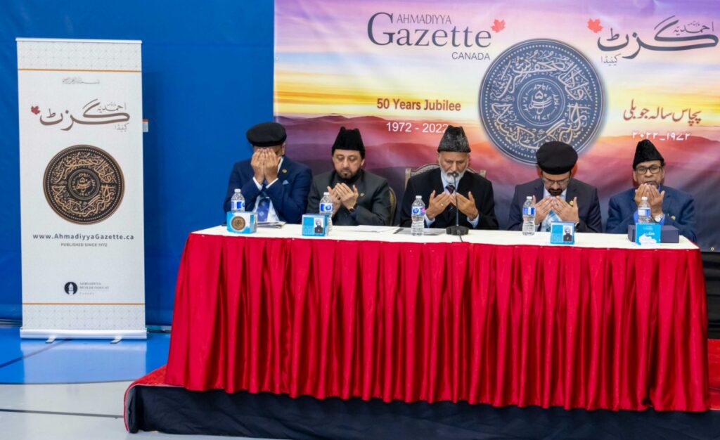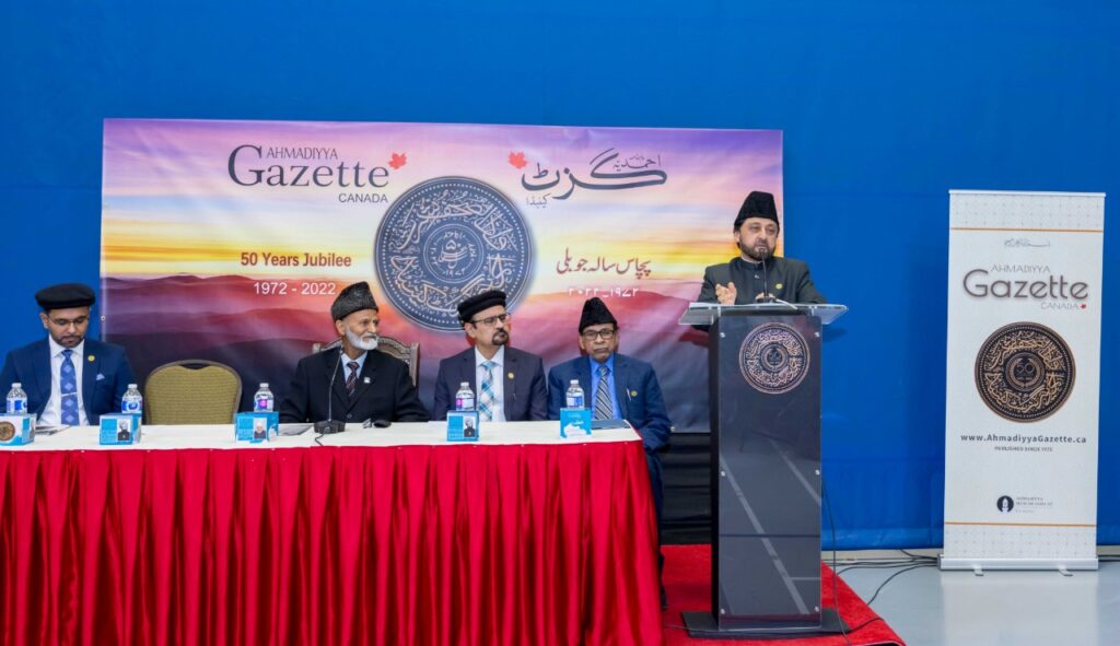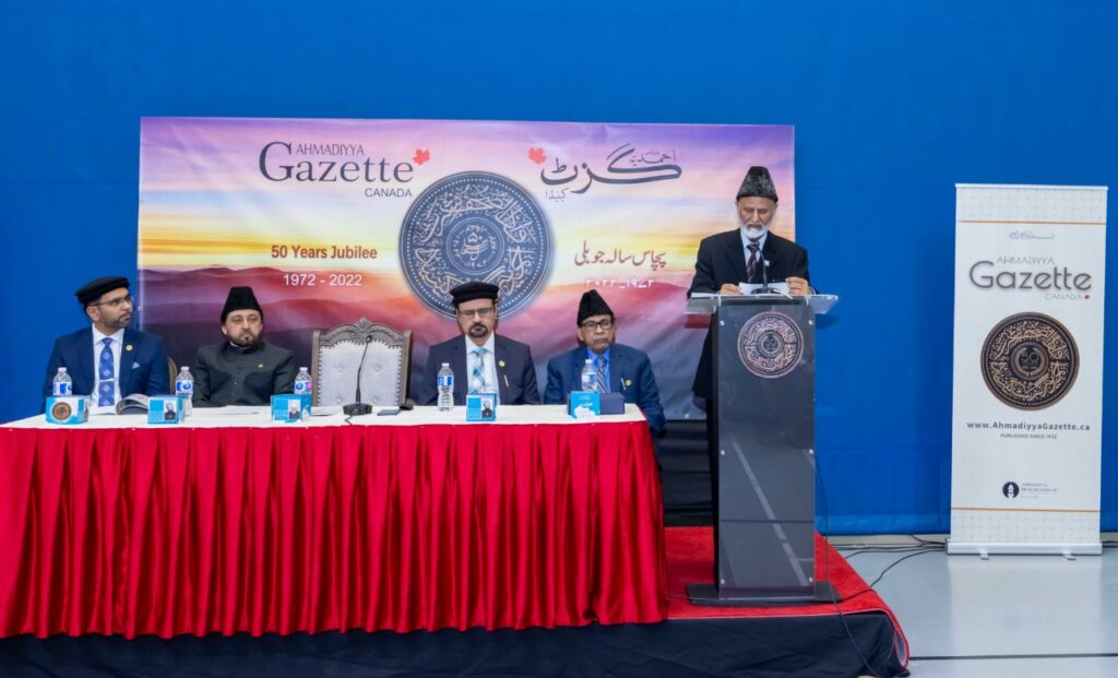 https://youtu.be/skJFezW8eEw خدا تعالیٰ کے فضل اور رحم کے ساتھ جماعت احمدیہ عالمگیر دنیا بھر میں ہر سال کامیابیوں اور کامرانیوں کی نئی منزلیں طے کرتی نظر آتی ہے۔ ۱۹۷۲ء میں ہاتھ سے لکھا جانے والا ’’احمدیہ گزٹ کینیڈا‘‘ چھاپہ خانوں اور کتابت کی منزلیں طے کرتا ہوا کمپیوٹر کے جدید تکنیکی دور میں رنگ اور نور کی بہاروں کا سماں نہ صرف آپ کی دہلیز پر بلکہ آپ کی کمپیوٹر سکرین پرپیش کررہا ہے، یہ رسالہ اسلام احمدیت کی تعلیمات کے ذریعہ تربیتی پہلو اُجاگر کرنے اور خلافت احمدیہ کے تازہ فرمودات احباب جماعت تک پہنچانےکی کوشش میں مصروف ہے۔ پچھلے پچاس برسوں کے سفر میں احمدیہ گزٹ کینیڈا نے اللہ تعالیٰ کے انعام واکرام کے جو نظارے دیکھے اُن کا شمار کرنا تو ناممکن ہے لیکن اِس سنگ میل پر پہنچ کر خوشی اور تشکّر کا اظہار کرنے کے لیے احمدیہ گزٹ کی ٹیم کے ممبران اور مجلہ سے منسلک تمام مخلصین نے ۲۰۲۲ء میں پورا سال تقریبات کا اہتمام کرتے ہوئے ۲؍فروری ۲۰۲۳ءکی شام ایوان طاہر میں اپنےتمام رضاکاروں کےاعزاز میں ایک عشائیہ کے ساتھ نئی منزلوں کی سمت روانگی کا پیمان باندھا۔ احمدیہ گزٹ کے سفر کی تاریخ ’’احمدیہ گزٹ کینیڈا‘‘ جماعت احمدیہ کینیڈا کا سرکاری ترجمان ہے۔ اِس کا پہلا شمارہ جون ۱۹۷۲ء میں شائع ہوا۔ آغاز میں اِس کا نام ’’احمدیہ نیوز بلیٹن‘‘ تھا اور اِس کی شکل خبرنامہ کی سی تھی اور یہ دونوں زبانوں یعنی اردو اور انگریزی میں تھا۔ ماہ اپریل ۱۹۷۲ء میں یہ ’’دی مسلم آؤ ٹ لُک‘‘ کہلایا اور پھر جولائی ۱۹۷۵ء سے اِس موقر جریدہ کو ’’احمدیہ گزٹ کینیڈا‘‘ کا نام دیا گیا۔ اِس کے پہلے ایڈیٹر محترم مبارک احمد خان صاحب مرحوم تھے۔ ۲۰۱۰ء سے مولانا ہادی علی چودھری صاحب مدیر اعلیٰ کی خدمات بجا لارہے ہیں۔ جوبلی تقریبات کی منصوبہ بندی محترم امیر صاحب کینیڈا کی منظوری سے ادارہ کے اراکین نے گزٹ کی پچاس سالہ جوبلی کی تقریبات کا سلسلہ ترتیب دیا، جو سارے سال پر محیط تھا۔ اِن تقریبات کی اجمالی تفصیل درج ذیل ہے: احمدیہ گزٹ کا پچاس سالہ جوبلی شمارہ تقریبات کے آغاز میں اظہارِتشکر کےطور پر پچاس سالہ جوبلی کا خصوصی شمارہ ماہ جون ۲۰۲۲ء میں شائع کرنے کا فیصلہ کیا گیا۔ چونکہ جون ۱۹۷۲ء میں پہلی باریہ شمارہ شائع ہوا تھا۔ اِس اعتبار سے ٹھیک پچاس سال بعدیہ جوبلی نمبر شائع کیا گیا۔ گزٹ کےمدیر اعلیٰ صاحب نے جوبلی کی یاد گار کو زندہ رکھنے کے لیے ایک خوبصورت لوگو (logo) ڈیزائن کیا جو گذشتہ سال جون سے ہرشمارہ کے سرورق کی زینت بنتاچلاآرہا ہے۔ اِس شمارہ کا نمایاں پہلو ہمارے پیارے آقا حضرت خلیفۃ المسیح الخامس ایدہ اللہ تعالیٰ بنصرہ العزیز کا وہ خصوصی پیغام ہے جس میں حضور انور نے گزٹ کےمستقبل کے لیے لائحہ عمل کی نشاندہی فرمائی ہے۔اور فرمایا ہےکہ گزٹ کی توجہ کا مرکز نوجوانوں کی جانب ہو نا چاہیے اور اُن کےذہنی میلان کے مطابق حکمت عملی تشکیل دینی چاہیے۔ سو صفحات کے اِس شمارہ میں گزٹ کی تاریخ اور اُس کے ارتقا پر مضامین شامل ہیں۔ اِس کے صفحات کو گزٹ کے ماضی و حال کے نگران اعلیٰ، مدیران، معاونین، گرافکس ڈیزائنرز، رضاکاروں، پرنٹرز وغیرہ کی تاریخی تصا ویر اور ماضی میں شائع ہونے والے تاریخی سرورق سے مزین کیاگیا ہے۔ جوبلی مشاعرہ گزٹ کے پچاس سال مکمل ہونے کی یاد میں۹؍ستمبر ۲۰۲۲ءکو جماعت احمدیہ کینیڈا کے مرکز ایوانِ طاہر میں ایک خصوصی مشاعرہ منعقد کیاگیا۔ جس میں اُن شعراء کو حمد و نعت اور خلافت سے اپنی محبت کے اظہار کےموضوع پر اپنا کلام پیش کرنے کی دعوت دی گئی تھی جن کا کلام احمدیہ گزٹ میں شائع ہو چکا ہے۔۱۳؍شعراء نےاپنا شعری کلام پیش کیا جس کےبعد تمام مہمانوں کی خدمت میں عشائیہ پیش کیا گیا۔اس تقریب کی رپورٹ مع تصاویر دسمبر۲۰۲۲ء کے گزٹ میں شائع ہوئی تھی۔ مقابلہ مضمون نگاری گزٹ کی جانب سے’’خلافت احمدیہ‘‘ کےموضوع پر مضمون نگاری کے مقابلہ کا اہتمام بھی کیا گیا۔ جس کی تمام تر ذمہ داری مکرم فرحان حمزہ قریشی صاحب ایڈیٹر احمدیہ گزٹ کے سپرد تھی۔ مقابلہ میں شرکا کو دو گروپس میں تقس