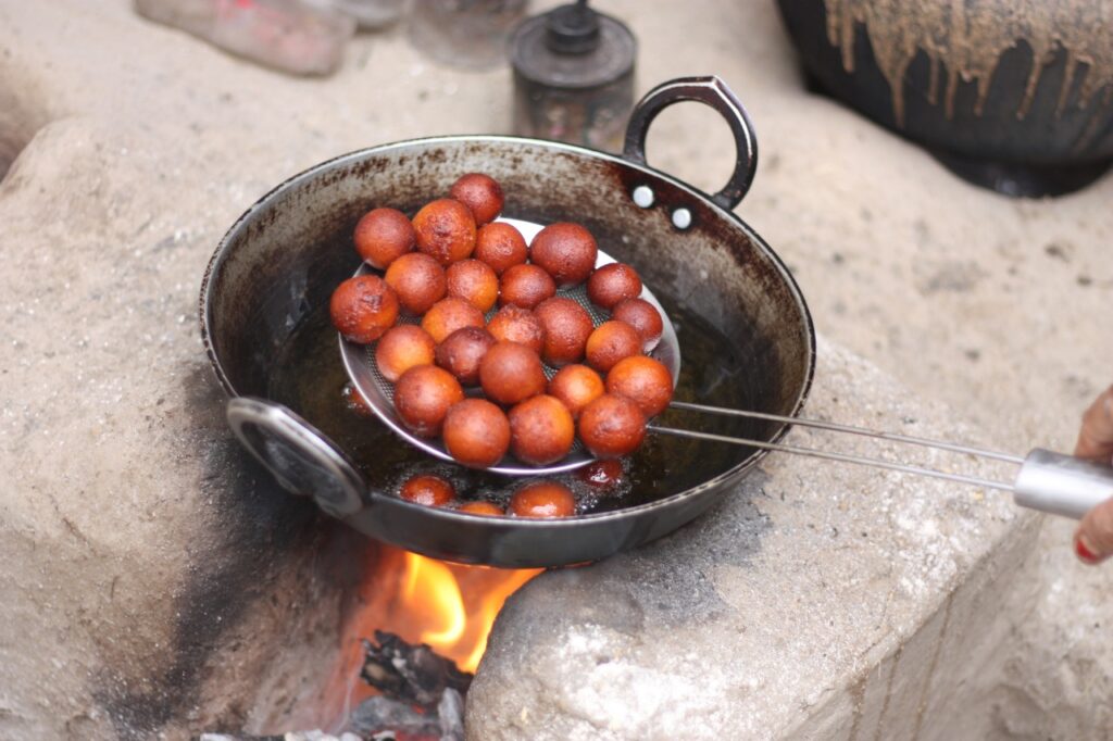 (مرسلہ : اسماء بشیر۔ جرمنی ) اجزا خشک دودھ 1کپ الائچی پاؤڈر آدھا چمچ بیکنگ پاؤڈر آدھا چائےکا چمچ میدہ ایک چمچ انڈا ایک عدد مکھن ایک بڑا چمچ چاشنی کے لیے اجزا پانی دو کپ چینی ایک کپ زردہ رنگ حسب ضرورت لیمو ں کا رس دو چمچ سبز الائچی حسب ضرورت ترکیب سب سے پہلے چاشنی بنانے کے لیے دو کپ پانی میں ایک کپ چینی ڈال کر ہلکی آنچ پر رکھ دیں۔ پھر زردہ رنگ، تھوڑاسا لیموں کا رس اور سبز الائچی ڈال دیں۔ چولہے پر ہلکی آنچ پر چاشنی پکتی رہے۔ گلاب جامن بنانے کے لیے ایک کپ خشک دودھ میں آدھا چمچ الائچی پاؤڈر،آدھا چمچ بیکنگ پاؤڈر اور ایک چمچ میدہ ڈال کر مکس کرلیں۔ اب اس میں ایک انڈا اور پگھلا ہوا مکھن ڈال کر اچھی طرح گوندھ لیں۔ ہاتھوں پر تھوڑا سا آئل لگا کر فوراً اس کے بالز بنا لیں اور پھر ان سارے بالز کو ہلکی آنچ پر گرم کیے ہوئے تیل میں ڈال دیں اور جب دیکھیں کہ بالز تیل میں پک کر تیل کی سطح پر اوپرآگئے ہیں تو ایک بڑے چمچ کی مدد سے انہیں تیل میں نیچے ڈبوئیں اور آنچ درمیانی کر دیں۔ ان کو تین سے پانچ منٹ تک تیل میں فرائی کریں یہاں تک یہ سب گولڈن براؤن ہو جائیں۔ گولڈن براؤن ہونے پر فوراً انہیں نکال کر چاشنی میں ڈال دیں اور پندرہ منٹ تک اس میں پڑا رہنے دیں۔ آنچ بند کر دیں۔ ڈش میں نکال کر کوکونٹ پاؤڈر، پستہ، بادام یا من پسند ڈرائی فروٹس سے گارنش کر لیں۔ ٭…٭…٭