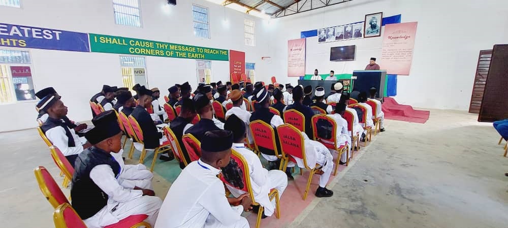 https://youtu.be/n-7N2WtWMHM مکرم اثمار احمد صاحب استاد جامعہ احمدیہ سیرالیون کی طرف سےگذشتہ دنوں جامعۃ المبشرین سیرالیون میں ہونے والے کچھ پروگراموں کی مختصر رپورٹ قارئین کی خدمت میں پیش ہے۔ مقابلہ حفظِ قصیدہ فی مدح خاتم النبیین ﷺ مورخہ یکم مارچ کوبعد از نمازِ عصر مجلس علمی جامعہ احمدیہ سیرالیون کے زیرِ اہتمام مجلس علمی کے تین گروپس نور، محمود اور ناصرکے مابین مقابلہ حفظِ قصیدہ فی مدح خاتم النبیینﷺ منعقد کیا گیا۔ الحمدللہ۔ پروگرام کا آغاز تلاوت کلامِ پاک سےہو ا جوکہ درجہ رابعہ کے طالب علم عزیزم حمزہ ایل کاموکائی نے کی۔ اس مقابلہ میں ہر سہ گروپس میں سے پانچ پانچ طلبہ نے شرکت کی۔ تین اساتذہ جامعہ احمدیہ سیرالیون، مکرم حامد علی بنگورا صاحب، مکرم فورنا مورلائی صاحب اور مکرم نعیم احمد گوہرصاحب نے بطو ر منصفین فرائض سر انجام دیے۔ایک دلنشین مقابلے کے بعد پہلی پوزیشن نور گروپ کے طالب علم عزیزم حسین اے کمارانے حاصل کی جبکہ نور گروپ کے ہی عزیزم ابراہیم ایس کوروما دوسری اور ناصر گروپ کے عزیزم مورلائی اے کمارا تیسری پوزیشن کے حقدار ٹھہرے۔ بارک اللّٰہ لھم۔ مقابلہ حفظِ قرآنِ پاک مورخہ ۸؍ مارچ ۲۰۲۳ء بعد از نمازِ عصر مجلس علمی جامعہ احمدیہ سیرالیون کے زیرِ اہتمام مجلس علمی کے تین گروپس نور،محموداورناصرکے مابین مقابلہ حفظِ قرآنِ پاک منعقد کیا گیا۔الحمدللہ۔ اس مقابلہ میں ہر سہ گروپس میں سے پانچ پانچ طلبہ نے شرکت کی۔ تین اساتذہ جامعہ احمدیہ سیرالیون، حامد علی بنگورا صاحب، فورنا مورلائی صاحب اور نعیم احمد گوہرصاحب نے بطو ر منصفین فرائض سر انجام دیے۔ایک دلنشین مقابلے کے بعد پہلی پوزیشن نور گروپ کے طالب علم عزیزم سلیمان سو نے حاصل کی جبکہ نور گروپ کے ہی عزیزم ابراہیم ایس کوروما دوسری اور محمودگروپ کے عزیزم محمدبی کوروما تیسری پوزیشن کے حقدار ٹھہرے۔ بارک اللّٰہ لھم ۔ مقابلہ کوئز قرآنِ کریم مورخہ ۱۵؍مارچ بعد نمازِ عصر پارہ نمبر ا تا ۴ ترجمہ مع تفسیری نوٹس پر مشتمل کوئز پروگرام منعقد کیا گیا۔ اس مقابلہ میں ہر سہ گروپس میں سے چارچار طلبہ نے شرکت کی۔ تین اساتذہ جامعہ احمدیہ سیرالیون مکرم حامد علی بنگورا صاحب، مکرم فورنا مورلائی صاحب اور مکرم اثمار احمدصاحب نے بطو رمنصفین فرائض سر انجام دیے۔ایک دلچسپ مقابلے کے بعد پہلی پوزیشن ناصر گروپ کے طلبہ عزیزان جبریل احمد کمارا،مورلائی اے کمارا،ابراہیم ایم تلا،محمد وائی کمارانے حاصل کی جبکہ نور گروپ کے عزیزان ادریسا سعیدو بائی کاربو ، حسین اے کمارا، عبداللہ سیسے ،خالد اے پائی دوسری پوزیشن کے حقدار ٹھہرے۔ بارک اللّٰہ لھم ۔ عشائیہ مورخہ ۱۸؍مارچ کو بعد نمازِ مغرب و عشاء مکرم امیر صاحب جماعت احمدیہ سیرالیون کے اعزاز میں عشائیہ پیش کیا گیا۔ علاوہ ازیں افسر صاحب جلسہ سالانہ سیرالیون کو بھی اس میں مدعو کیا گیا تھا۔ تلاوت قرآن کریم و نظم کے بعد طلبہ کی طرف سے مزاحیہ خاکے پیش کیے گئے جن سے تمام شاملین خوب محظوظ ہوئے۔افسر صاحب جلسہ سالانہ نے جامعہ احمدیہ کے جملہ طلبہ کا جلسہ پر ڈیوٹیوں کی ادائیگی پر تہ دل سے شکریہ ادا کیا۔ آخر پر امیر صاحب نے طلبہ کی جلسہ سالانہ پر خدمات کو سراہا اور دعا کروائی۔ بعدازاں تمام حاضرین کی خدمت میں پرتکلف کھانا پیش کیا گیا۔ جلسہ یومِ مسیحِ موعود مجلس ارشاد کے زیرِ اہتمام مورخہ ۱۹؍مارچ کو جلسہ یومِ مسیحِ موعود منعقد کروانے کی توفیق ملی۔ الحمدللہ ۔مکرم پرنسپل صاحب کی زیرِ صدارت پروگرام کا آغاز تلاوت قرآن کریم سے ہوا جس کے بعد نظم پیش کی گئی۔ پروگرام میں تین تقاریر ہوئیں ، پہلی تقریر عزیزم سلیمان سو متعلم درجہ رابعہ نے ‘‘امام مہدی کے ظہور کی اہمیت’’ کے عنوان پر کی۔دوسری تقریرمیں مکرم اثمار احمد صاحب استاد جامعہ احمدیہ نے ‘‘حضرت مسیح موعودؑ کا عشقِ رسولﷺ’’ کے موضوع پر روشنی ڈالی۔اور آخر میں مکرم نعیم احمد گوہرصاحب نے ‘‘حضرت مسیح موعودؑ بطوراسلام کے پہلوان’’ کے موضوع پرتقریر کی۔آخر میں طلبہ کو سوالات کا موقع دیا گیا بعد ازاں مکرم پرنس