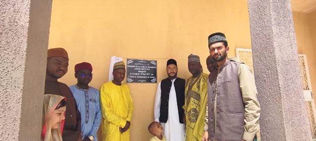 https://youtu.be/I6J69B8G-f4 مکرم ناصر احمد صاحب مبلغ سلسلہ داکورو شہر تحریر کرتے ہیں کہ محض اللہ تعالیٰ کے فضل اور پیارے حضور کی دعاؤں کے طفیل ڈاکورو شہر کی ریجنل مرکزی مسجدکی تعمیر کا کام مورخہ ۱۸؍مئی ۲۰۲۳ء کو تکمیل کو پہنچا۔الحمد للہ علیٰ ذٰلک۔ ڈاکورو شہر کی مسجد کی تعمیر نائیجر کے بڑے شہروں میں تبلیغ کے کام کو بہتر طور پر سر انجام دینے کےلیے ریجنل سیٹ اپ کے قیام کی ایک کڑی ہے، جس کو ۲۰۲۲ء کی ملکی شوریٰ میں ایک تجویز کے طور پر رکھا گیا تھا۔اس تجویز پر عمل درآمد کرتے ہوئے اللہ تعالیٰ کے فضل سےمکرم امیر صاحب کی زیر نگرانی ملک کے تمام بڑےشہروں میں مرکزی مساجد اور مشن ہاؤسز کی تعمیر کا کام تیزی سے جاری ہے۔ اسی سلسلہ کی ایک مسجد ڈاکورو شہر کی مسجد ہےجس کا سنگ بنیاد اسد مجیب صاحب امیر و مشنری انچارج نائیجر نے مورخہ ۸؍ دسمبر ۲۰۲۲ء کو رکھا جبکہ اس کی تکمیل مورخہ ۱۸؍ مئی ۲۰۲۳ء کو ہوئی۔ مسجد کےسنگ بنیاد سے قبل صدقہ دیا گیا اور حضور انور ایدہ اللہ تعالیٰ کی خدمت میں دعا کے لیے خط لکھا گیا۔اسی طرح دوران تعمیر بھی صدقات اور دعائیہ خطوط کا سلسلہ باقاعدگی سے جاری رہا۔مورخہ ۱۹؍مئی ۲۰۲۳ء کو مسجد کی افتتاحی تقریب کا انعقاد کیا گیا جس میں شہر کی لوکل انتظامیہ کے نمائندگان اور گڈن سوری شہر کے علاقائی بادشاہ کےعلاوہ مختلف شعبہ ہائے زندگی سے تعلق رکھنے والے افراد نے شرکت کی۔مسجد کا افتتاح نماز جمعہ سے قبل دعا سے کیا گیا جس کے بعد مکرم امیر صاحب نے خطبہ جمعہ دیا۔نماز جمعہ کی ادائیگی کے بعدافتتاح کے لیے آئے ہوئےمعزز مہمانوں نے اپنے خیالات کا اظہار کیا۔ مسجد کا مسقف حصہ ۱۵۰؍ مربع میٹر ہے اور اس میں ایک وقت میں ۲۵۰؍ نمازیوں کی گنجائش ہے۔مسجد کی عمارت اللہ تعالیٰ کی توحید کی طرف بلانے کے ساتھ ساتھ ڈاکورو شہر کی خوبصورتی میں اضافہ کا باعث بھی ہے۔اللہ تعالیٰ اس مسجد کے ذریعہ اسلام احمدیت کا پیغام اس شہر کے ہر کونے تک پہنچائے۔آمین (رپورٹ: کوثر جمیل۔ نمائندہ روزنامہ الفضل انٹرنیشنل)