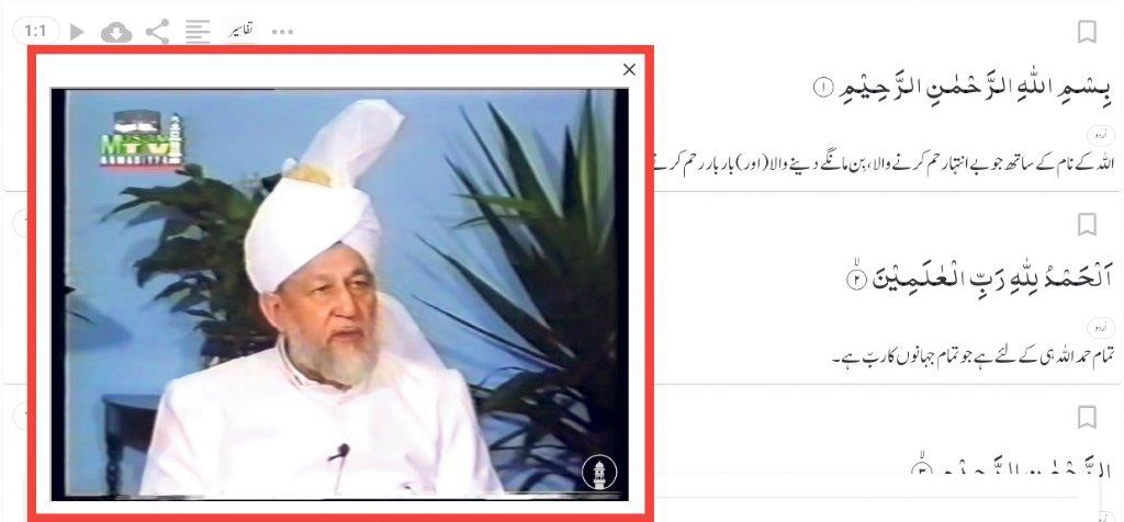 سیّد لبیب احمد جنودصاحب، مربی سلسلہ مرکزی ویب سائٹ الاسلام تحریر کرتے ہیں کہ اللہ تعا لیٰ کے فضل و کرم اور سیّدنا حضرت خلیفة المسیح الخامس ایّدہ اللہ تعا لیٰ بنصرہ العزیز کی مشفقانہ راہنمائی سےجماعت احمدیہ کی مرکزی ویب سائٹ alislam.org احبابِ جماعت کو قرآنِ کریم پڑھنے اور سمجھنے کے لیے ایک جامع، منفرد اور ممتاز ذریعہ پیش کرتی ہے۔ ویب سائٹ ([https://alislam.org/quran/app [ReadQuran.app)پر موجودآٹھ مختلف مترجمین کے تراجم، الصحیح البخاری ، التفسیر الکبیر [عربی] کے علاوہ اب حضرت خلیفة المسیح الرابعؒ کی ترجمة القرآن کلاسیں بھی شامل کر دی گئی ہیں۔ان کلاسز میں ۶۳۰۰؍ سے زائد آیات شامل ہیں۔ ویب سائٹ کے لنک (https://alislam.org/quran/app) پر جا کر سورة/آیت پر کلک کرنے سے مطلوبہ آیت کے ترجمہ/ تفسیر تک رسائی ممکن ہو گی۔ یہ ایپ tablet, laptop اور موبائل فون پر بھی دستیاب ہے۔ احباب جماعت سے اس سہولت سے زیادہ سے زیادہ استفادہ کی درخواست ہے۔