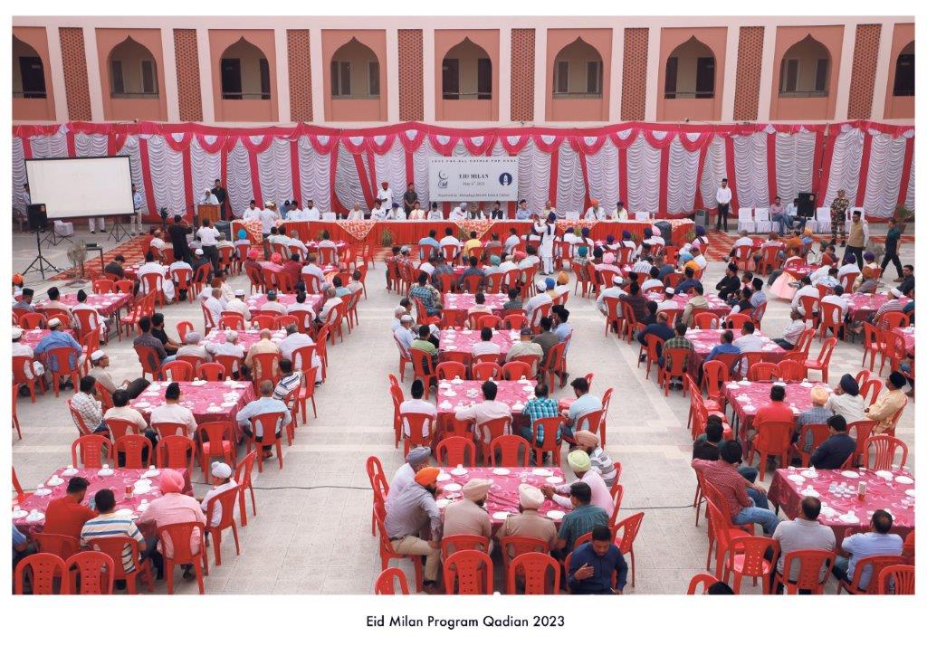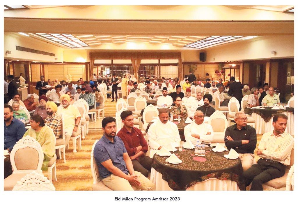 رمضان المبارک کے اختتام پر ہندوستان کے مختلف شہروں دہلی میں ۲۹؍ اپریل ۲۰۲۳ء، قادیان میں ۶؍ مئی ۲۰۲۳ء، ہوشیارپور میں ۷؍ مئی ۲۰۲۳ء اور امرتسر میں ۱۴؍ مئی ۲۰۲۳ء کو جماعت احمدیہ کی جانب سے عید ملن تقریبات منعقد کی گئیں جن میں عید الفطر کی خوشیوں میں بلاتفریق مذہب و ملت علاقہ کے معززین، اہم شخصیات، دوست و ہمسایوں کو مدعو کیا گیا۔ قادیان دارالامان ان تقریبات میںتلاوت قرآن مجید کے بعد جماعت کے نمائندہ نے صیام رمضان اور عید کے فلسفہ پر روشنی ڈالی۔ بعد ازاں ایک ڈاکومنٹری دکھائی گئی جس میں جماعت احمدیہ کا تعارف اور حضور انور ایدہ اللہ تعالیٰ بنصرہ العزیز کی قیام امن کے لیے کاوشوں کی تفصیل اور امن عالم کے قیام کے حوالہ سے ارشادات پیش کیے گئے۔ امرتسر ان تقریبات میں شامل ہونے والے معززین نے بھی اپنے نیک تاثرات اور جذبات کا اظہار کرتے ہوئے جماعت کی خدمات کو سراہا اور عید کی خوشیوںمیں شامل ہوتے ہوئے افرادِ جماعت کو عید کی مبارکباد بھی دی۔ اجتماعی دعا سے یہ تقریبات اختتام پذیر ہوئیں۔ اس پروگرام میں شامل مہمانان کرام کے لیے ضیافت کا بھی انتظام کیا گیا۔ ہوشیارپور مختلف اخبارات میں بھی ان تقریبات کی خبریں شائع ہوئیں جنہوں نے اس بات کا اظہار کیا کہ مذہبی یکجہتی اور ہم آہنگی کے لیے ایسے پروگرامز کے انعقاد کی بہت ضرورت ہے۔ نئی دہلی اللہ تعالیٰ ان پروگرامز کے نیک اور دوررس نتائج ظاہر فرمائے۔آمین (رپورٹ: شعبہ پریس اینڈ میڈیا بھارت)