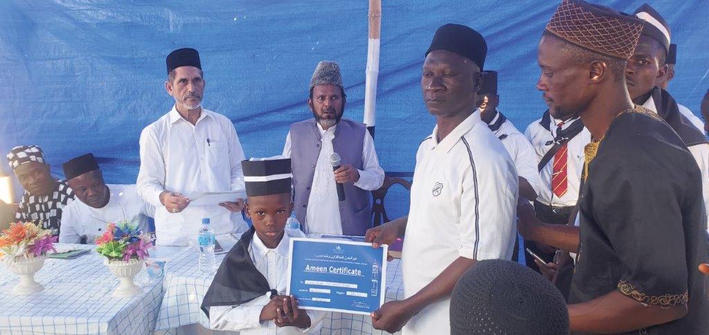 مکرم افتخار احمد گوندل صاحب مبلغ واٹر لو ریجن سیرالیون تحریر کرتے ہیں کہ مورخہ ۹؍جنوری ۲۰۲۳ء بروز سوموار جوٹاؤن (Joe Town) واٹر لوریجن میں مولانا سعید الرحمٰن صاحب مبلغ انچارج و نائب امیر اول سیرالیون کی زیر صدارت تقریب آمین منعقد ہوئی۔ Joe Town کی مسجد کے سامنے سائبان لگا کر کرسیوں پر بیٹھنے کا انتظام کیا گیا تھا اور لاؤڈ سپیکر کا انتظام تھا۔ تلاوت قرآن کریم و قصیدہ سے پروگرام کا آغاز ہوا۔ مولوی عبدل کروما صاحب نے مہمانان کرام کا تعارف اور جماعت ممبرز کا تعارف علی کروما صاحب نے کروایا اور عثمان بلا صاحب ہیڈ ماسٹر احمدیہ سکول جوٹاؤن نے ویلکم ایڈریس پیش کیا۔ بچوں نے کورس کی شکل میں نماز مکمل ترجمہ کے ساتھ، قرآن کریم کی دعائیں، آنحضرتﷺ اور حضرت مسیح موعود علیہ السلام کی چند دعائیں اور احادیث مع ترجمہ اسی طرح وعده اطفال و ناصرات، عہد لجنہ اماء اللہ اور خدام االاحمدیہ زبانی سنائے۔ اس کے بعد مکرم علیوسن بامبا صاحب نے حضرت مسیح موعود علیہ السلام کاعشق رسول ﷺ، مکرم عیسیٰ جوارا صاحب نے حضرت مسیح موعود علیہ السلام اور جماعت احمدیہ کا تعارف پر تقاریر کیں۔ علیوسن صاحب نے آیت استخلاف مع ترجمہ پیش کی۔ جس کے بعد مکرم مبلغ انچارج صاحب نے قرآن کریم کی عظمت اس سے پیار اور اس کو سیکھ کر اس پر عمل کرنے کی طرف توجہ دلائی اور جماعت احمدیہ کی اس طرف خاص توجہ اور مساعی کا ذکر کیا۔ بچوں کے والدین، جملہ حاضرین اور غیر از جماعت احباب کا بطور خاص شکریہ ادا کیا۔ آخر میں تمام طلبہ سے قرآن کریم سنا، اسناد پیش کیں اور انعامات بھی دیے گئے۔ جس پر بچوں کے والدین اور معززین نے بہت خوشی کا اظہار کیا۔ قرآن کریم کا پہلا دور مکمل کرنے والے کل ۲۵؍ طلبہ تھے۔ جن میں سات ناصرات، ایک ممبر لجنہ، گیارہ اطفال اور چھ خدام شامل ہیں۔ دعا کے ساتھ اس بابرکت تقریب کا اختتام ہوا اور نماز ظہر کی ادائیگی کے بعد جملہ حاضرین کی خدمت میں کھانا پیش کیا گیا۔ اس پروگرام میں واٹر لو ریجن کی نوجماعتوں سے ۳۷۰؍احباب سمیت سات غیر از جماعت ائمہ کرام اور ستّر غیر از جماعت احباب نے شرکت کی۔ (رپورٹ : ذیشان محمود۔مبلغ سلسلہ سیرالیون)