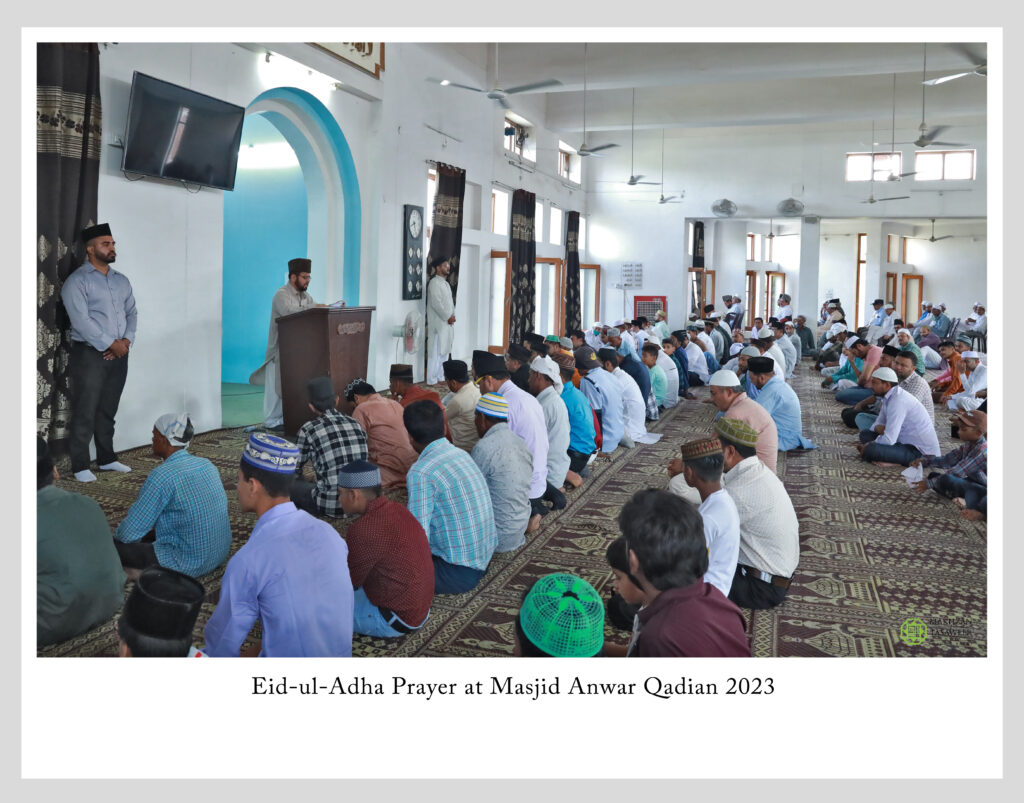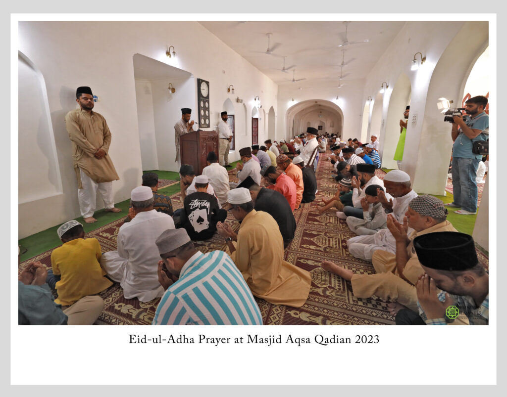 https://youtu.be/6G1WAjhdD0M قادیان دارالامان میں مورخہ ۲۹؍جون ۲۰۲۳ء بروز جمعرات عید الاضحی اپنی روایتی شان و شوکت کے ساتھ منائی گئی۔ صبح آٹھ بجے مسجد اقصیٰ قادیان میں محترم ناظر صاحب اصلاح و ارشاد مرکزیہ نے نماز عید پڑھائی ، عید کا خطبہ دیا اور اجتماعی دعا کروائی۔ مسجد اقصیٰ کے علاوہ قادیان کے مختلف محلہ جات کے چار مقامات پر نماز عید کا انتظام کیا گیا تھا جس میں کثیر تعداد میں افراد جماعت شامل ہوئے۔ ہر سال کی طرح امسال بھی قادیان کے مضافات سے مہمانان کرام کثرت سے عید الاضحی کی نماز میں شمولیت کے لیے قادیان تشریف لائے۔ ان کی تعداد کو مدنظر رکھتے ہوئے احمد یہ گراؤنڈ میں بھی عید کی نماز ادا کرنے کا وسیع انتظام کیا گیاتھا۔ قادیان کے مضافات سے تشریف لانے والے مہمانان کرام کے لیے نماز عید کے بعد لنگرخانہ حضرت اقدس مسیح موعود علیہ السلام کی طرف سے ضیافت کا بھی انتظام تھا۔ نماز عید سے فارغ ہو کر اہلیان قادیان اور مہمانان کرام کو مزار مبارک حضرت اقدس مسیح موعود علیہ السلام پر دعا اور مقاماتِ مقدسہ سے استفادہ کی بھی توفیق ملی۔ افراد جماعت نے عید الاضحی کے اس موقع پر قربانیاں بھی دیں۔ عید الاضحی کی مبارک باد دینے کے لیے علاقہ کے معززین، اہم شخصیات، سیاسی و سرکاری بالا افسران اور ہمسایہ افراد سرائے وسیم میں تشریف لائے اور جماعت کے نمائندگان کو مبارک باد پیش کرتے ہوئے اپنی نیک تمناؤں کا اظہار کیا۔ سرائے وسیم میں ان معززین کو عید کی خوشی میں شامل کرتے ہوئے ان کے لیے تواضع اور شیرینی کا اہتمام کیا گیا۔ عید کے روز سید نا حضرت امیر المومنین ایدہ اللہ تعالیٰ بنصرہ العزیز نے یوکے سے جو خطبہ عیدارشاد فرمایا، احباب جماعت نے مساجد میں جمع ہو کر اجتماعی طور پر حضور انور کے خطبہ عید کو سننے کا اہتمام کیا۔اللہ تعالیٰ اس عید کو تمام عالم اسلام کے لیے بابرکت فرمائے۔ آمین(رپورٹ: شعبہ پریس اینڈ میڈیا۔ بھارت)