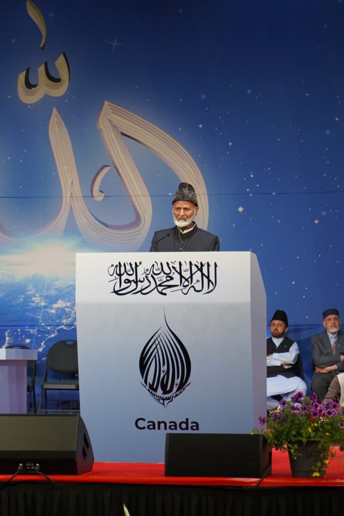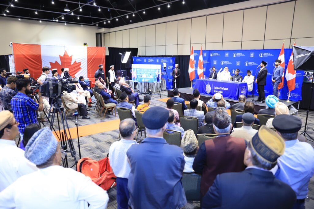 آج بتاریخ ۱۴؍جولائی ۲۰۲۳ء بروز جمعۃ المبارک جماعت احمدیہ کینیڈا کے ۴۵ویں جلسہ سالانہ کا پہلا روز ہے۔ یہ جلسہ کینیڈا کے سب سے بڑے شہر ٹورانٹو سے مُتَّصِل مِسسِّی ساگا شہر کے معروف انٹرنیشنل سنٹر میں منعقد ہورہا ہے۔ انٹرنیشنل سنٹر بنیادی طور پر بہت بڑی تقریبات، نمائشوں اور تجارتی میلوں کے لیے استعمال ہوتا ہے۔ یہ ٹورانٹو پیئرسن انٹرنیشنل ائرپورٹ کے بالمقابل ائرپورٹ روڈ پر واقع ہے جس سے دوسرے ممالک اور دوردراز کے شہروں سے آنے والے شاملین کو بہت سہولت رہتی ہے۔ نیز ٹورانٹو، مسسی ساگا، برمپٹن جیسے قریبی شہروں کے لیے مقامی بسوں اور صوبہ اونٹاریو کے دیگر شہروں سے GO ٹرین کے ذریعہ عوام بغیر کسی دِقت کے ان پروگراموں میں شامل ہوسکتے ہیں۔ آج دن کا آغاز صبح چار بجے مقامی مساجد میں باجماعت نمازِ تہجد سے ہوا جس کے بعد پونے پانچ بجے نماز فجر ادا کی گئی نیز درس دیے گے۔ جلسہ گاہ کو گذشتہ ایک ہفتہ سے جلسہ کے لیے تیار کیا جارہا تھا اور آج بھی صبح سے سینکڑوں رضاکار جلسہ گاہ کے اندر اور باہر ہر چیز دوبارہ اور سہ بارہ چیک کررہے ہیں کہ کوئی کمی نہ رہ جائے۔ کار پارکنگ کا وسیع انتظام ہے۔ سینکڑوں رضاکار مختلف شعبوں میں ڈیوٹی دے رہے ہیں۔ تمام شاملین کے لیے کھانا مشن ہاؤس سے ملحقہ لنگرخانہ سے تیار ہوکر ٹرکوں میں انٹرنیشنل سنٹر آتا ہے۔ جہاں پر اس کے معیار کو چیک کیا جاتا ہے کہ آیا وہ مقامی قوانین کے تمام تقاضوں پر پورا اترتا ہے۔ مہمانوں کی آمد گیارہ بجے سے ہی شروع ہوگئی تھی۔ 12:25 پر نمازِ جمعہ کے لیے پہلی اذان دی گئی جبکہ اس کے معاً بعد حضرت خلیفۃ المسیح الخامس ایدہ اللہ تعالیٰ بنصرہ العزیز کا آج کا خطبہ جمعہ جو ٹورانٹو کے وقت کے مطابق صبح آٹھ بجے براہِ راست نشر ہوا تھا، کو حاضرین کے لیے دوبارہ دکھایا گیا۔ ڈیڑھ بجے مولانا عبدالرشید انور صاحب مشنری انچارج کینیڈا نے خطبہ جمعہ اِرشاد فرمایا اور نمازِ جمعہ پڑھائی۔ جس کے بعد احبابِ جماعت کھانے کے لیے ہال نمبر ۴ میں تشریف لے گئے۔ دریں اثناء جلسہ گاہ میں ایک پریس کانفرنس کا انتظام بھی کیا گیا تھا جس میں مقامی اور قومی ٹی وی چینلز، ریڈیو اسٹیشنز اور اخبارات کے نمائندوں نے شرکت کی۔ مکرم لال خان ملک صاحب امیرجماعت کینیڈا، مکرم محمد شریف عودہ صاحب امیر جماعت ارضِ مقدس (فلسطین و اسرائیل)، مولانا عبدالرشید انور صاحب مشنری انچارج کینیڈا اور مکرم آصف خان صاحب نیشنل سیکرٹری امورِ خارجیہ نے سوالات کے جوابات دیے۔ افتتاحی اجلاس شام پانچ بجے مرکزی نمائندہ مکرم محمد شریف عودہ صاحب نے لوائے احمدیت جبکہ مکرم امیر صاحب کینیڈا نے کینیڈین پرچم لہرایا۔ آج کے پہلے اجلاس کا باقاعدہ آغاز مولانا داود احمد حنیف صاحب پرنسپل جامعہ احمدیہ کینیڈا کی زیر صدارت تلاوتِ قرآن کریم سے ہوا۔ مکرم حافظ راحت چیمہ صاحب نے سورۃ الانعام کی آیات ۹۶ تا ۱۰۰ کی تلاوت کی جس کا انگریزی ترجمہ مکرم طاہر مظہر صاحب نے کیا۔ مکرم توفیق احمد صاحب نے حضرت مسیح موعود علیہ السلام کا منظوم کلام کس قدر ظاہر ہے نور اُس مبدءالانوار کا بن رہا ہے سارا عالم آئینہ ابصار کا ترنم سے سنایا جس کا انگریزی ترجمہ مکرم نایاب احمد چھٹہ نے کیا۔ مکرم امیر صاحب کینیڈا نے اپنے مختصر افتتاحی کلمات میں جلسہ سالانہ کی غرض وغایت بیان کرتے ہوئے نصحیت کی کہ ہمیں چاہیے کہ ان بابرکت ایام میں زیادہ سے زیادہ باجماعت نمازیں ادا کریں، فارغ اوقات میں تسبیح اور درود شریف کا وردّ کرتے رہیں، سلام میں پہل کریں، اپنا محاسبہ کرتے رہیں اور دُعائیں کرتے رہیں۔ اور سب سے بڑھ کر یہاں سے سیکھی ہوئی باتیں واپس جاکر اپنے عزیزو اقارب کو سکھائیں اور اپنی زندگیوں پر مستقل طور پر لاگو کریں۔ حضرت مسیح موعود علیہ السلام نے شاملینِ جلسہ کے لیے بہت دُعائیں کی ہیں اور اس جلسہ میں شامل ہوکر ہم بھی ان خوش نصیب لوگوں کی صف میں کھڑے ہوگئے ہیں جن پر یہ دعائیں لاگو ہوتی ہیں۔ مکرم امیر صاحب کے افتتاحی کلمات کے بعد مکرم نوید احمد منگلا صاحب مربی سلسلہ نے ’’خلافتِ احمدیہ کے ذریعہ توحید 