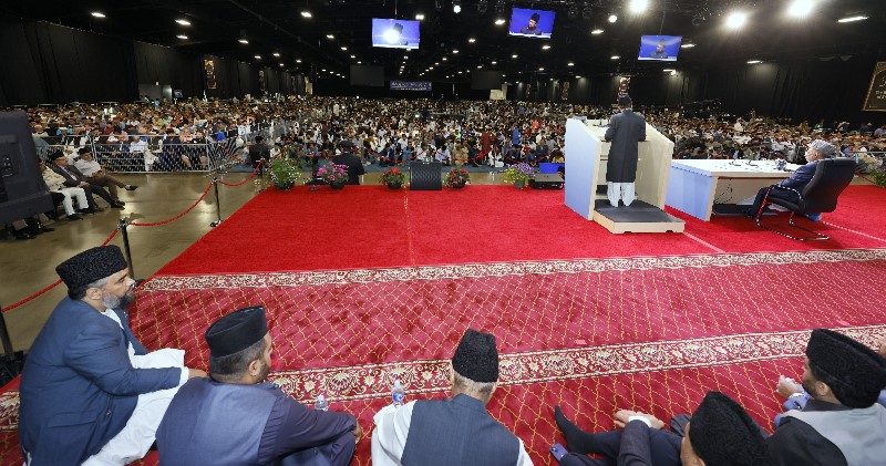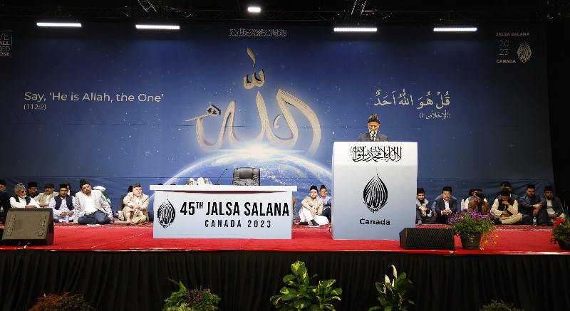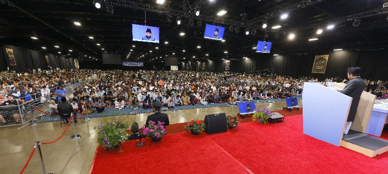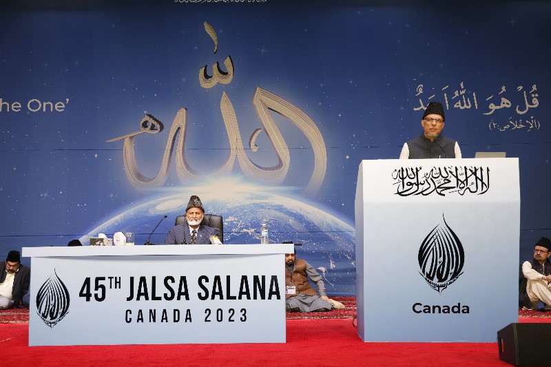 آج بتاریخ ۱۶؍ جولائی ۲۰۲۳ء بروز اتوار جماعت احمدیہ کینیڈا کے ۴۵ویں جلسہ سالانہ کا تیسرا اور آخری روز ہے۔ حسبِ معمول آج دن کا آغاز صبح چار بجے مقامی مساجد میں باجماعت نمازِ تہجد سے ہوا جس کے بعد پونے پانچ بجے نماز فجر ادا کی گئی نیز درس دیے گے۔ جلسہ سالانہ کا چوتھا و اختتامی اجلاس جلسہ سالانہ کینیڈا کا چوتھا اور آخری اجلاس مکرم لال خان ملک صاحب امیر جماعت کینیڈا کی زیر صدارت صبح گیارہ بجے شروع ہوا۔ مکرم حافظ عطاء الوہاب صاحب مربی سلسلہ نے قرآن کریم کی سورۃ النور کی آیات ۵۵ تا ۵۷ کی تلاوت سے اجلاس کا آغاز کیا۔ جس کا انگریزی ترجمہ مکرم طہٰ احمد صاحب جبکہ اردو ترجمہ مکرم عبدالنور عابد صاحب مربی سلسلہ نے پیش کیا۔ مکرم سید مبشر احمد صاحب نے حضرت مسیح موعود علیہ السلام کا نعتیہ منظوم کلام وہ پیشوا ہمارا جس سے ہے نُور سارا نام اُس کا ہے محمدؐ دلبر مرا یہی ہے ترنم سے پیش کیا جس کا انگریزی ترجمہ مکرم طاہر میاں صاحب متعلم جامعہ احمدیہ نے پڑھا۔ آج کی پہلی تقریر انگریزی زبان میں ’’قرآن : نسلِ انسانی کے لیے راہنمائی‘‘ کے عنوان پر تھی جو مکرم عمیر خان صاحب مربی سلسلہ نے کی۔ اس کے بعد مکرم نجیب اللہ ایاز صاحب مربی سلسلہ نے ’’شہدائے بورکینا فاسو: احمدیت کے درخشندہ ستارے‘‘ کے موضوع پر اردو میں تقریر کی۔ انہوں نے بورکینا فاسو میں شہید ہونے والے احمدی بھائیوں کا تفصیلی ذکر کیا اور ان کی حضرت مسیح موعود علیہ السلام سے وفا اور ایمان کی مضبوطی کوبڑی تفصیل سے بیان کیا۔ اس سے اگلی تقریر مکرم شاہد منصور صاحب نیشنل سیکرٹری تربیت کی تھی جس کا موضوع تھا ’’لالچ اور خود غرضی کے خلاف جہاد۔ وقت کی اہم ضرورت‘‘۔ مولانا ہادی علی چوہدری صاحب نائب امیر جماعت کینیڈا نے ’’ناموسِ رسالت کے حقیقی تقاضے‘‘ کے عنوان پر حاضرینِ جلسہ سے خطاب کیا۔ انہوں نے قرآن و حدیث کی روشنی میں ثابت کیا کہ رسولِ اللہ ﷺ کی ناموس کو کسی انسانی کوشش سے گزند نہیں پہنچ سکتا۔ اس کے بعد ’’حضرت مسیح موعود علیہ الصلوٰۃ والسلام کا نصرتِ خداوندی پر کامل یقین‘‘ کے موضوع پر مکرم عبدالحمید وڑائچ صاحب صدرمجلس انصاراللہ کینیڈا نے تقریر کی۔ جلسہ کے اختتامی خطاب سے پہلے مکرم امیر صاحب نے پیارے امام حضرت خلیفۃ المسیح الخامس ایدہ اللہ تعالیٰ بنصرہ العزیز کا خصوصی پیغام پڑھ کر سنایا جو حضورِ انور شاملینِ جلسہ کے لیے ارسال فرمایاتھا۔ اختتامی دُعا سے قبل مکرم امیر صاحب نے یاددہانی کروائی کہ احباب جماعت حضرت امیرالمومنین ایدہ اللہ تعالیٰ بنصرہ العزیز کے لیے خاص دُعا کریں، فلسطین کے مظلوم مسلمانوں کے لیے دُعا کریں کہ اللہ تعالیٰ اس ارضِ مقدس کے لیے جو بہترین حل ہے وہ ظاہر کرے نیز شہدائے احمدیت اور ان کے خاندانوں کے لیے، اسیران کے لیے، واقفینِ زندگی کے لیے، تمام بیماروں کے لیے، مختلف ممالک میں پھنسے ہوئے مہاجرین کے لیے، جلسہ کے کارکنان کے لیے اور تمام ضرورتمندوں کے لیے خصوصی دُعا کریں۔اللہ تعالیٰ سب کا حامی و ناصر ہو۔ دُعا کے بعد نمازِ ظہر و عصر ادا کی گئی جس کے بعد احبابِ جماعت نے کھانے کے لیے دوسرے ہال اور مارکیوں میں تشریف لے گئے۔ اجلاس مستورات لجنہ کی جلسہ گاہ میں افتتاحی اور اختتامی اجلاس کی کارروائی مردانہ جلسہ گاہ سے براہ راست دکھائی جاتی رہی تاہم ہفتہ کے روز جلسہ کا تیسرا اجلاس مستورات کے اپنے ہال میں منعقد ہوا۔ اس اجلاس کی صدارت مکرمہ بی بی امتہ الجمیل صاحبہ بنت حضرت مصلح موعود رضی اللہ تعالیٰ عنہ نے فرمائی۔ اجلاس کا آغاز تلاوتِ قرآن کریم مع ترجمہ سے ہوا جس کے بعد نظم پیش کی گئی جس کا انگریزی میں ترجمہ پڑھا گیا۔بعد ازاں ڈاکٹر نورین سہیل صاحبہ نائب صدر لجنہ اماء اللہ کینیڈا نے ’’قربِ الٰہی کے حصول کے طریقے‘‘ کے عنوان پر انگریزی میں تقریر کی۔ جبکہ محترمہ امتہ الرفیق ظفر صاحبہ اعزازی ممبر نیشنل عاملہ کینیڈا نے ’’آنحضرت ﷺ کی مؤمنات کو ہدایات‘‘ کے موضوع پر اردو میں تقریر کی۔جس کے بعد حضرت مسیح موعود علیہ السلام کا تحریرکردہ قصیدہ مع ترجمہ سنای