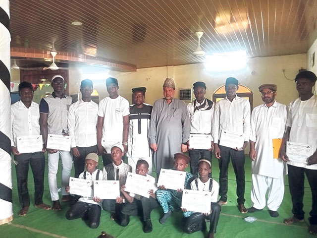 https://youtu.be/YPjBDF0RNQU برکینا فاسو کے ریجن واگا میں ۲۴؍ جون ۲۰۲۳ء کو تقریب آمین منعقد کرنے کی تو فیق ملی۔ تقریب کا آغاز امیر صاحب برکینا فاسو کی زیر صدارت تلاوت قرآن کریم و نظم سے ہوا ۔ اس کے بعد نیشنل سیکرٹری تعلیم القرآن و وقف عارضی نے خدام اور اطفال سے قرآن کریم کا کچھ حصہ سنا اور لجنہ کی طرف امیر صاحب کی اہلیہ محترمہ نے لجنہ اور ناصرات سے قرآن سنا اور پھر تمام قرآن ختم کرنے والوں کو اسناد دی گئیں۔تقریب کے آخر پر امیر صاحب نے تمام حاضرین کو قرآن کی تکریم اور اس کی خوبیوں کے بارے میں بتایا اور اس کی تلاوت کی طرف توجہ دلائی اور اس کے بعد تمام حاضرین کی طعام سے ضیافت کی گئی ۔اس تقریب میں شاملین کی تعداد جن کی آمین کی گئی کچھ اس طرح رہی:پینتیس لجنہ ، دو ناصرات ، نو خدام، پانچ اطفال۔تقریب میں کُل شاملین کی تعداد ۱۷۵؍رہی۔ (رپورٹ: ناصر اقبال۔ ریجنل مبلغ واگا ڈوگو)