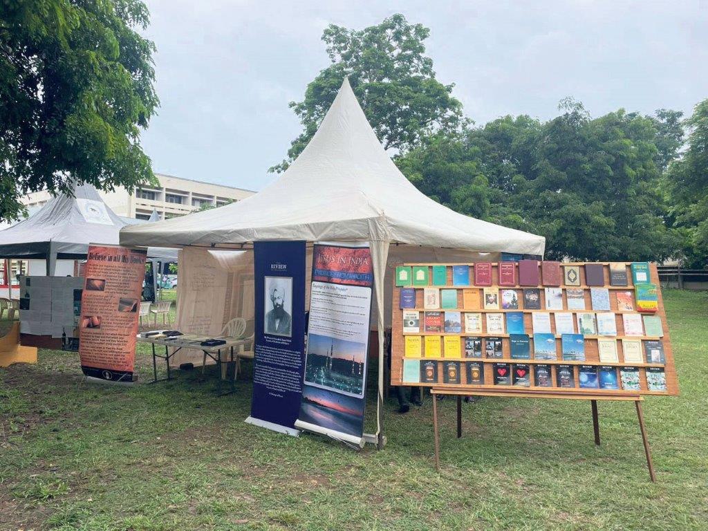 https://youtu.be/IWLSApveQQY کیپ کوسٹ کے احمدی طلبہ نے مورخہ ۲۲ اور۲۳؍جون۲۰۲۳ء کوجماعتی کتب کا ایک تبلیغی سٹال لگایا۔یہ سٹال صبح نوبجے سے چار بجے سہ پہر تک لگا رہا۔ سٹال پر جماعتی بینرز کے علاوہ حضر ت مسیح موعودؑ کی ایک خوبصورت تصویر بھی آویزاں تھی۔ غیر احمدی اور عیسائی طلبہ نے اس نمائش کا وزٹ کیا اور بعض طلبہ نے سوالات بھی پوچھے جن کے تسلی بخش جواب دیے گئے۔ ابورا کے زونل مشنری مکرم عبد الحمید سویری صاحب، گھانا میں ریویو آف ریلیجنز کے نمائندہMaulvi Agyemang Gyesi اور سرکٹ مشنری مکرم معلم احمد بواہنگ صاحب نے بھی اس پروگرام میں شرکت کی اور زائرین کے سوالوں کے جواب دیے۔ رپورٹ کے مطابق چار سو طلبہ نے نمائش کا وزٹ کیا۔آنے والے طلبہ نےاسلام احمدیت کے بارہ میں سوالا ت بھی کیے۔ بعض طلبہ نے اسلام احمدیت کے بارہ میں مزید جاننے میں دلچسپی ظاہر کی۔ (رپورٹ: فہیم احمد خادم، نمائندہ الفضل انٹر نیشنل گھانا)