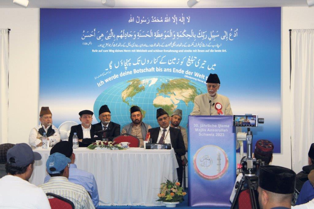 https://youtu.be/V43lpqaiEY0 محض اللہ کے فضل سے مجلس انصار اللہ سوئٹزرلینڈ کا تیسواں سالانہ اجتماع مورخہ۲۴ و ۲۵؍جون ۲۰۲۳ء بروز ہفتہ اتواراپنی تمام اسلامی و جماعتی روایات کے ساتھ نور مسجد ویگولٹینگن کے ملحقہ ہال میں منعقد ہوا۔ پہلے روز احباب کی حاضری ۷۸؍ جبکہ دوسرے روز ۹۹؍ رہی۔ جبکہ۶۰؍ کنیکشنز پر آن لائن بھی دیکھا گیا۔ مکرم ملک عارف محمود صاحب صدر مجلس انصار اللہ نے جنوری میں مکرم اویس احمد طاہر صاحب کو ناظم اعلیٰ مقرر کیا۔ اجتماع سے قبل دو دفعہ وقار عمل کے ذریعے اجتماع گاہ کو سجایا گیا۔ پہلے روز اجتماع کا آغاز صبح ساڑھے دس بجے پرچم کشائی کی تقریب سے ہوا۔ ملک عارف محمود صاحب صدر مجلس انصار اللہ سوئٹزرلینڈ نے سوئٹزرلینڈ کا قومی پرچم جبکہ مہمان خصوصی مکرم و محترم عطاء المجیب راشد صاحب امام مسجد فضل لندن نے لوائے انصار اللہ لہرایا جس کے بعد آپ نے دعا کروائی۔ اس کے بعد افتتاحی تقریب کا آغاز محترم مہمان خصوصی کی صدارت میں ہوا۔ تلاوت،عہد اور نظم کے بعد محترم صدر صاحب مجلس انصار اللہ نے اپنے خطاب میں انصار کو ان کی ذمہ داریوں کی طرف توجہ دلائی۔ جس کے بعد مکرم ولید طارق تار نتسر صاحب نیشنل امیر جماعت سوئٹزرلینڈ نے افتتاحی تقریر کی جس میں انہوں نے انصار کو اپنی ذمہ داریاں احسن رنگ میں ادا کرنے کی تلقین کی۔ آخر پر محترم امیر صاحب نے دعا کروائی۔ دعا کے بعد تلاوت، نظم اور تقاریر کے مقابلہ جات ہوئے۔ دوپہر کے کھانے اور نماز ظہر و عصر کی ادائیگی کے بعد سہ پہر تین تا چھ بجے موحل ہائم کےسیکنڈری سکول کے ہال اور میدان میں ورزشی مقابلہ جات ہوئے۔ ورزشی مقابلہ جات کے بعد سات بجے شام نور ہال میں بیت بازی کا دلچسپ مقابلہ ہوا۔ بیت بازی کے بعد محترم مہمان خصوصی کے ساتھ ایک محفل کا انعقاد کیا گیا۔ جس میں انہوں نے اپنا منظوم کلام سناتے ہوئے خوب داد وصول کی۔ اجتماع کے دوسرے روز کا آغاز نماز تہجد، نماز فجر و درس و تلاوت سے ہوا۔ صبح ناشتہ کے بعد موحل ہائم کےسیکنڈری سکول کے ہال اور میدان میں بقیہ ورزشی مقابلہ جات منعقد ہوئے۔ ورزشی مقابلہ جات کے بعد نور ہال میں بقیہ علمی مقابلہ جات ہوئے۔ جس کے بعد محترم مہمان خصوصی کی صدارت میں تلقین عمل کے موضوع پر اجلاس منعقد ہوا۔ تلاوت قرآن کریم مع اردو و جرمن ترجمہ کے بعد مکرم عبدالخالق صاحب اسسٹنٹ پرائیویٹ سیکرٹری (انصار سیکشن)اور محترم مہمان خصوصی نے تقریر کی۔ دوپہر کے کھانے اور نمازوں کی ادائیگی کے بعد اجتماع کا اختتامی اجلاس محترم مہمان خصوصی کی صدارت میں شروع ہوا۔ تلاوت قرآن کریم مع اردو و جرمن ترجمہ، عہد اور نظم کے بعد محترم صدر صاحب مجلس انصار اللہ نے مہمان خصوصی کا تعارف پیش کیا۔ مکرم اویس احمد طاہر صاحب ناظم اعلیٰ نے اجتماع کی رپورٹ پیش کی۔ رپورٹ کے بعد محترم مہمان خصوصی نے علمی اور ورزشی مقابلہ جات میں نمایاں کامیابی حاصل کرنے والے انصار میں انعامات تقسیم کیے۔اس کے بعد محترم مہمان خصوصی نے اپنی اختتامی تقریر میں خلافت سے وابستہ رہنے کی تلقین کی اور اختتامی دعا کروائی۔ اختتامی دعا کے معاً بعد مرکزی مہمان خصوصی کے ساتھ اجتماع کی انتظامیہ کےگروپ فوٹوز ہوئے۔ محترم صدر صاحب مجلس انصار اللہ نے مہمان خصوصی کی خدمت میں یاد گیری شیلڈ پیش کی۔ (صبا ح الدین بٹ۔نمائندہ روزنامہ الفضل انٹرنیشنل سوئٹزرلینڈ)