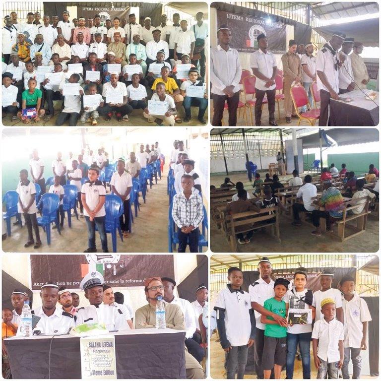 https://youtu.be/fO2HUzrAlXA محض اللہ تعالیٰ کے فضل و کرم سے مجلس خدام الاحمدیہ علاقہ آبی جان (Abidjan)، آئیوری کوسٹ (Côte d‘Ivoire)کو اپنی سالانہ ریجنل تربیتی کلاس مورخہ ۱۶ تا ۲۱؍ جولائی۲۰۲۳ء بروزاتوار تا جمعۃ المبارک منعقد کرنے کی سعادت نصیب ہوئی۔ تربیتی کلاس کے انعقاد کے فوراً بعد ہی ریجنل سالانہ اجتماع کا بھی انعقاد کیا گیا جو کہ مورخہ ۲۲ و۲۳؍ جولائی بروز ہفتہ و اتوار منعقد کیا گیا۔تربیتی کلاس و اجتماع کا انعقاد آبی جان میں واقع جماعتی جگہ مہدی آباد میں کیا گیا۔ سالانہ ریجنل تربیتی کلاس مورخہ ۱۶؍ جولائی کو خدام و اطفال کی آمد کا سلسلہ شروع ہوا۔ تربیتی کلاس کے انعقاد سے قبل کلاس کے لیے ایک نصاب مقرر کیا گیا جس کے مطابق روزانہ کی بنیاد پر کلاسز کا انعقاد کیا جاتا رہا۔تیس منٹ کے ہر سیشن میں مختلف موضوعات کے متعلق شاملین کو معلومات فراہم کی جاتی رہیں۔ بروز سوموار تربیتی کلاس کا آغاز صبح آٹھ بجے ہوا۔اس دن قاعدہ یسرنا القرآن، حدیث، تلاوت قرآن کریم، سیرت و سوانح حضرت محمد مصطفیٰﷺ،اسلام، احمدیت، مذہبی معلومات نیز نماز سادہ و باترجمہ کے سیشنز کا انعقاد ہوا۔ جب کہ باقی ایام میں بھی ان مضامین کے علاوہ دیگر مثلاً سیرت وسوانح حضرت مسیح موعودؑ، تعارف مجلس خدام الاحمدیہ،نظام جماعت احمدیہ،چندہ کا نظام نیزجنرل نالج وغیرہ جیسے مضامین تربیتی کلاس کے نصاب کا حصہ رہے۔جبکہ ان ایام میں روزانہ پنجوقتہ نماز کے ساتھ ساتھ باجماعت نماز تہجد کا بھی اہتمام کیا جاتا رہا نیز مختلف مواقع پر دروس بھی اس پروگرام کا حصہ رہے۔ جبکہ نماز عصر کے بعد ورزشی مقابلہ جات بھی کروائے جاتے رہے۔بروز جمعۃ المبارک تربیتی کلاس کے شاملین نے پڑھائے گئے مضامین کا امتحان دیا اور پرچہ جات کی چیکنگ بھی اسی روز مکمل کر لی گئی۔تربیتی کلاس میں مکرم سماکے محمد صاحب(Samake Mouhammad) معلم سلسلہ، عبدالرحمان وترا صاحب معلم سلسلہ نیز شمس الدین صاحب معلم سلسلہ نے خدمات سر انجام دیں۔ پہلا سالانہ اجتماع مورخہ ۲۲؍ جولائی بروز ہفتہ سالانہ ریجنل اجتماع کا اہتمام کیا گیا۔صبح آٹھ بجے ہی دیگر خدام و اطفال کی آمد کا سلسلہ بھی شروع ہو گیا۔ صبح نو بجے لوائے خدام الاحمدیہ لہرانے کے ساتھ ہی اجتماع کا باقاعدہ آغاز ہوا۔اس پروگرام کی صدارت مکرم جابی مصطفیٰ صاحب (Djiabi Moustafa)نیشنل صدرمجلس خدام الاحمدیہ نے کی۔تلاوت، فرانسیسی ترجمہ، عہد، قصیدہ کے بعد قائد صاحب علاقہ نے تقریر کی۔ ان کے بعد مکرم جابی مصطفیٰ صاحب نیشنل صدر خدام الاحمدیہ نے تقریر کی اور دعا کروائی جس کے بعد باقاعدہ مقابلہ جات کا آغاز ہوا۔ سب سے اول خدام واطفال کے علمی مقابلہ جات کا اہتمام کروایا گیا۔نماز ظہر وعصر کی باجماعت ادائیگی کے بعد تک ان علمی مقابلہ جات جاری رہے۔ شام چار بجے سے ورزشی مقابلہ جات کا سلسلہ شروع ہوا جس کا سلسلہ نماز مغرب و عشاء کے ساتھ ختم ہوا۔ اجتماع کے دوسرے دن کا آغاز باجماعت نماز تہجد و فجر و درس سے ہوا۔درس مکرم دامبیلےمحمد صاحب (Dembele Mamadou) نے دیا۔ جس کے بعد بقیہ ورزشی مقابلہ جات کا اہتمام کیا گیا۔اور ناشتہ کے بعد نو بجے صبح اجتماع کے دوسرے سیشن کا آغاز ہوا۔تلاوت، فرانسیسی ترجمہ، عہد کے بعد قصیدہ حضرت مسیح موعودؑ پیش کیا گیا۔جس کے بعد اجتماع کے عنوان ’نوجوان نسل اور جوئے کے بد اثرات‘ پر مکرم سنگارے محمد صاحب(Sangare Mamadou) نے تقریر کی۔ جس کے بعد مہمانان کرام نے مختصر خطاب کیے جن میں ڈاکٹر احمد کولیبالی صاحب(Dr. Ahmed Coulibaly) نے چونکہ حال ہی میں فریضہ حج ادا کیا تھا چنانچہ انہوں نے حج کے دوران پیش آنے والے ایمان افروز واقعات کا ذکر کیا اور مکرم رافع احمد تبسم صاحب (Rafe Ahmed Tabassum)مبلغ سلسلہ ابوبو نے مجلس خدام الاحمدیہ کے قیام کی اغراض اور سچ بولنے کی عادت پر تقریر کی۔ان تقاریر کے بعد تقریب تقسیم انعامات کا انعقاد کیا گیا۔اس دوران تربیتی کلاس کے سب شاملین کو سند شرکت سے نوازا گیا۔جبکہ پہلی تین پوزیشنز والے خدام واطفال کو سند حسن کارکردگی سے نوازا گیا۔ خدام میں بالترتیب پہلی تین پوزیشنز مکرم سلووئے مسرور احمد(Silué Ma