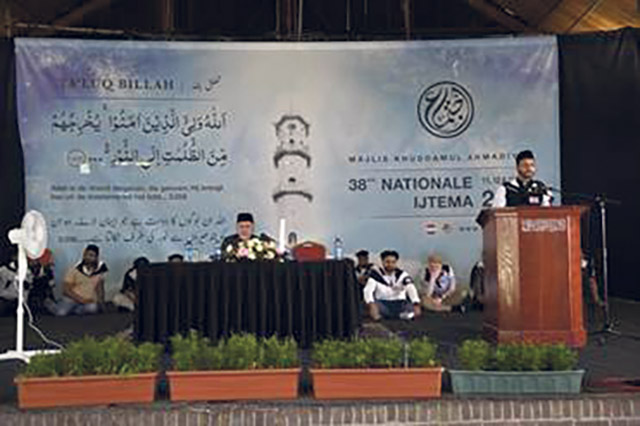 اللہ تعالیٰ کے فضل سے مجلس خدام الاحمدیہ ہالینڈ کو اپنا ۳۸واں سالانہ اجتماع مورخہ ۱۱تا۱۳؍ اگست ۲۰۲۳ء فیئر ہاوتن میں منعقد کرنے کی توفیق ملی۔ اس سال اجتماع کا موضوع ’’تعلق باللہ‘‘ تھا ۔ اجتماع کا پہلا دن: گیارہ بجے کے قریب خدام کی رجسٹریشن شروع ہوئی۔ کھانے کے بعد خدام نے نماز جمعہ ادا کی اور ہال میںحضور انور ایدہ اللہ تعالیٰ بنصر ہ العزیز کا خطبہ جمعہ سنا۔ پرچم کشائی کے دوران مکرم امیر صاحب ہالینڈ نے ہالینڈ کا جھنڈا اور صدر صاحب مجلس خدام الاحمدیہ نے لوائے خدام الاحمدیہ لہرایا۔ اس کے بعد دعا کے ساتھ اجتماع کا باقاعدہ آغاز ہوا۔ پہلے اجلاس کا آغاز تلاوت قرآن کریم، عہد اور نظم سے ہوا۔ صدر صاحب نے اپنی گذارشات پیش کیں اور دعا کے بعد کھیلوں کےاور علمی مقابلہ جات منعقد ہوئے۔ کھیلوں کے مقابلہ جات میں دوڑ ۱۰۰؍ میٹر،ثابت قدمی، کلائی پکڑنا اور ریلے ریس تھے۔ شام کے کھانے کے بعد ایک تربیتی سیمینار منعقد کیا گیا جس کا موضوع ’’دین کو دنیا پر مقدم رکھنا ‘‘ تھا۔ اس سیمینار میں مختلف سوالات جو آج کل اکثر خدام کے ذہنوں میں اٹھتے رہتے ہیں کے جوابات دیے گئے۔یہ پروگرام بہت معلوماتی تھا اور دلچسپی کا باعث رہا ۔نماز مغرب و عشا٫کی ادائیگی کے ساتھ اجتماع کے پہلے دن کا اختتام ہوا۔ اجتماع کا دوسرا دن: اجتماع کے دوسرے دن کا آغاز تہجد،نماز فجر اور درس سے ہوا ۔ناشتہ کے بعد علمی مقابلہ جات منعقد ہوئے۔ جن میں تقریر،تقریر فی البدیہہ اور اذان کے مقابلے ہوئے۔ دوپہر کے کھانے اور نماز ظہر و عصر کے بعد علمی اور ورزشی مقابلہ جات جاری رہے۔ ورزشی مقا بلہ جات میں رسہ کشی،فرسبی اورfittest khadim کا مقابلہ ہوا۔ اس کے علاوہ علمی مقابلہ جات میں مقابلہ پیغام رسانی، مقابلہ مشاہدہ معائنہ اور مقابلہ کسوٹی منعقد ہوئے۔ شام کو ایک تربیتی پروگرام میں مبلغ انچارج صاحب نے تعلق باللہ کے موضوع پر اپنی گذارشات پیش کیں نیز خدام کو نماز باجماعت اور نماز جمعہ پڑھنے کی طرف توجہ دلائی۔ کھانے کے بعد خدام نے جماعت سے تعلق کے بارے میں اپنے ذاتی واقعات بیان کیے، شعر وشاعری سنائی۔ نماز مغرب و عشا٫کی ادائیگی سے اجتماع کے دوسرے دن کا اختتام ہوا۔ اجتماع کا تیسرا دن: اجتماع کے تیسرے دن کا آغاز تہجد،نماز فجر اور درس سے ہوا ۔ناشتہ کے بعد ورزشی مقابلہ جات فرسبی اور فٹسٹ خاد م کے مقابلہ جات مکمل ہوئے۔اس کے بعد معتمد صاحب نے گذشتہ سال کی کارگزاری کی رپورٹ پیش کی۔بعدازاں علمی اور ورزشی مقابلہ جات میں دوسری اور تیسری پوزیشن حاصل کرنے والے خدام میں انعامات تقسیم کیے گئے۔دوپہر کے کھانے کے بعد نماز ظہر و عصر ادا کی گئیں۔ اختتامی اجلاس: تلاوت،عہد اور نظم کے بعد صدر صاحب مجلس خدام الاحمدیہ نے اجتماع کی رپورٹ پیش کی۔ پھر علمی اور ورزشی مقابلہ جات میں پہلی پوزیشن حاصل کرنے والے خدام میں مکرم امیر صاحب نے انعاما ت تقسیم کیے۔ اس سال عَلَم انعامی کا بھی انعام رکھا گیا تھا۔ امسال علم انعامی کی حق دار مجلس المیرے باوتن رہی۔ مکرم امیر صاحب نے خدام کو سورة الفاتحہ کے بارے میں حضرت مسیح موعودؑکے ارشادات کی روشنی میں نصائح کیں۔اس کے بعد مکرم مشنری انچارج صاحب نے بھی کچھ نصائح کیں اور دعا کروائی ۔ اس طرح سے اجتماع بخیروخوبی اپنے اختتام کو پہنچا ۔ اس اجتماع میں کُل ۴۶۰؍ خدام نے شرکت کی۔ (رپورٹ: عدیل باسم۔ نمائندہ الفضل انٹرنیشنل)
