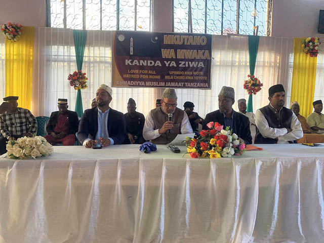 https://youtu.be/5jGzLwsb-aw مکرم احتشام لطیف صاحب ریجنل مبلغ شیانگا تحریر کرتے ہیں کہ مورخہ ۵؍جولائی ۲۰۲۳ء کو شیانگا ریجن کا زونل جلسہ سالانہ KAGONGWA جماعت میں منعقد کیا گیا۔ ۵؍ جولائی کو عصر کےبعدجلسہ سالانہ کے پہلے سیشن کا آغاز مکرم طاہر محمود چودھری صاحب امیر جماعت تنزانیہ کی صدارت میں شروع ہوا۔ تلاو ت و نظم کے بعد امیر صاحب نے افتتاحی تقریر میں جلسہ کی غرض و غایت سے احباب جماعت کو آگاہ کیا۔ مورخہ ۶؍جولائی کو دن کا آغاز نمازِ تہجد باجماعت ، نماز فجر اور ناشتہ سے ہوا۔ پرچم کشائی کی تقریب میں مکرم امیر صاحب نے لوائے احمدیت لہرایا اور صدر مجلس انصاراللہ تنزانیہ نے تنزانیہ کا قومی پرچم لہرایا۔ دعا کے بعد جلسہ کے دوسرے روزکی کارروائی کا آغاز کیا گیا۔ تلاوت و نظم کے بعد مکرم شیخ عبد الرحمٰن آمے صاحب نے نظام جماعت اور چندہ کی اہمیت پر، مکرم عابد محمود بھٹی صاحب پرنسپل جامعہ و نائب امیر تنزانیہ نے آمد مسیح اور اطاعت پر اور ریجنل صدر مکرم یوسف سعید صاحب نے جماعتِ احمدیہ کی شیانگا ریجن میں ہونے والی ترقیات سے شاملین جلسہ کو آگاہ کیا۔ CCM رولنگ پارٹی کے ضلعی صدر کے نمائندہ مکرم حسن صاحب اور سرکاری طور پر DC محترمہ MBONI MEHTA جو کہ ریجنل کمشنر کی نمائندہ بھی تھیں نے جماعت احمدیہ کی خدمات کو سراہا اور اس پُر امن جلسہ کے انعقاد پر مبارکباد دی۔ اس کے بعد خاکسار (ریجنل مبلغ) نے محترم امیر صاحب کے دورہ کی رپورٹ تمام شاملین جلسہ کے سامنے پیش کی اور دوران سال ہونے والی تبلیغی او ر تربیتی سرگرمیوں کی رپورٹ بھی پیش کی۔ تبلیغی میدان اور کتابوں کی فروخت میں نمایاں خدمات پیش کرنے والے معلمین میں تحائف تقسیم کیے گئے۔ نیزمجلس خدام الاحمدیہ کے اجتماع میں علمی و ورزشی مقابلہ جات میں نمایاں کامیابی حاصل کرنے والے خدام و اطفال میں امیر صاحب نے انعامات تقسیم کیے۔ امیر صاحب نے ڈسٹرکٹ کمشنر کو بھی قرآ ن کریم اور ایک تصویری فریم بطور تحفہ دیا۔ اس کے علاوہ مہمانان میں جماعتی کتب بطور تحائف تقسیم کی گئیں۔ اس کے بعد ریجنل مبلغین شیانگا ، سیمیو اور گئیٹا نے مل کر محترم امیر صاحب کو LAKE ZONE میں پچاس مساجد کی تعمیر و تکمیل پر یادگاری شیلڈ پیش کی۔ بعد ازاں مکرم امیر صاحب نے شاملین کو جماعتی تعلیمات پر عمل اورخلافت سے وابستگی کی طرف توجہ دلائی اور نظام جماعت کو تمام جماعتوں میں قائم کرنے کی تلقین کی۔ جلسہ میں چار ریجنز گئیٹا، ٹبورا، سیمیو اور موانزا سے بھی احباب جماعت شامل ہوئے۔ جلسہ میں شاملین کی جملہ تعداد ۱۵۰۰ سے زائد تھی۔ دعا کے بعد تمام شاملین جلسہ کے کھانے کا انتظام کیا گیا۔ (رپورٹ: عبدالناصر باجوہ۔نمائندہ الفضل انٹرنیشنل)