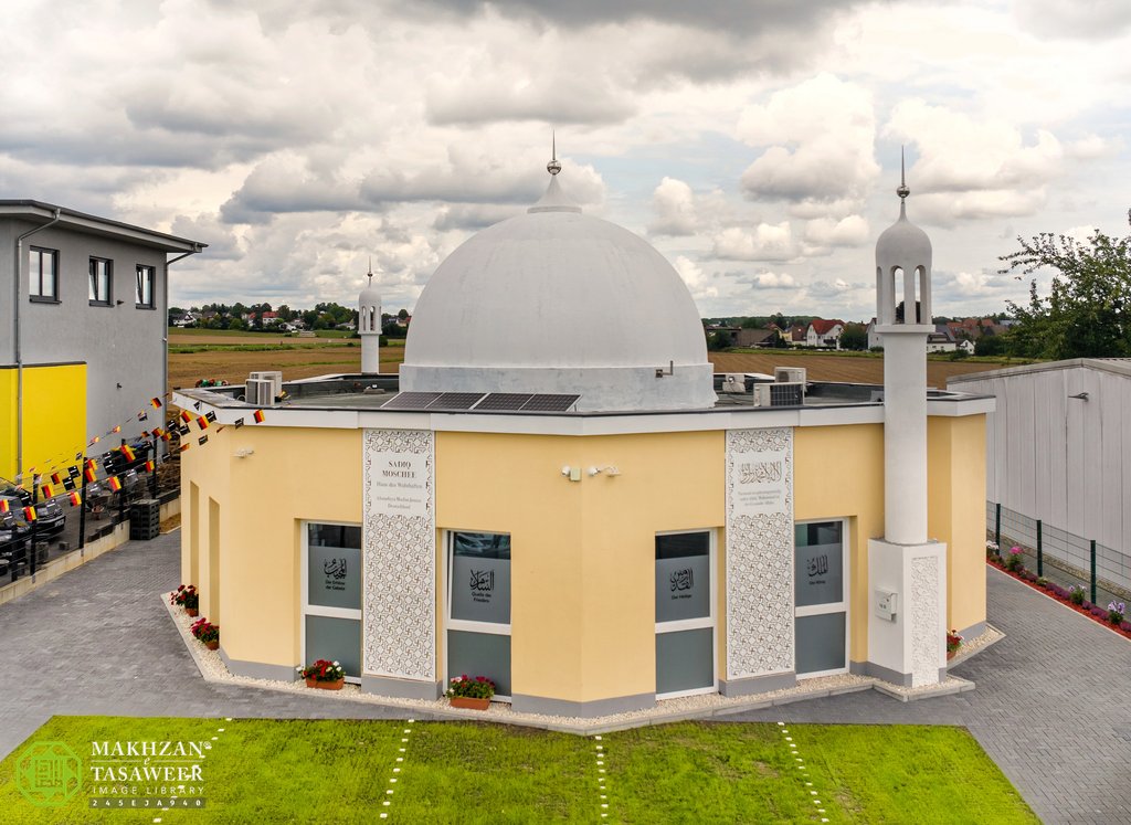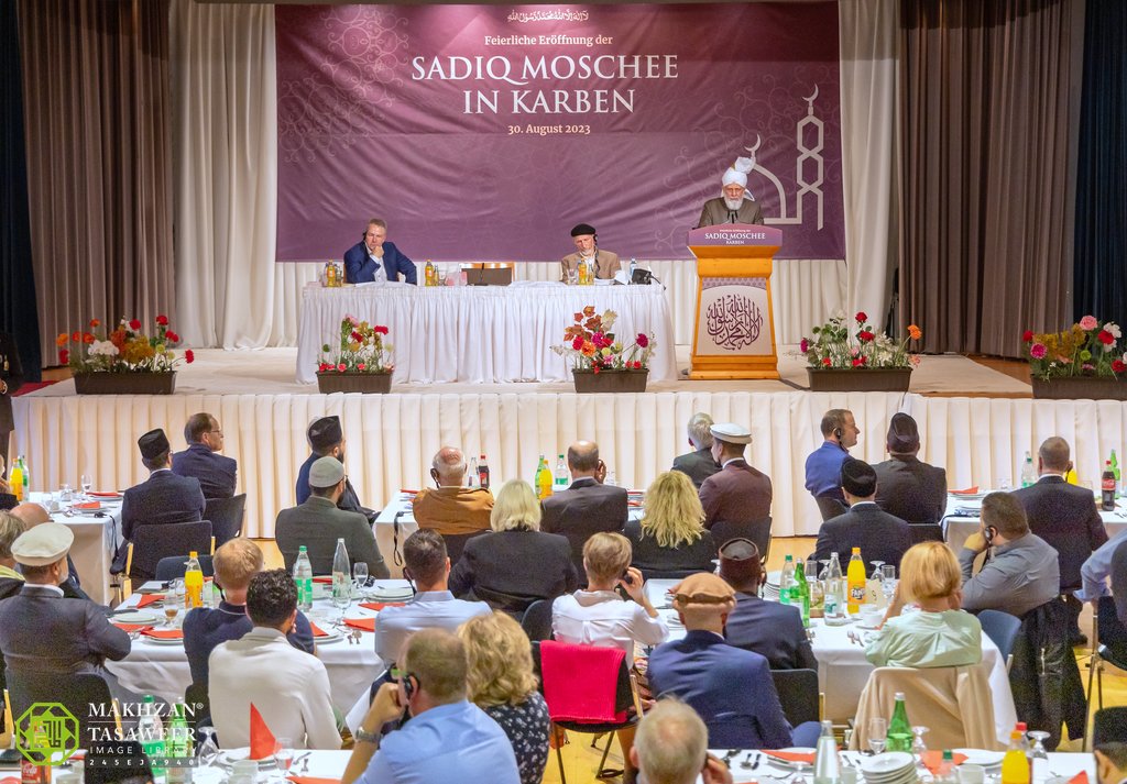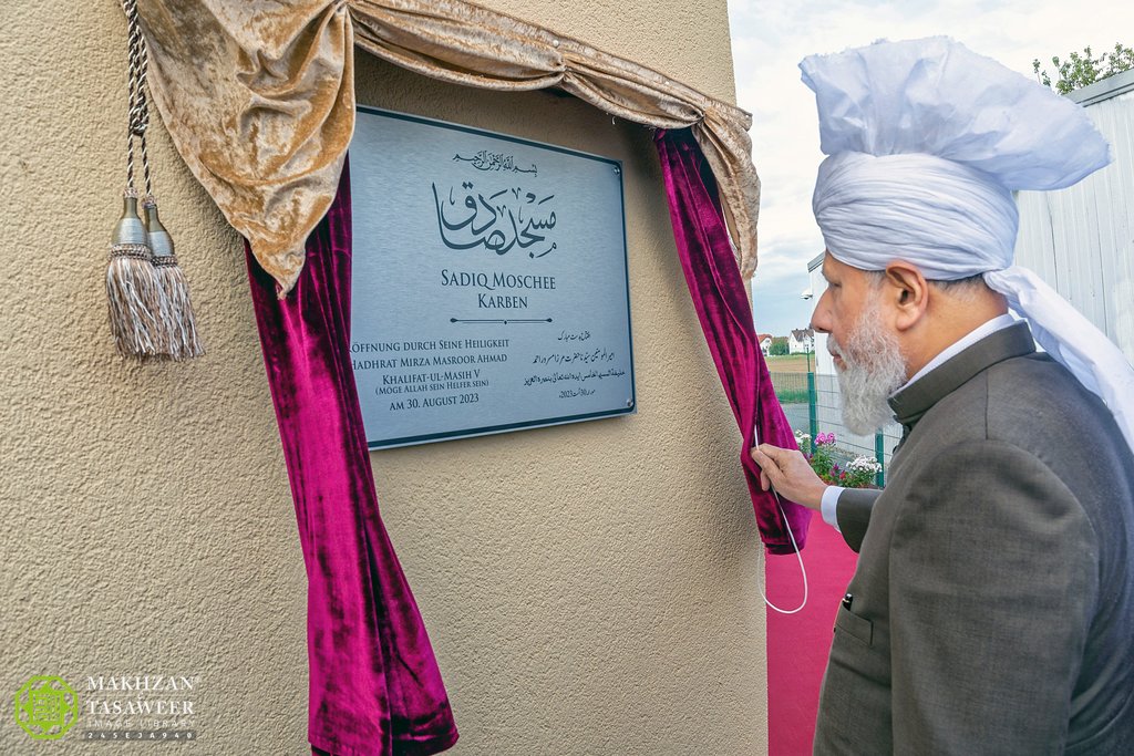https://youtu.be/-2TlX6Zli2w ٭…جرمنی کے شہر Karben میں ’مسجد صادق‘ کا افتتاح اور یادگاری تختی کی نقاب کشائی ٭… مسجد کی عمارت کا تفصیلی معائنہ اور احبابِ جماعت سے مختلف امور پر گفتگو٭… مسجد صادق کے قیام کی مختصر تاریخ ٭… مسجد کے افتتاح کے موقع پر علاقے کے معزّزین کے ساتھ منعقد ہونے والی افتتاحی تقریب میں بصیرت افروز خطاب نیز مہمانوں کے تاثرات حضور انور ایدہ اللہ تعالیٰ بنصرہ العزیز نے صبح پانچ بج کر چالیس منٹ پر تشریف لا کر نماز فجر پڑھائی۔ نماز کی ادائیگی کے بعد حضور انور اپنی رہائش گاہ پرتشریف لے گئے۔ صبح حضور انور ایدہ اللہ تعالیٰ بنصرہ العزیز نے دفتری ڈاک، خطوط اور رپورٹس ملاحظہ فرمائیں اور ہدایات سے نوازا۔ حضور انور کی مختلف دفتری امور کی انجام دہی میں مصروفیت رہی۔ آج Karben شہر میں ’’مسجد صادق‘‘ کے افتتاح کا پروگرام تھا۔ حضور انور ایدہ اللہ تعالیٰ بنصرہ العزیز چار بج کر پچاس منٹ پر اپنی رہائش گاہ سے باہر تشریف لائے اور فرنکفرٹ سے Karben کے لیے روانگی ہوئی۔ یہاں سے کاربن شہر کا فاصلہ ۱۹؍ کلو میٹر ہے۔ سترہ منٹ کے سفر کے بعد پانچ بج کر سات منٹ پر حضور انور ایدہ اللہ تعالیٰ بنصرہ العزیزکی ’’مسجد صادق‘‘ تشریف آوری ہوئی۔ یہاں کے مقامی جماعت کے افراد نے بڑے پرجوش اور والہانہ انداز میں اپنے پیارے آقا کا استقبال کیا۔ ان کے لیے آج کا دن بے انتہا خوشیوں اور برکتوں کا حامل دن تھا۔ حضور انور ایدہ اللہ تعالیٰ بنصرہ العزیز کے مبارک قدم دوسری مرتبہ ان کے مسکن میں پڑے تھے۔ اس سے قبل ۱۷؍ جون ۲۰۱۴ء کو حضور انور ایدہ اللہ تعالیٰ بنصرہ العزیز یہاں تشریف لائے تھے اور مسجد صادق کا سنگ بنیاد رکھا تھا۔ آج ہر کوئی بےحد خوش تھا۔ جونہی حضور انور ایدہ اللہ تعالیٰ گاڑی سے باہر تشریف لائے تو احباب جماعت نے خوشی سے نعرے بلند کیے اور بچوں اور بچیوں نے گروپس کی صورت میں خیر مقدمی دعائیہ نظمیں پیش کیں۔ اس موقع پر Karben شہر کے صدر جماعت مکرم عاطف شہزاد ورک صاحب،ریجنل امیر مظفر احمد بھٹی صاحب اور یہاں کے مربی سلسلہ تحسین رشید صاحب نے حضور انور ایدہ اللہ تعالیٰ کو خوش آمدید کہا۔ بعد ازاں حضور انور نے مسجد کی بیرونی دیوار میں نصب تختی کی نقاب کشائی فرمائی اور دعا کروائی۔ اس کے بعد حضور انور ایدہ اللہ تعالیٰ مسجد کے ہال میں تشریف لے گئے اور نماز ظہر و عصر جمع کرکے پڑھائیں جس کے ساتھ ہی مسجد کا افتتاح عمل میں آیا۔ نمازوں کی ادائیگی کے بعد حضور انور نے جماعت کی تجنید کے بارہ میں دریافت فرمایا تو لوکل صدر صاحب جماعت نے عرض کیا کہ ہماری تجنید ۲۸۰؍ کے قریب ہے۔ حضور انور کے استفسار پر کہ یہاں سے لوگ کام کاج کے لیے کہاں جاتے ہیں اس پر صدر صاحب نے عرض کیا کہ فرنکفرٹ جاتے ہیں اور آجکل بہت سے لوگ اپنے گھروں سے بھی آن لائن کام کر رہے ہیں۔ بعد ازاں حضور انور نے اس شہر میں نئے آنے والے احباب کے بارہ میں دریافت فرمایا۔ اس پر ایک نوجوان نے بتایا کہ وہ احمد خان منگلا صاحب کے بیٹے ہیں اور ۲۰۱۸ء میں ربوہ سے یہاں آئے تھے۔ ربوہ سے آنے والے ایک طالبعلم نے بتایا کہ وہ یہاں فی الحال کام بھی کر رہے ہیں اور ساتھ جرمن زبان کا کورس بھی کر رہے ہیں۔ اس کے بعد حضور انور ایدہ اللہ تعالیٰ بنصرہ العزیز نے مسجد سے ملحقہ کامن روم اور دفتر کا معائنہ فرمایا۔ اس دوران بچے باہر قطاروں میں کھڑے ہوچکے تھے۔ حضور انور نے ازراہ شفقت بچوں کو چاکلیٹ عطا فرمائیں۔ بعد ازاں حضور انور ایدہ اللہ تعالیٰ مسجد کے اُس حصہ میں تشریف لے آئے جہاں لجنہ موجود تھیں۔ یہاں بچوں نے حضور انور کی خدمت میں دعائیہ نظمیں پیش کیں۔ خواتین شرف زیارت سے فیضیاب ہوئیں۔ خواتین کی تعداد زیادہ ہونے کی وجہ سے باہر مارکی میں بھی خواتین کا انتظام کیا گیا تھا۔ حضور انور ایدہ اللہ تعالیٰ خواتین کی مارکی میں بھی تشریف لے آئے اور ازراہ شفقت بچیوں کو چاکلیٹ عطا فرمائیں۔ بعد ازاں حضور انور ایدہ اللہ تعالیٰ نے مسجد کے بیرونی احاطہ میں بادام کا پودا لگایا۔ اس کے بعد ممبران مجلس عاملہ جماعت Karben اور کارکنان شعبہ سو مساجد اور مسج