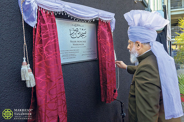 ٭… مسجد ناصر وائی بلنگن (Waiblingen) کا افتتاح،نمازِ ظہر و عصر کی ادائیگی، تقریب نقاب کشائی نیز افتتاحی ریسپشن سے حضورِ انور کا بصیرت افروز خطاب ٭… مسجد وہ جگہ ہے جہاں مرد، عورتیں اور بچے اکٹھے ہوتے ہیں اور ایسے پروگرام کرتے ہیں جو ان کی تربیت کے لیے بہتر ہوں، جو نہ صرف انہیں دینی تعلیم دینے والے ہوتے ہیں بلکہ دنیاوی تعلیم کی طرف بھی انہیں توجہ دلانے والے ہوتے ہیں۔ انہیں یہ بتایا جاتا ہے کہ ملکی قوانین کی آپ نے کس طرح پابندی کرنی ہے، آپ نے اچھا شہری کس طرح بننا ہے،یہ بتایا جاتا ہے کہ ہمسایوں کے ساتھ کیسے اچھا سلوک کرنا ہے حضور انور ایدہ اللہ تعالیٰ بنصرہ العزیزنے صبح پانچ بج کر پچاس منٹ پر تشریف لا کر نماز فجر پڑھائی۔ نماز کی ادائیگی کے بعد حضور انور ایدہ اللہ تعالیٰ اپنی رہائش گاہ پر تشریف لے گئے۔ صبح حضور انور ایدہ اللہ تعالیٰ بنصر ہ العزیز کی مختلف دفتری امور کی ادائیگی میں مصروفیت رہی۔ آج پروگرام کے مطابق WAIBLINGEN شہر میں نئی تعمیر ہونے والی’ مسجد ناصر ‘کے افتتاح کے لیے روانگی تھی۔ حضور انور ایدہ اللہ تعالیٰ صبح گیارہ بجے اپنی رہائش گاہ سے باہر تشریف لائے۔ اس موقع پر مکرم ڈاکٹر مسعودالحسن نوری صاحب نے جو پاکستان سے جلسہ سالانہ جرمنی میں شرکت کے لیے آئے ہوئے تھے حضور انور کی خدمت میں سلام عرض کیا اور حضور انور نے ازراہ شفقت ان سے گفتگو فرمائی۔ اس موقع پر امریکہ سے آنے والے مبلغ ظہیر احمد باجوہ صاحب نے بھی حضور انورایدہ اللہ تعالیٰ کی خدمت میں سلام عرض کرنے کی سعادت پائی۔ بعد ازاں حضور انور ایدہ اللہ تعالیٰ نے دعا کروائی اور یہاں سے روانگی ہوئی۔ بیت السبوح فرنکفرٹ سے WAIBLINGEN شہر کا فاصلہ ۲۱۲ کلومیٹر ہے۔ قریباً سوا دو گھنٹے کے سفر کے بعد شہر میں داخل ہونے سے قبل راستہ میں ہوٹل LE VILLAGE میں کچھ دیر کے لیے رکے بعد ازاں یہاں سے روانہ ہوکر دو بج کر پانچ منٹ پر حضور انور ایدہ اللہ تعالیٰ بنصرہ العزیز کی ’مسجد ناصر‘ تشریف آوری ہوئی۔ جونہی حضور انور ایدہ اللہ تعالیٰ بنصرہ العزیز گاڑی سے باہر تشریف لائے تو مقامی جماعت کے احباب مرد و خواتین اور بچوں نے اپنے پیارے آقا کا بڑا والہانہ اور پرجوش استقبال کیا۔ آج ان کے لیے بے انتہا خوشیوں، مسرتوں اور برکتوں کے حصول کا دن تھا۔ ان کی سر زمین پر حضور انور ایدہ اللہ تعالیٰ کے مبارک قدم پہلی مرتبہ پڑے تھے۔ آج ان کے لیے عید کا دن تھا۔ ہر کوئی خوشی سے پھولا نہ سماتا تھا۔ ہر ایک کا دل اپنی خوش نصیبی پر جذبات تشکر سے بھرا ہوا تھا۔ مرد احباب نعرے بلند کر رہے تھے۔ خواتین شرف زیارت سے فیضیاب ہو رہی تھیں اور بچے اور بچیاں مختلف گروپس کی صورت میں خیر مقدمی، دعائیہ نظمیں پیش کر رہی تھیں۔ حضور انور ایدہ اللہ تعالیٰ نے اپنا ہاتھ بلند کرکے سب کو السلام علیکم کہا۔ اس موقع پر لوکل صدر جماعت پرویز احمد صاحب، ریجنل امیر بشارت احمد گل صاحب اور مربی سلسلہ WAIBLINGEN شارق افتخار صاحب نے حضور انور کو خوش آمدید کہا۔ اس موقع پر شہر کے میئر BENDIKT PAULOWITSCH اور ضلعی ناظم REMS-MURR-KRIES، ڈاکٹر PETER ZAAR صاحب بھی حضور انور کو خوش آمدید کہنے کے لیے موجود تھے۔ بعد ازاں حضور انور ایدہ اللہ تعالیٰ نے مسجد کی بیرونی دیوار میں نصب تختی کی نقاب کشائی فرمائی اور دعا کروائی۔ اس کے بعد حضور انور ایدہ اللہ تعالیٰ نے مسجد کے بالائی مردانہ ہال میں تشریف لا کر نماز ظہر و عصر جمع کر کے پڑھائیں جس کے ساتھ اس مسجد کا باقاعدہ افتتاح عمل میں آیا۔ نمازوں کی ادائیگی کے بعد حضور انور ایدہ اللہ تعالیٰ کچھ دیر کے لیے احباب میں رونق افروز رہے۔ حضور انور نے یہاں جماعت کی تعداد کے بارہ میں دریافت فرمایا جس پر صدر صاحب جماعت نے عرض کیا کہ اس وقت تجنید ۳۹۶ ہے۔ یہ بڑھ رہی ہے اور چار سونو سے اوپر چلی جائے گی۔ بعد ازاں حضور انور نے دریافت فرمایا کہ یہاں اس جماعت میں کتنے نئے لوگ آئے ہیں۔ اس پر ایک دوست نے عرض کیا کہ وہ کچھ عرصہ قبل لاہور سے آئے ہیں۔ ایک طفل نے بتایا کہ تین ماہ قبل و ہ اپنی فیملی کے ساتھ یہاں پہنچا ہے اس کے والد صاحب یہاں پہلے سے موجود ت