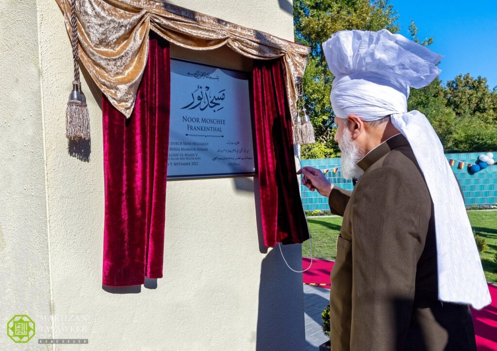 https://youtu.be/ZNewteGdPQY ٭… مسجد نور Frankenthal کا افتتاح ٭… حضور انور کا مسجد نور کے افتتاح کے حوالہ سے خصوصی تقریب میں خطاب حضور انور ایدہ اللہ تعالیٰ بنصرہ العزیزنے صبح پانچ بج کر پچاس منٹ پر تشریف لا کر نماز فجر پڑھائی۔ نماز کی ادائیگی کے بعد حضور انور ایدہ اللہ تعالیٰ اپنی رہائش گاہ پر تشریف لے گئے۔ صبح حضور انور ایدہ اللہ تعالیٰ نے مرکزی دفاتر، اسی طرح مختلف ممالک کی جماعتوں سے موصول ہونے والے خطوط، رپورٹس اور دفتری ڈاک ملاحظہ فرمائی اور ہدایات سے نوازا۔ حضور انور کی مختلف دفتری امور کی انجام دہی میں مصروفیت رہی۔ فیملی ملاقاتیں پروگرام کے مطابق گیارہ بجے حضور انور ایدہ اللہ تعالیٰ بنصرہ العزیز اپنے دفتر تشریف لائے اور فیملیز ملاقاتیں شروع ہوئیں۔ آج صبح کے اس سیشن میں ۳۸؍فیملیز کے ۱۴۳؍افراد نے اپنے پیارے آقا سے ملاقات کی سعادت حاصل کی۔ ملاقات کرنے والی یہ فیملیز جرمنی کی مختلف۱۳؍ جماعتوں سے آئی تھیں اور ان میں سے بعض بڑے لمبے سفر طے کر کے اپنے آقا سے ملاقات کے کے لیے پہنچی تھیں۔ Köln سے آنے والی ۱۹۰؍کلومیٹر، Stuttgart سے آنے والی ۲۲۰؍کلومیٹر جب کہ Friedberg سے آنے والی ۲۸۰؍کلومیٹر اور میونخ سے آنے والی قریباً ۴۰۰؍کلومیٹر کا فاصلہ طے کر کے پہنچی تھیں۔ جرمنی کی ان جماعتوں کے علاوہ پاکستان، بینن(Benin)، مالی (Mali) اور برکینافاسو (Burkina Faso) سے آئےہوئے احباب اور فیملیز نے بھی اپنے پیارے آقا سے شرف ملاقات پایا۔ ان سبھی فیلیز اور احباب نے اپنے پیارے آقا کے ساتھ تصویر بنوانے کی سعادت پائی۔ حضور انور نے ازراہ شفقت تعلیم حاصل کرنے والے طلبہ اور طالبات کو قلم عطا فرمائے اور چھوٹی عمر کے بچوں اور بچیوں کو چاکلیٹ عطا فرمائیں۔ ملاقاتوں کا یہ پروگرا م دو پہر ایک بج کر تیس منٹ تک جاری رہا۔ بعد ازاں حضور انور ایدہ اللہ تعالیٰ بنصرہ العزیز اپنی رہائش گاہ پر تشریف لے گئے۔ مسجدنور Frankenthalکا افتتاح آج جماعت Frankenthal میں نئی تعمیر ہونے والی ’مسجدنور‘ کے افتتاح کا پروگرام تھا۔ حضور انور ایدہ اللہ تعالیٰ چار بج کر پندرہ منٹ پر اپنی رہائش گاہ سے باہر تشریف لائے اور دعا کروائی۔اور بعد ازاں Frankenthalکے لیے روانگی ہوئی۔ بیت السبوح فرنکفرٹ سے اس شہر کا فاصلہ ۹۵؍کلومیٹر ہے۔ قریباً پچاس منٹ کے سفر کے بعد پانچ بج کر پانچ منٹ پر جب شہر کی حدود میں داخل ہوئے تو علاقہ کی مقامی پولیس نے قافلہ کوescort کیا۔ آج کا یہ انتہائی مبارک دن احباب جماعت Frankenthal کے لیے بہت خوشیوں اور سعادتوں سے معمور دن تھا۔ ان کے شہر میں دوسری بار حضور انور ایدہ اللہ تعالیٰ بنصر ہ العزیز کے مبارک قدم پڑے تھے اور یوں ان کے شہر کی سر زمین دوسری بار حضور انور کے مبارک وجود سے فیضیاب ہوئی۔ قبل ازیں حضور انور ایدہ اللہ تعالیٰ نے ۳۰؍ اگست ۲۰۱۶ء کو یہاں تشریف لا کر اس مسجد کا سنگ بنیاد رکھا تھا۔ جونہی حضور انور ایدہ اللہ تعالیٰ بنصرہ العزیز گاڑی سے باہر تشریف لائے تو احباب جماعت نے انتہائی والہانہ انداز میں اپنے پیارے آقا کو خوش آمدید کہا۔ احباب نعرے بلند کر رہے تھے۔ بچے اور بچیاں گروپس کی صورت میں دعائیہ نظمیں اور خیر مقدمی گیت پیش کر رہی تھیں۔ ہر کوئی اپنا ہاتھ ہلاتے ہوئے خوشی کا اظہار کر ر رہا تھا۔ خواتین شرف زیارت سے فیضیاب ہو رہی تھیں۔ حضور انور نے اپنا ہاتھ بلند کر کے سب کو السلام علیکم کہا۔ اس موقع پر صدر جماعت Frankenthal فراز احمد کامران صاحب، ریجنل امیر طارق سہیل صاحب، ریجنل مربی مصور شمس صاحب اور مقامی مربی سلمان اختر صاحب نے حضور انور کو خوش آمدید کہا۔ بعد ازاں حضور انور ایدہ اللہ تعالیٰ بنصرہ العزیز نے مسجد کی بیرونی دیوار میں نصب تختی کی نقاب کشائی فرمائی اور دعا کروائی۔ اس کے بعد حضور انور ایدہ اللہ تعالیٰ مسجد کے مردانہ حصّہ میں تشریف لے آئے اور نماز ظہر و عصر جمع کر کے پڑھائیں۔ جس کے ساتھ ہی اس مسجد کا باقاعدہ افتتاح عمل میں آیا۔ نمازوں کی ادائیگی کے بعد حضور انور ایدہ اللہ تعالیٰ کچھ دیر کے لیے احباب میں رونق افروز رہے۔ حضور انور نے جماعت کی تجنید کے بارہ میں دریافت فرمای