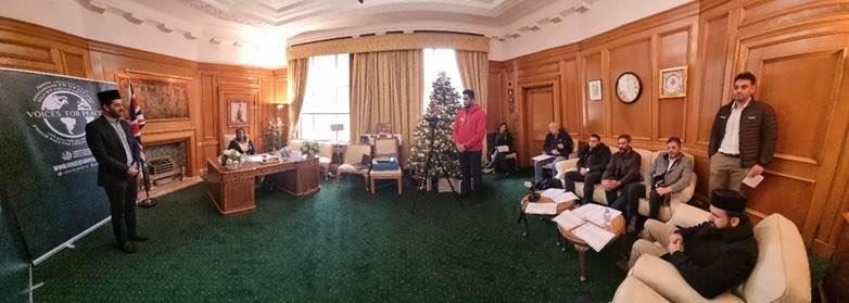 https://youtu.be/MWpATGKtjOk خدام الاحمدیہ بیت النور ریجن، برطانیہ کو محض اللہ تعالیٰ کے فضل و کرم سے مورخہ ۱۴؍ دسمبر ۲۰۲۳ء کو جماعتی تحریک ’’Voices For Peace‘‘ کو وانڈزورتھ ٹاؤن ہال میں باقاعدہ لانچ کرنے کی توفیق ملی۔ الحمد للہ اس تقریب کا باقاعدہ آغازگیارہ بج کر پینتالیس منٹ پر تلاوت قرآن کریم سے ہوا۔ بعدہٗ وانڈزورتھ کی میئر صاحبہ نے اپنی استقبالیہ تقریر میں وانڈزورتھ borough میں اس تحریک کو لانچ کرنے پر خوشی اور مسرت کا اظہار کیا۔ انہوں نے عیسائی مذہب سے تعلق رکھنے کے حوالہ سے بتایا کہ حضرت عیسیٰؑ نے بھی امن و آشتی کی تعلیم دی۔ ہبۃ المحسن صاحب (نائب صدر مجلس خدام الاحمدیہ یوکے) نے خدام الاحمدیہ کی تاریخ ، اس کا مقصد اور اس کے فلاحی اور انسانی خدمت پر مبنی کاموں کے متعلق بتایا۔ آپ نے ’’Voices for Peace‘‘ کی تحریک کا پس منظراور فلسطین اور اسرائیل کے مابین جنگ کے حوالے سےفوری جنگ بندی کی اہمیت اور ضرورت کو بیان کیا اوراس بات کا بھی ذکر کیا کہ کس طرح میڈیاکو بھی اپنا کردار ادا کرتے ہوئے صحیح اور سچ پر مبنی خبریں عوام النا س کے سامنے پیش کرنی چاہئیں۔ اس کے بعد باقی مہمانانِ خصوصی کو بھی چند کلمات کہنے کا موقع ملا۔ ٭…Abdelatti Mahmoud صاحب جو Metropolitan Police میں بطور Faith Engagement Officer کے کام کرتے ہیں نے ’’Voices For Peace‘‘ کی تحریک کو سراہا اور اس بات کا اظہار کیا کہ ایسے پروگراموں کو بار بار منعقد کرنے کی ضرورت ہے۔ ٭…سکھ مذہب کے نمائندہ چرن سنگھ صاحب نے معصوم لوگوں پر ہونے والے مظالم کی شدید مذمت کی اور آپ نے کہا کہ سکھ مذہب بھی ان امن کی آوازوں میں سے ایک آواز ہوگی۔ ٭…’’Wandsworth Friends of Palestine‘‘ ایک غیرسیاسی گروپ ہے جو جنگ بندی اور فلسطینیوں کے حقوق کے لیے کام کررہا ہے اور مختلف رنگ و نسل، قومیتوں اور مذاہب سے تعلق رکھنے والوں پر مشتمل ہے۔ اس کے سیکرٹری Brian Cairns صاحب نے اس بات کا ذکر کیا کہ فوری طور پر جنگ بندی ہونی چاہیے اور اس سلسلہ میں ملک بھر کے سیاستدانوں کی بہت اہم ذمہ داری ہے کہ اس کے لیے کوشاں رہیں جب تک اس پر عملدرآمدگی نہیں ہوتا۔ خاکسار (مربی سلسلہ و ریجنل قائد) نے اختتامی تقریر میں اسلامی تعلیمات کی روشنی میں مسلمان کی تعریف اور جنگی قواعد و ضوابط پیش کیے۔ اس کے بعد حضور انور ایدہ اللہ تعالیٰ بنصرہ العزیز کی ایک ویڈیو دکھائی گئی جو حضور کی گذشتہ دو دہائیوں پر مبنی امن، عدل و انصاف کو قائم کرنے کے لیے مختلف خطابات پر مشتمل تھی۔ سید شکیل احمد صاحب ریجنل امیر بیت النور نے اختتامی کلمات پیش کیے جس میں آپ نے میئر صاحبہ کا تہ دل سے شکریہ ادا کیا کہ انہوں نے ہمیں یہاں مدعو کیا۔ اجتماعی دعا کے ساتھ یہ پروگرام اختتام پذیر ہوا۔ اس کے بعد ایک گروپ فوٹو لیا گیا اور تمام مہمانان خصوصی کو gift bags دیے گئے جو شعبہ تبلیغ جماعت احمدیہ یوکے کی طرف سے تھے۔ ان gift bags میں درجہ ذیل لٹریچر تحفۃً پیش کیا گیا: 1.World Crisis & Pathway to Peace 2.Stop WW3 Brochure 3.Ceasefire Brochure 4.Palestine – Israel Conflict brochure by the External Affairs UK Dept. اللہ تعالیٰ اس پروگرام کے بہترین نتائج مرتب فرمائے اور ہم سب کو اپنی مفوضہ ذمہ داریوں کو احسن رنگ میں ادا کرنے کی توفیق دے۔ آمین (رپورٹ: ربیب مرزا۔ مربی سلسلہ و ریجنل قائد بیت النور)