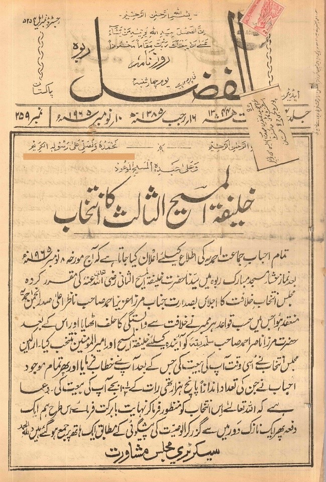 https://youtu.be/4ukcEWcObbk روزنامہ الفضل نے ہر دور میں احباب جماعت کی دینی، روحانی، علمی اور تربیتی امور میں ترقی اور استحکام میں بہت بھر پور کردار ادا کیا ہے۔ آج بھی اللہ تعالیٰ کے فضل و کرم سے اخبار الفضل ایک عالمگیر معلّم کے طور پر اکنافِ عالم میں یہ فریضہ سر انجام دے رہا ہے روز نامہ الفضل سے میرے تعلق، تعارف اور استفادہ کا سفر ساٹھ سال سے زیادہ عرصہ پر پھیلا ہوا ہے۔ قادیان دارالامان سے ہجرت کے بعد ہم کچھ عرصہ چنیوٹ میں رہے۔ پھر احمد نگر آگئے اور بچپن کا زمانہ وہیں گزرا۔ سب سے پہلے میں نے الفضل اسی جگہ دیکھا۔ پرائمری سکول میں تھا اور اردو لکھنا پڑھنا سیکھ رہا تھا۔ ان دنوں گھر میں الفضل آتا تو اسے دیکھتا اور پڑھنے کی کوشش کرتا۔ یہ گویا میرا پہلا تعارف تھا اس عظیم روز نامہ اخبار سے جو اللہ تعالیٰ کے فضل سے ہر دور میں جماعت کا ترجمان، احباب جماعت کا مرکز اور جماعت اور خلافت سے تعلق کا ازحد مفید ذریعہ رہا ہے۔ اب تو یہ حالت ہے کہ اگر کسی سفر یا کسی اَور مجبوری کی وجہ سے چند دن الفضل پڑھنے کا موقع نہ مل سکے تو زندگی میں ایک خلا محسوس ہونے لگتا ہے۔ اسی عرصہ میں غالباً ۱۹۵۲ء میں مجھے اپنے خالو مکرم و محترم خانصاحب قاضی محمد رشید صاحب کے ہاں نو شہرہ میں کچھ وقت رہنے کا موقع ملا۔ اس دوران بھی الفضل نظروں میں آتا رہا۔ پوری طرح پڑھ اور سمجھ تو نہ سکتا تھا لیکن ہر روز الفضل پر نظر ڈالنا روزانہ کے معمولات میں شامل رہا۔ احمد نگر میں کئی سال قیام کے دوران الفضل سے یہ تعلق رفتہ رفتہ بڑھنے لگا۔ اس دور کی ایک عجیب یاد یہ ہے کہ ان دنوں الفضل میں ایک اعلان بڑی باقاعدگی سے شائع ہوا کرتا تھا جس کا عنوان ہوتا تھا :’’قبر کے عذاب سے بچو‘‘ نیچے لکھا ہوتا تھا : کارڈ آنے پر مفت۔ یہ اعلان یا اشتہار حضرت سیٹھ عبدالله الٰہ دین صاحب آف سکندر آباد کی طرف سے ہوتا تھا۔ مجھے بڑا تجسس ہوا اور میں نے انہیں ایک کارڈ لکھ دیا۔ چند دنوں کے بعد مجھے اس کے جواب میں بذریعہ ڈاک ایک چھوٹا سا پمفلٹ موصول ہوا۔ اپنے نام یہ پمفلٹ پاکر مجھے بڑی خوشی ہوئی۔ میں نے اسے بڑے شوق سے پڑھا اور سمجھنے کی کوشش کی۔ معلوم ہوا کہ یہ احمدیت کا پیغام غیروں تک پہنچانے کا ایک ذریعہ ہے جو آپ نے اختیار کیا ہوا تھا اور سالہا سال یہ سلسلہ جاری رہا۔ اس کے بعد ہم نقل مکانی کر کے ربوہ آگئے۔ ہماری رہائش ابتدا میں تحریک جدید کے کوارٹرز میں تھی۔ ہمارے ساتھ وا لے مکان میں مکرم و محترم شیخ عبد الواحد صاحب مبلغ چین و فجی رہا کرتے تھے۔ دوسری طرف والے مکان میں مکرم و محترم مولانا عطاء اللہ کلیم صاحب کی رہائش تھی جن کو لمبا عرصہ گھانا، امریکہ اور جرمنی میں خدمت کی تو فیق ملی۔ ہمارے عقب میں مکرم و محترم مولانا ابوالمنیر نور الحق صاحب کا مکان تھا جن کو جامعہ میں تدریس اور تصنیف کے میدان میں خدمت کا خوب موقع ملا۔ الفضل کے ساتھ جو تعلق قائم ہو چکا تھا وہ مضبوط سے مضبوط تر ہونے لگا اور مضامین پڑھنے میں بھی دلچسپی پیدا ہونے لگی۔ مجھے یاد ہے کہ ان دنوں روزانہ عصر کے بعد اور مغرب سے پہلے اخبار تقسیم کرنے والا آیا کرتا تھا۔ کبھی تو وہ دروازہ میں اخبار اٹکا دیتا اور کبھی دروازہ کے ا وپر سے گھر کے اندر پھینک دیتا تھا۔ گھر میں یہ معمول بن گیا تھا کہ جو نہی اخبار آنے کی آہٹ محسوس ہوتی تو فوراً اُسے اٹھا لیا جاتا اور گھر کے سب افراد باری باری بڑے شوق سے استفادہ کرتے اور بعد میں ایک مقررہ جگہ پر اسے محفوظ کر لیا جاتا۔ یہ گویا ہمارا روز کا معمول بن گیا اور الفضل کا مطالعہ روزانہ زندگی کا حصہ بن گیا تھا۔ ان دنوں ابھی ٹیلی فون کا نظام ربوہ میں نہیں تھا اس لیے جماعتی حالات اور احباب کی خیر و عافیت اور دیگر اطلاعات کا سب سے اہم ذریعہ اخبار الفضل ہی تھا۔ ۱۹۶۱ء یا ۱۹۶۲ء کے لگ بھگ کی بات ہے کہ میں اور میرے بڑے بھائی مکرم عطاء الرحیم حامد صاحب ( حال مقیم امریکہ ) غالباً ڈیڑھ دو ماہ کی گرمیوں کی تعطیلات میں کوٹلی آزاد کشمیر گئے۔ وہاں میاں علم الدین صاحب کے ہاں ہمارا قیام تھا۔ ساری نمازیں مسجد احمدیہ میں ادا کرتے۔ ان دنوں ماس
