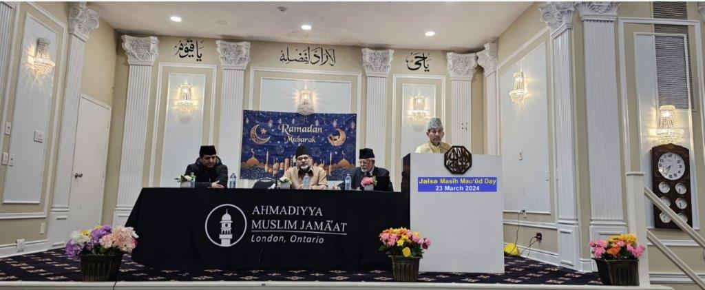 https://youtu.be/fAnqw2_0zD4 اللہ تعالیٰ کے فضل سے مورخہ ۲۳؍مارچ ۲۰۲۴ء کو جماعت احمدیہ لندن ساؤتھ، کینیڈا کو مسجد بیت الرشید میں اپنا جلسہ یوم مسیح موعود منعقد کرنے کی توفیق ملی۔ الحمدللہ پروگرام کا آغاز نماز عصر کے بعد تلاوت قرآن کریم و ترجمہ اور نظم سے ہوا۔ بعد ازاں ایک نَومبائع محمد ناشط صاحب نے یوم مسیح موعود کی اہمیت پر روشنی ڈالی۔ انس احمد صاحب نے مختلف مذہبی صحیفوں کے ذریعہ حضرت مسیح موعودؑ کی سچائی کے ثبوت پیش کرتے ہوئے ان مذاہب کی پیشگوئیوں کے پورا ہونے کی وضاحت کی۔ ایک نظم کے بعد وجاہت احمد شیخ صاحب نے ’’حضرت مسیح موعودؑ کے لیے خدا کی مدد اور حمایت‘‘ اور نوید مجید صاحب نے ’’یوم مسیح موعود منانے کی وجہ اور ہماری ذمہ داریاں‘‘ کے موضوعات پر تقاریر کیں۔ خاکسارنے ’’عہد بیعت‘‘ کے موضوع پر ایک پریزنٹیشن پیش کی۔ اس کے بعد ناصر محمود بٹ صاحب مربی سلسلہ نے حضرت مسیح موعودؑ کے بعض ارشادات پیش کیے۔ آخر پرایک کوئزاورمجلس سوال و جواب کا اہتمام کیا گیا۔ دعا کے ساتھ یہ جلسہ اختتام پذیر ہوا۔ افطار کے بعد نماز مغرب ادا کی گئی جس کے بعد تمام شاملین کی خدمت میں عشائیہ پیش کیا گیا۔ اس جلسہ میں ۱۸؍اطفال، ۵۵؍خدام، ۵۳؍انصار، ۱۰۹؍ ممبرات لجنہ اماءاللہ، ۱۵؍ناصرات اور ۲۰؍بچے کُل ۲۷۰؍ احباب جماعت شامل ہوئے۔ (رپورٹ:شیخ سعید۔ نائب سیکرٹری تربیت جماعت لندن ساؤتھ و ریجنل ناظم تبلیغ، ویسٹرن انٹاریوریجن مجلس انصاراللہ)